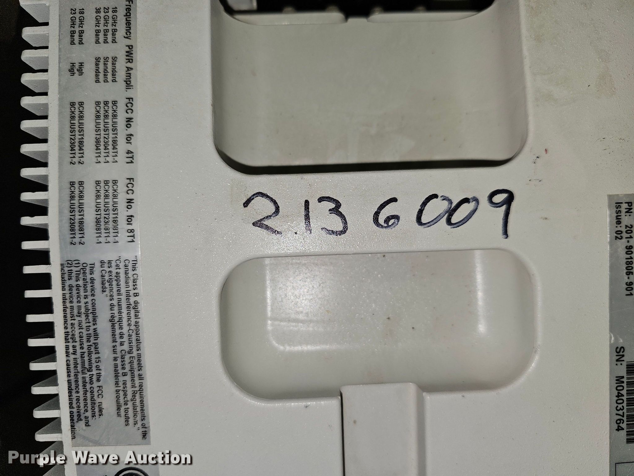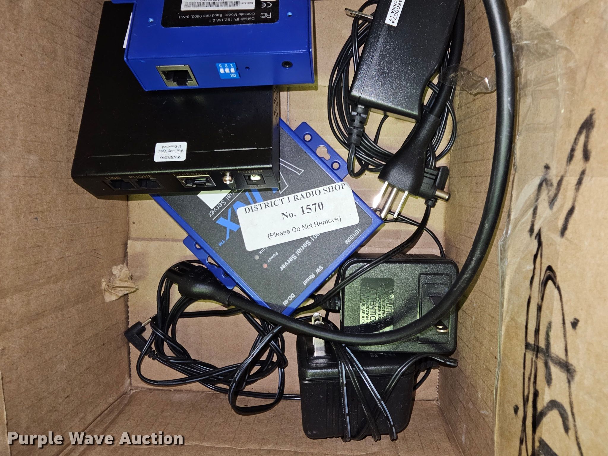 Purple Wave is selling a used Electronics in Kansas. This item is a Electronics with the following: (15) Paradyne Zhone T1/E1 ethernet extender, Non-operational units, (2) B&B Electronics ESP901 VLinx ethernet serial servers, Non-operational units, NetSys NVF-200LS ethernet extenders, Non-operational unit, (4) Blackbox LR0301A-KIT T1/E1 ethernet extenders, No power cords, (3) Netsys ethernet extenders, (3) B&B Electronics ESP901 ethernet serial servers, Andrew MT050-81015 dryline dehydrator radio, Non-operational unit, Harris 201901805901 microwave radio, 13 to 23 GHz, Non-operational unit, KDOT ID: 1568, 1570, 1576, 1577, 1581, 1599, 213-6009