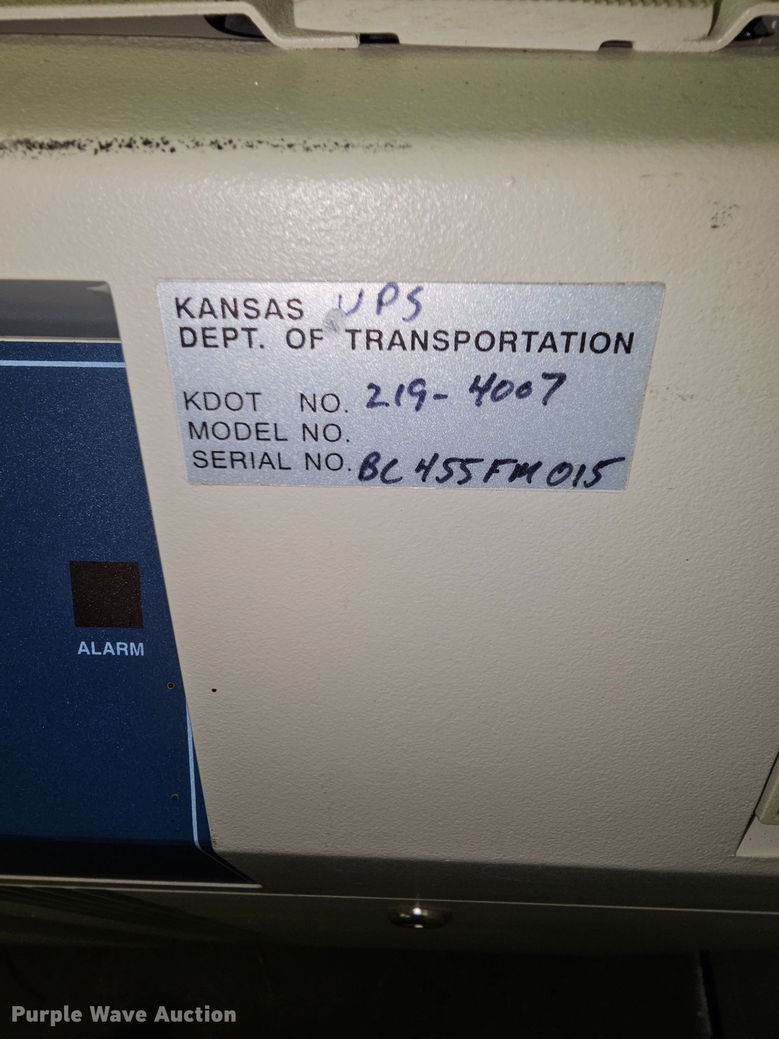 Purple Wave is selling a used Electronics in Kansas. This item is a Eaton Ferrups FE12.5KVA UPS battery backup with the following: No batteries, Low output alarm, Serial: BC455FM015, KDOT ID: 219-4007