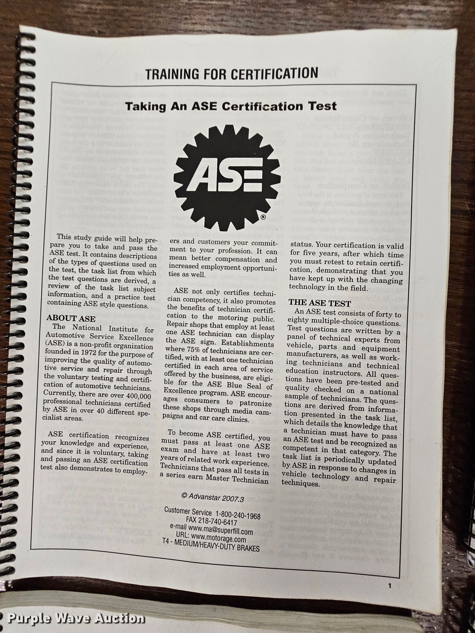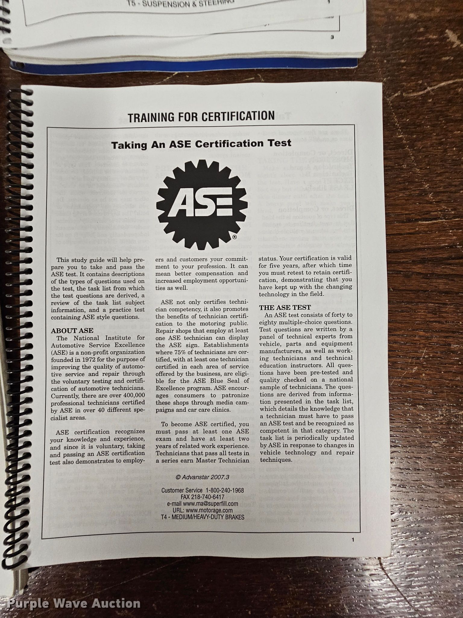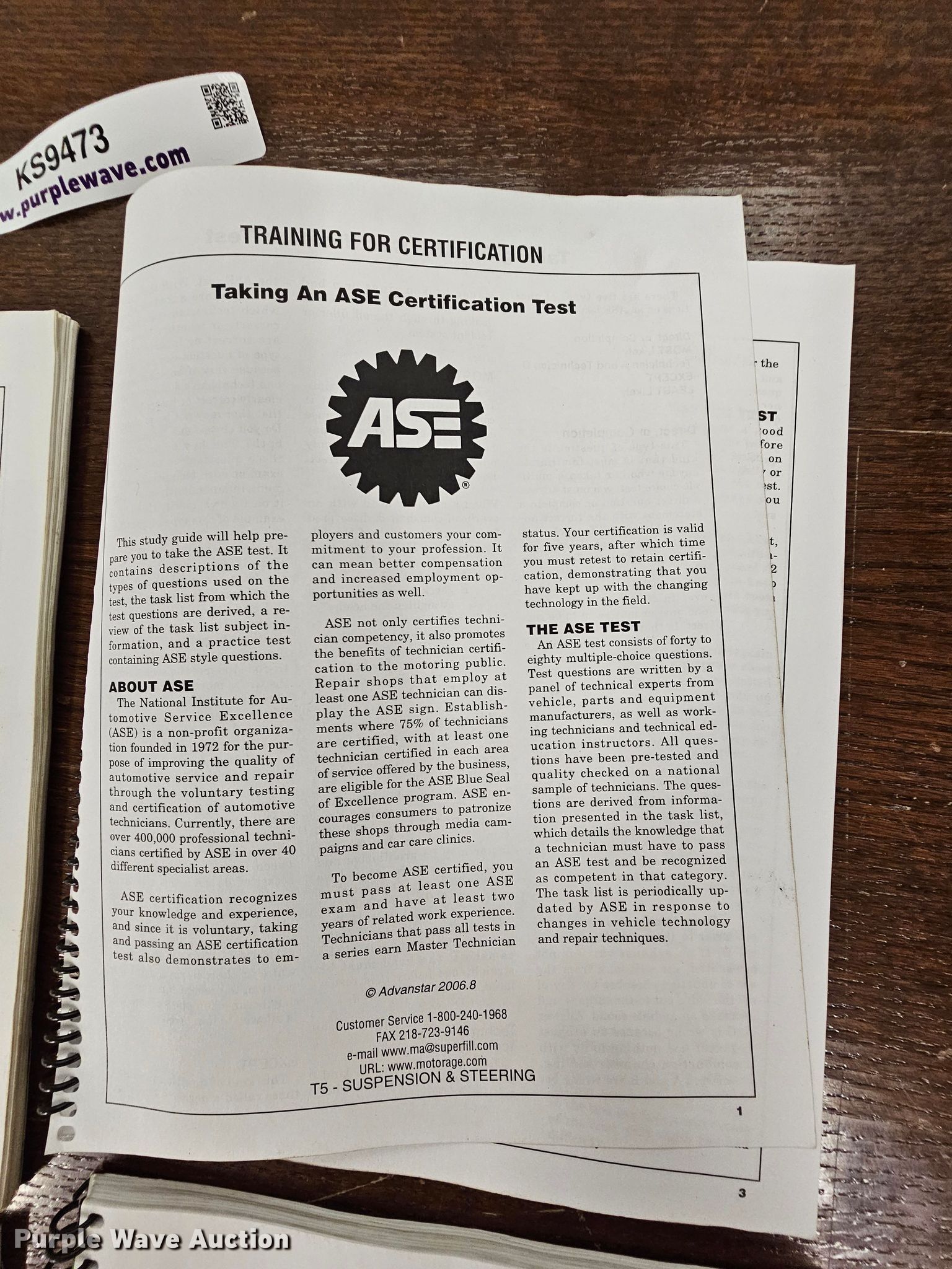 Purple Wave is selling a used Tools in Kansas. This item is a Tools with the following: (3) ASE Motorage LKM119 9-3-8 T4 brakes training manual, ASE Motorage LKM119 9-3-8 T5 suspension/steering training manual, KDOT ID: 109038, 109039, 109044, 109045