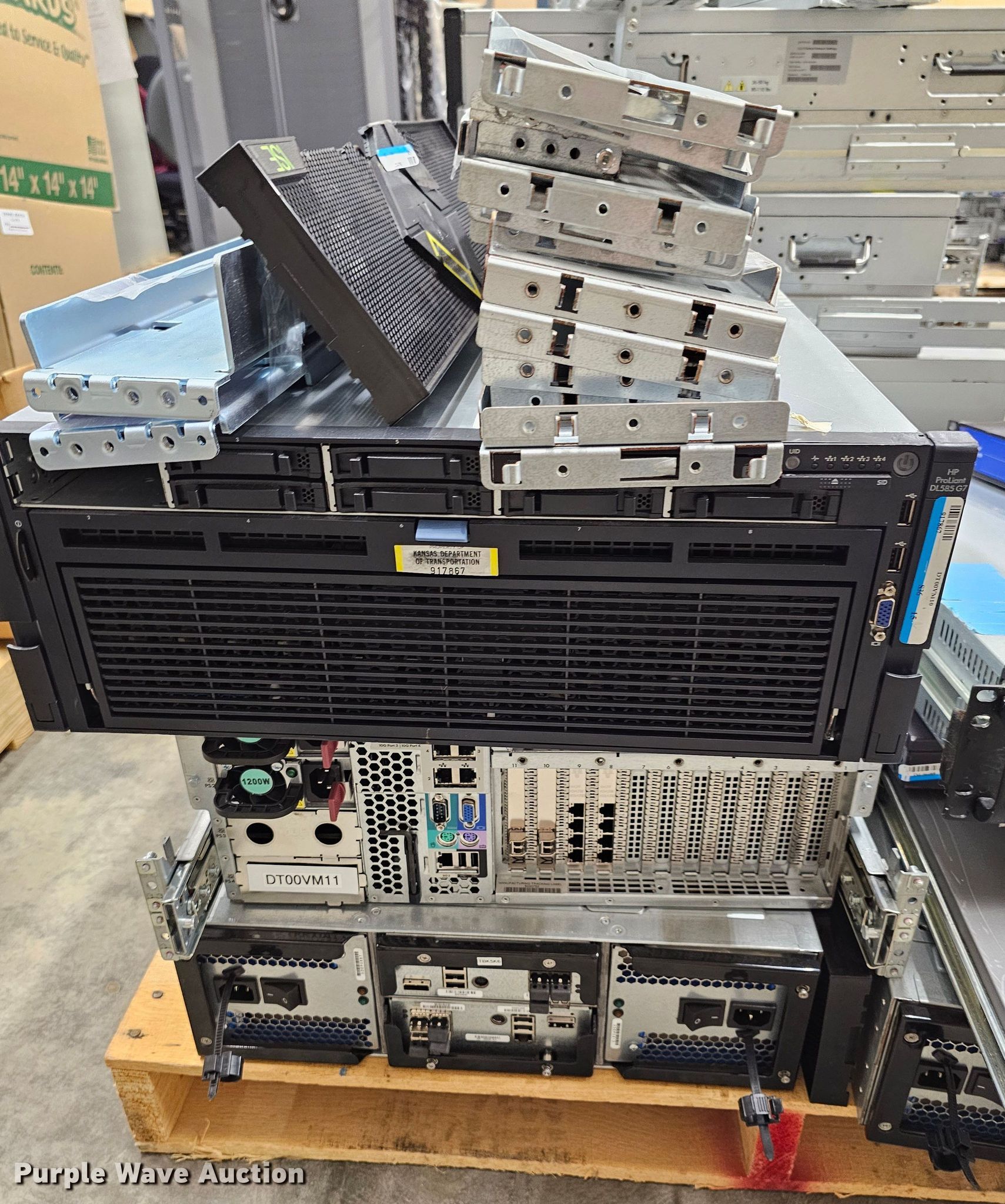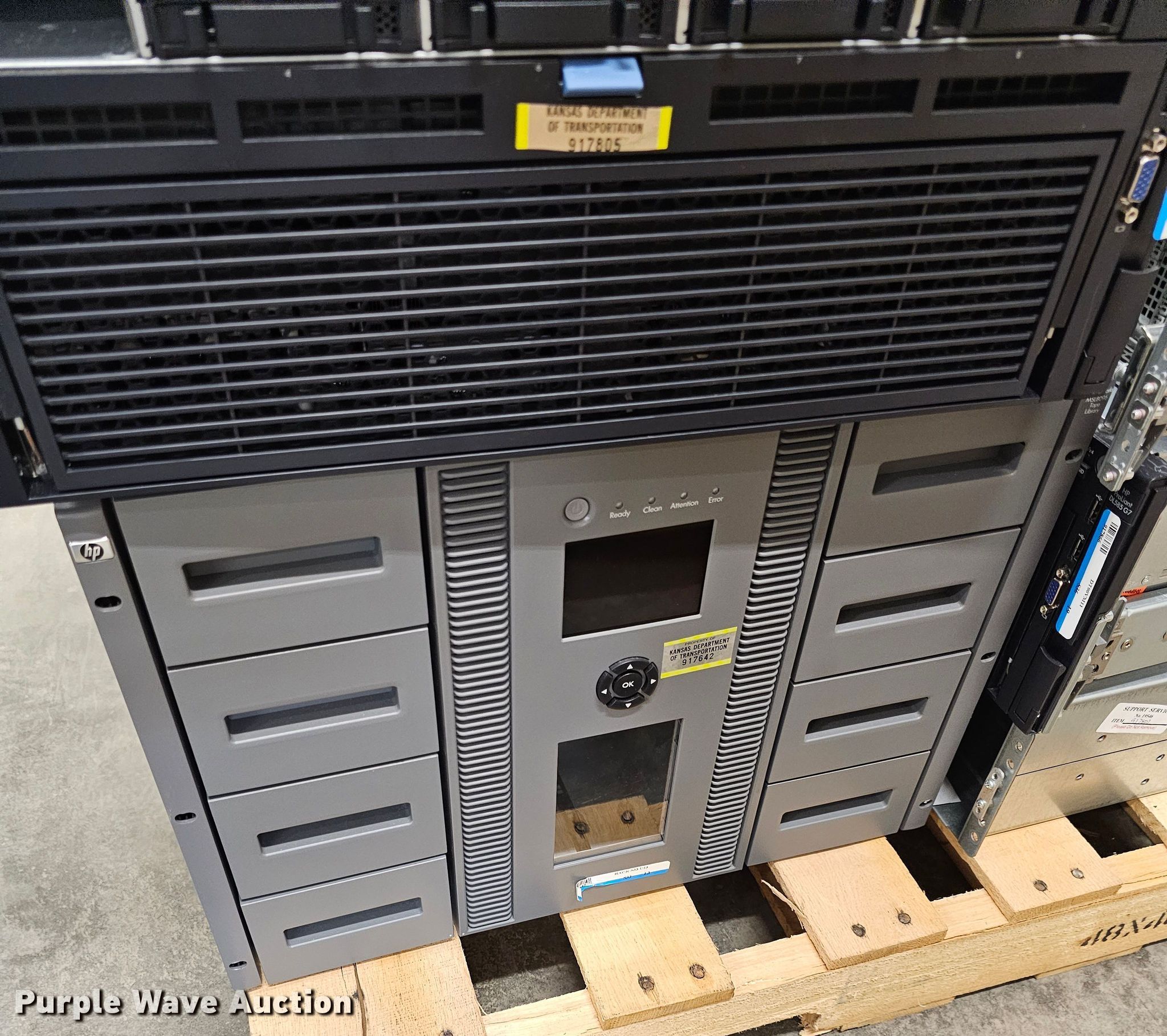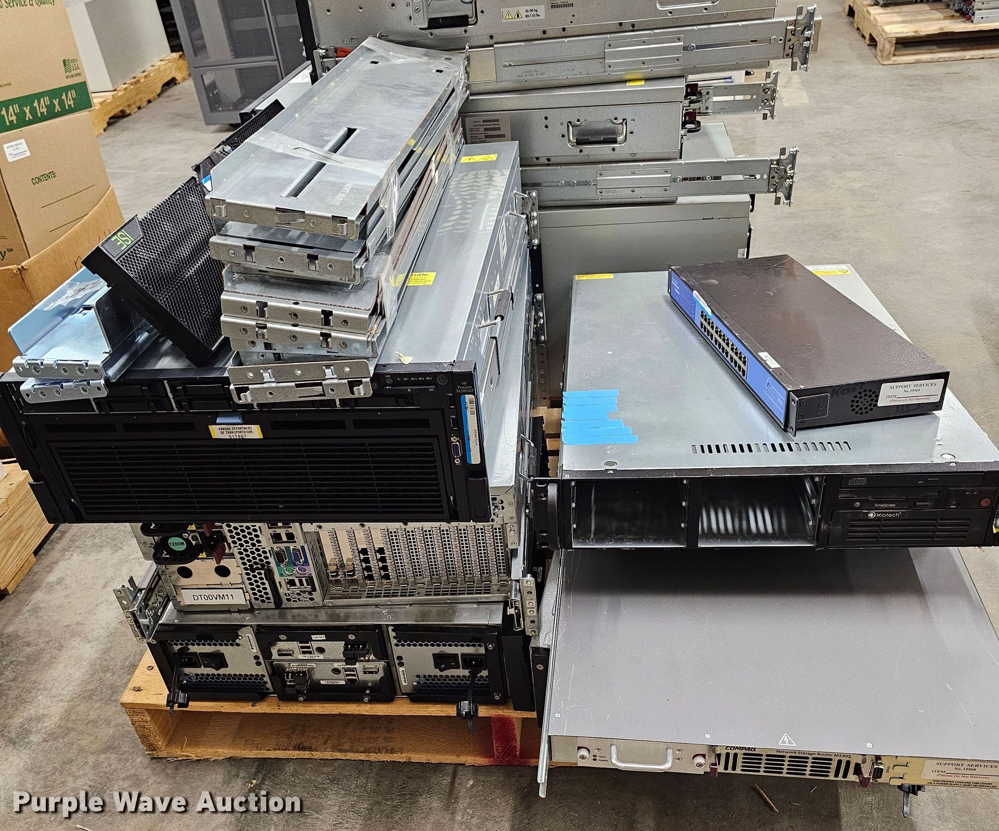 Electronics. Xiotech Time Scale server No hard drives, Brocade Silkworm 2400 8-port fiber channel network switch, Compaq M2402 fiber to SCSI bridge network router, Connect Gear 24-port ethernet switch, HP MSL8096 tape library, (2) Xiotech ISE2400 network storages No hard drives, (4) HP Proliant DL585 G7 servers No hard drives, KDOT ID: 23032814. View inventory for more information. Purple Wave reserves the right to obtain additional buyer information prior to item removal. Kansas Department of Transportation - Topeka Warehouse. 2035 SW Western Ave. Topeka, KS 66604