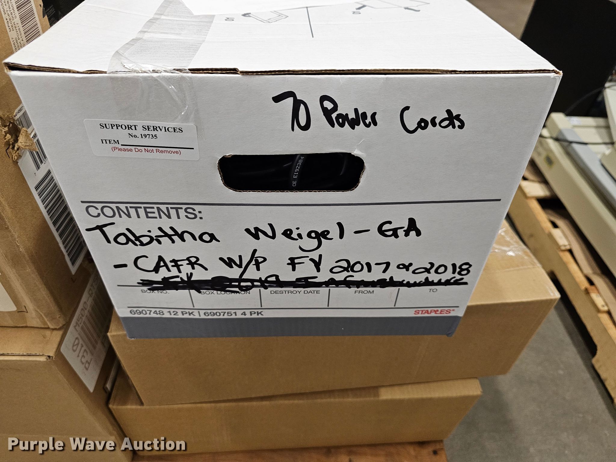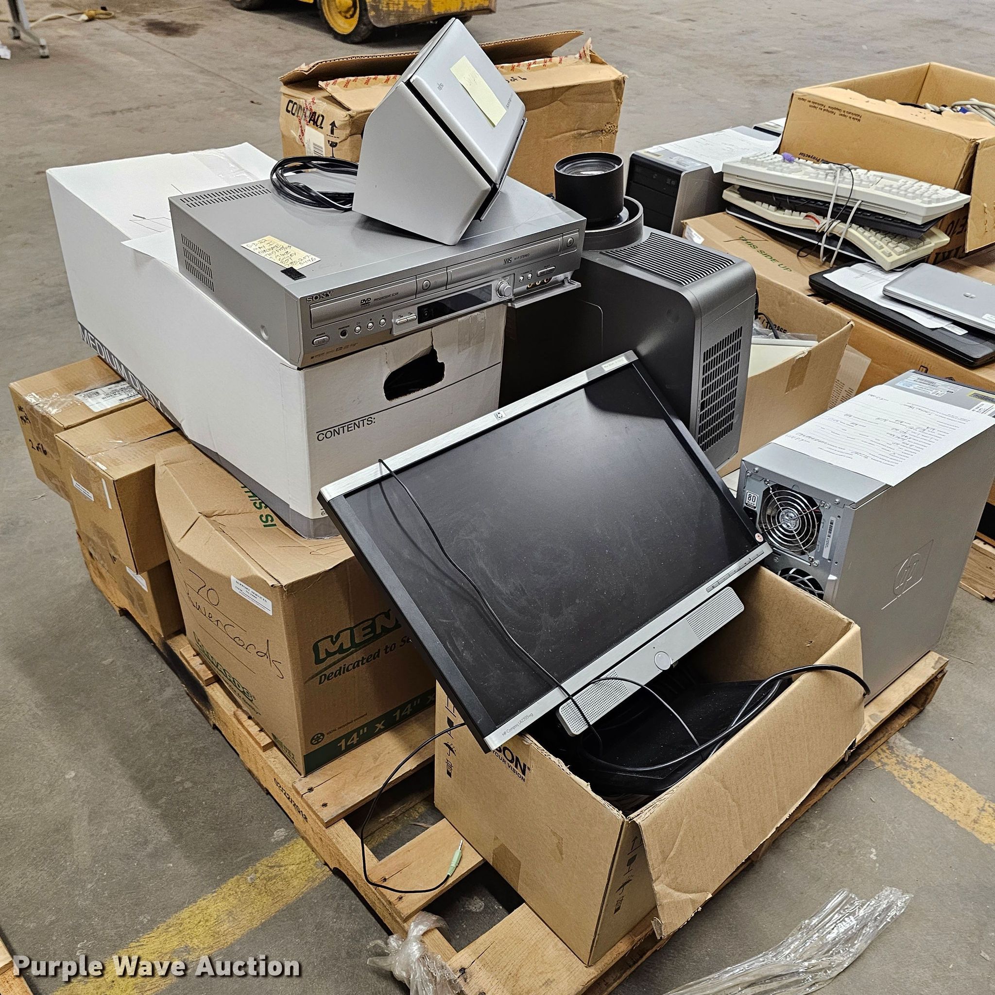 Purple Wave is selling a used Office Supplies and Equip. in Kansas. This item is a Office supplies and equipment with the following: (275) computer cords, (6) power distribution units, Sony SLV-D500P DVD/VCR recorder, Computer equipment, Office supplies, Craig 27020300 transcriber foot switch, HP LA2205WG 22" monitor, HP Z400 CPU, Intel Core Xeon processor, 160 GB HDD, 8 GB RAM, Hard drives have been reformatted and no operating system installed, Fujitsu S1500 scanner, Eiki LCXL100 projector and more, KDOT ID: 23032808