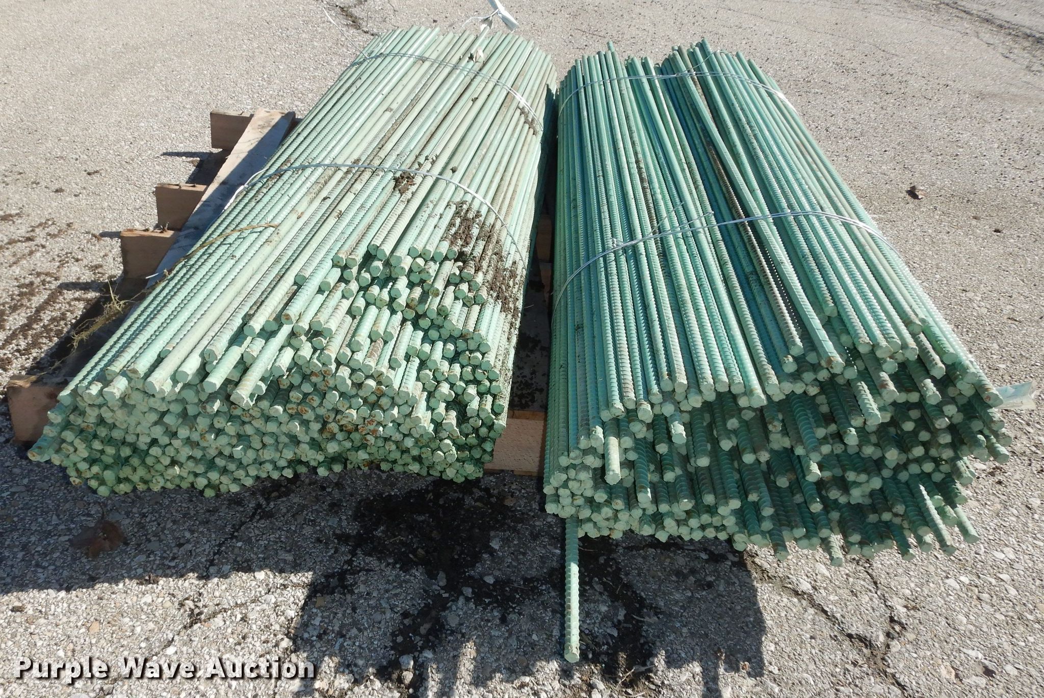 Purple Wave is selling a used Building Materials in Kansas. This item is a Approximately 940 pieces of epoxy coated re-bar with the following: 5'L x 1/2" diameter, Weight: 3,100 lbs, KDOT ID: 10420