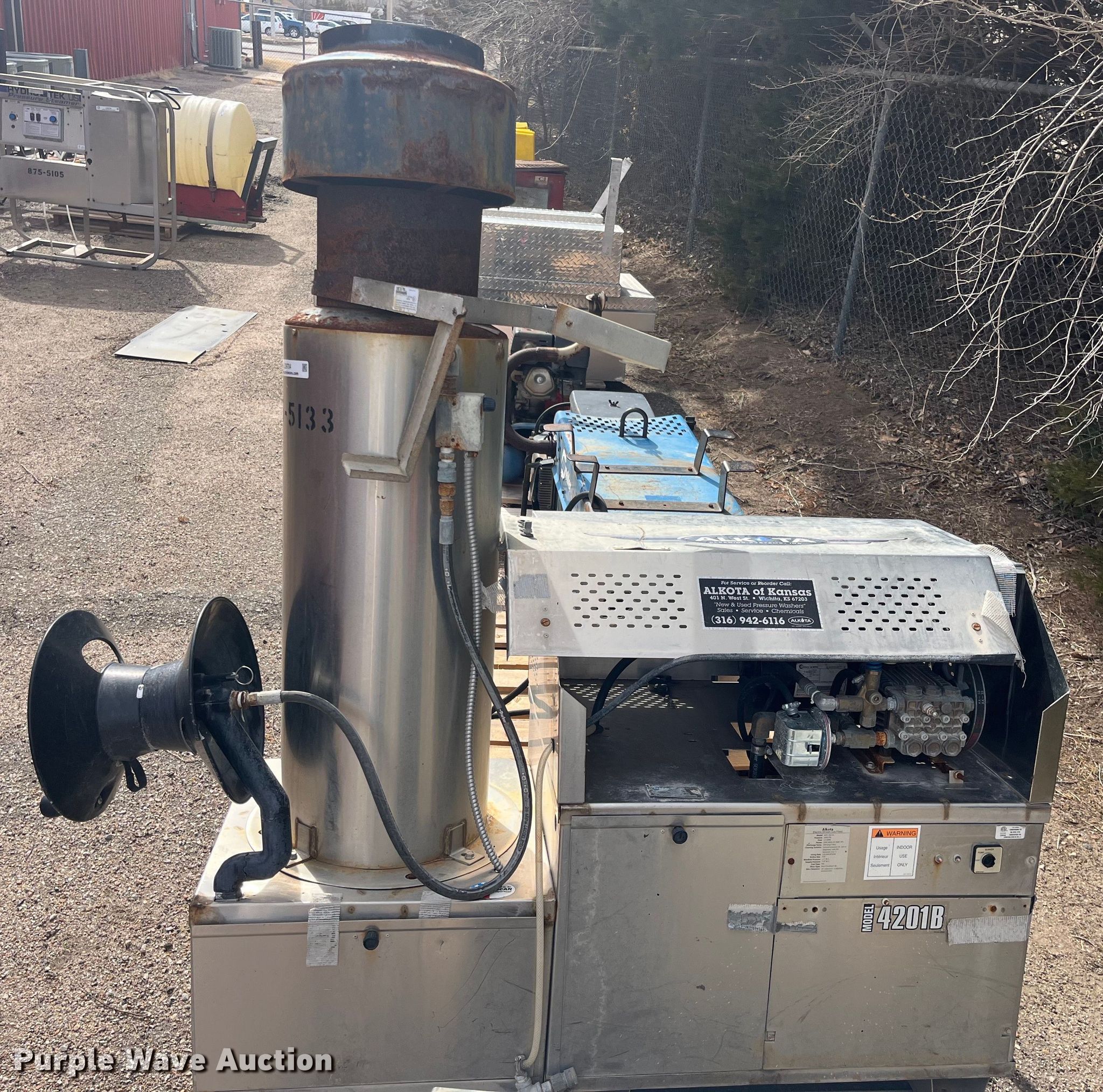Purple Wave is selling a used Pressure Washer in Kansas. This item is a 2013 Alkota 4201B-NG-UL pressure washer with the following: Serial: 269012, KDOT ID: 875-5133