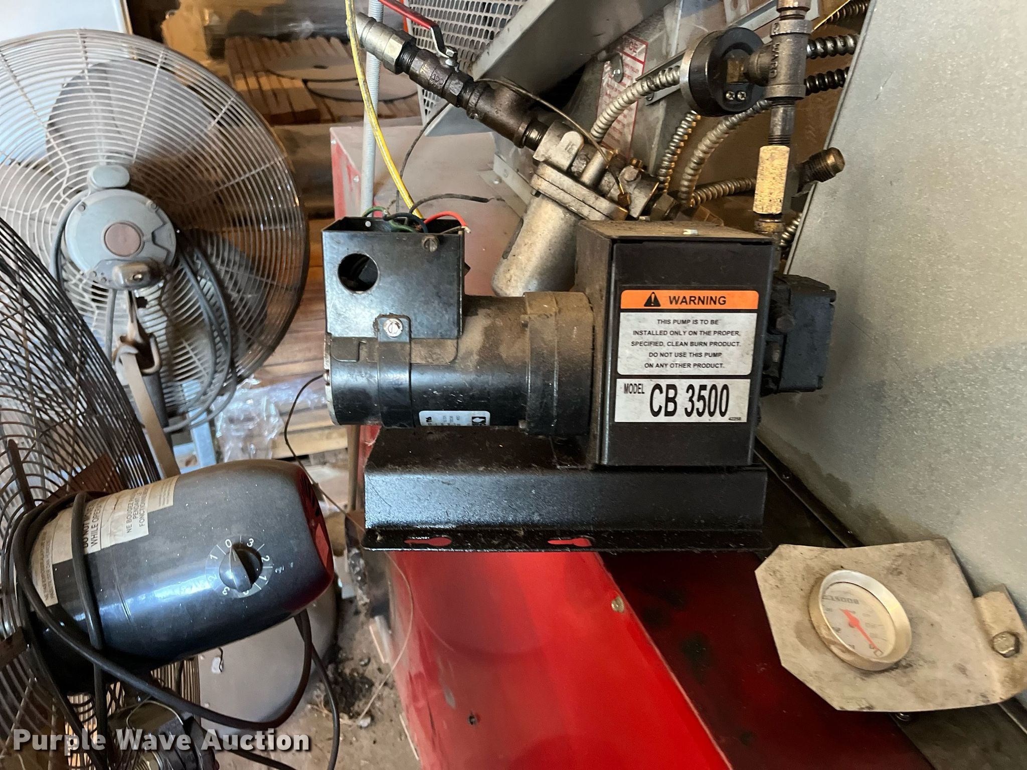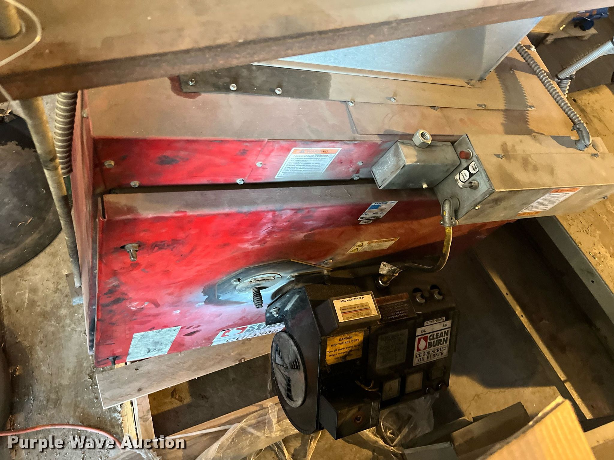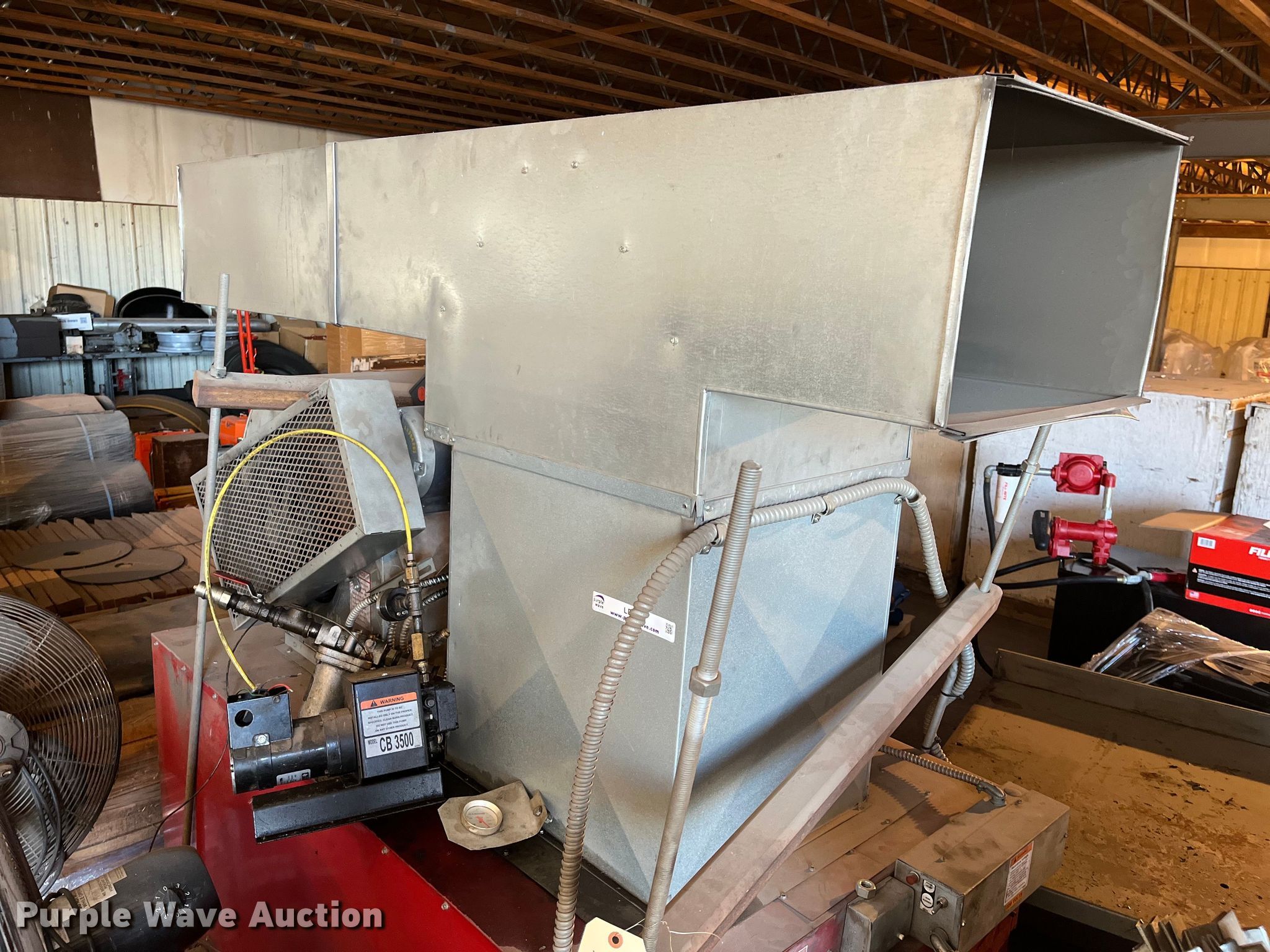 Purple Wave is selling a used Appliances in Kansas. This item is a Clean Burn CB-3500 waste oil furnace with the following: 350,000 BTU, Approx. 60' of duct work, Unknown operating condition, KDOT ID: 50565
