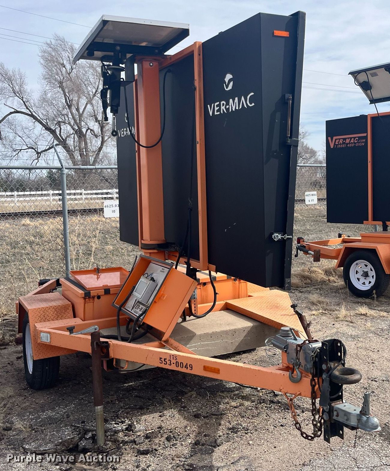Purple Wave is selling a used Road Safety Equip. in Kansas. This item is a 2009 Ver-Mac PCMS1210 message board trailer with the following: VIN: 289US41228S132214, KDOT ID: 553-0049