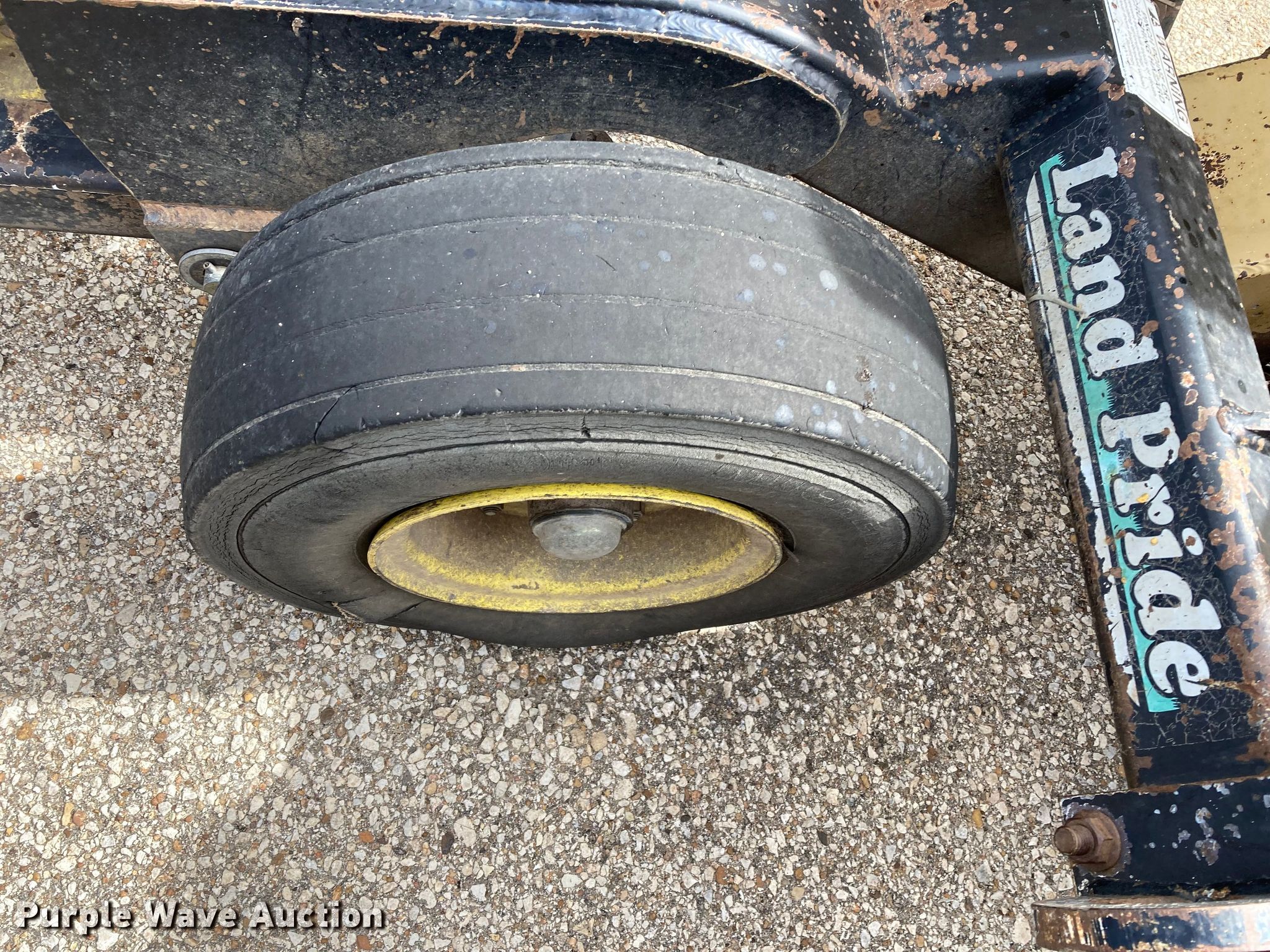 2005 Land Pride RCB6015 batwing rotary mower. Serial: 473296, KDOT ID: 397-2065. Features Width: 15', Hydraulic lift, Hydraulic fold, PTO: 1000. Tires Size: 24x7.7R10. Notes Chain guards damaged, PTO shaft issues, detaches while running. Kansas Department of Transportation - Salina. 1006 North 3rd. Salina, KS 67401