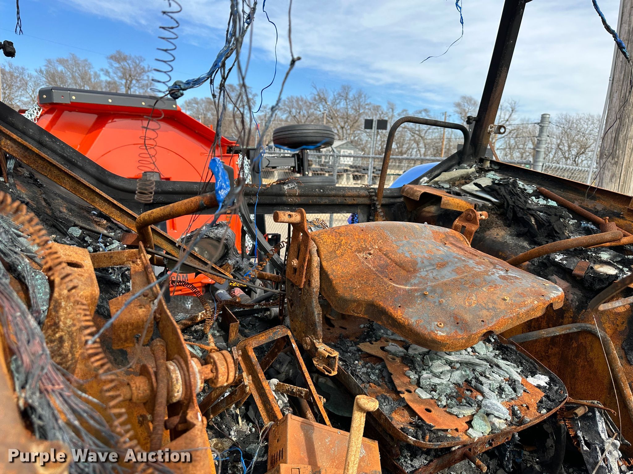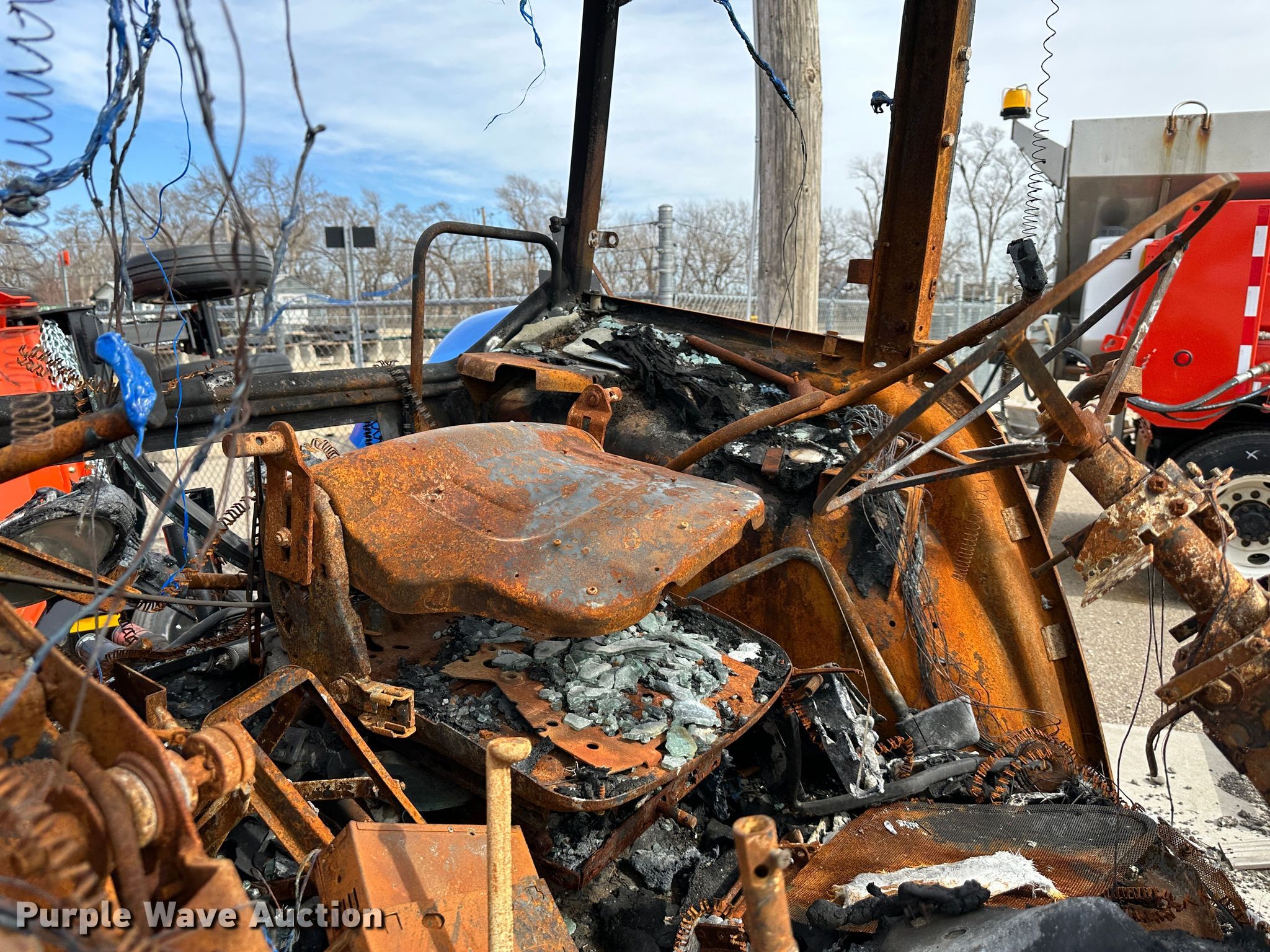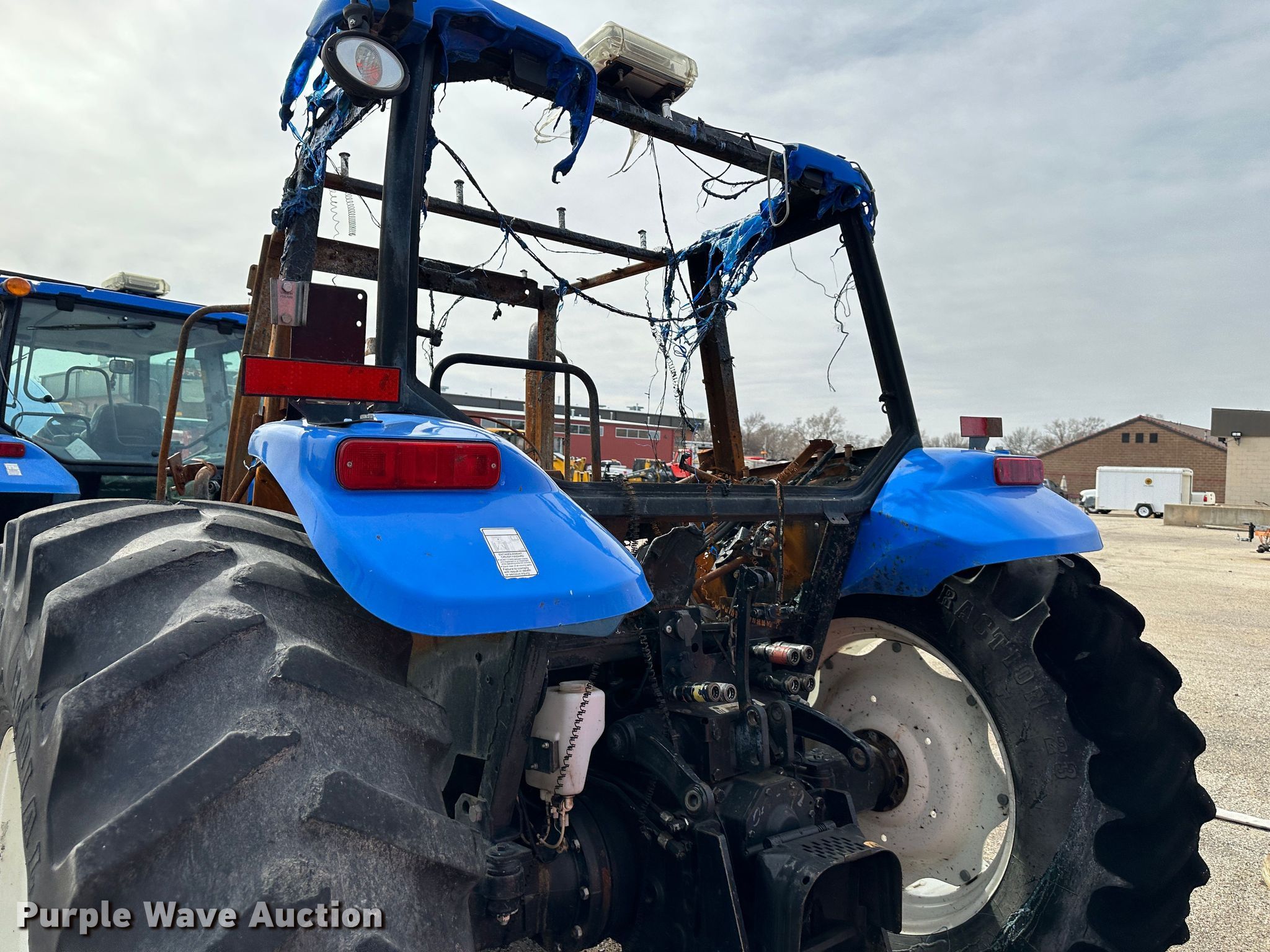 2011 New Holland T5070 MFWD tractor. Hours: Unknown Last recorded hours: 3,866, Serial: ZBJH08796, KDOT ID: 352-2021. Engine New Holland Tier III, Displacement: 4.5L, Cylinders: 4, Fuel type: Diesel. Transmission Synchro, 12F - 12R. Operators station AC, Heat. Features PTO: 540, 1000, Three point, Seven pin outlet, Hydraulic remote sets Rear: 3, Suitcase weights: 10. Tires Rear: 18.4R34. Notes Three point arms missing, PTO end shaft missing, Fire damage, Non-operational unit. Kansas Department of Transportation - Salina. 1006 North 3rd. Salina, KS 67401