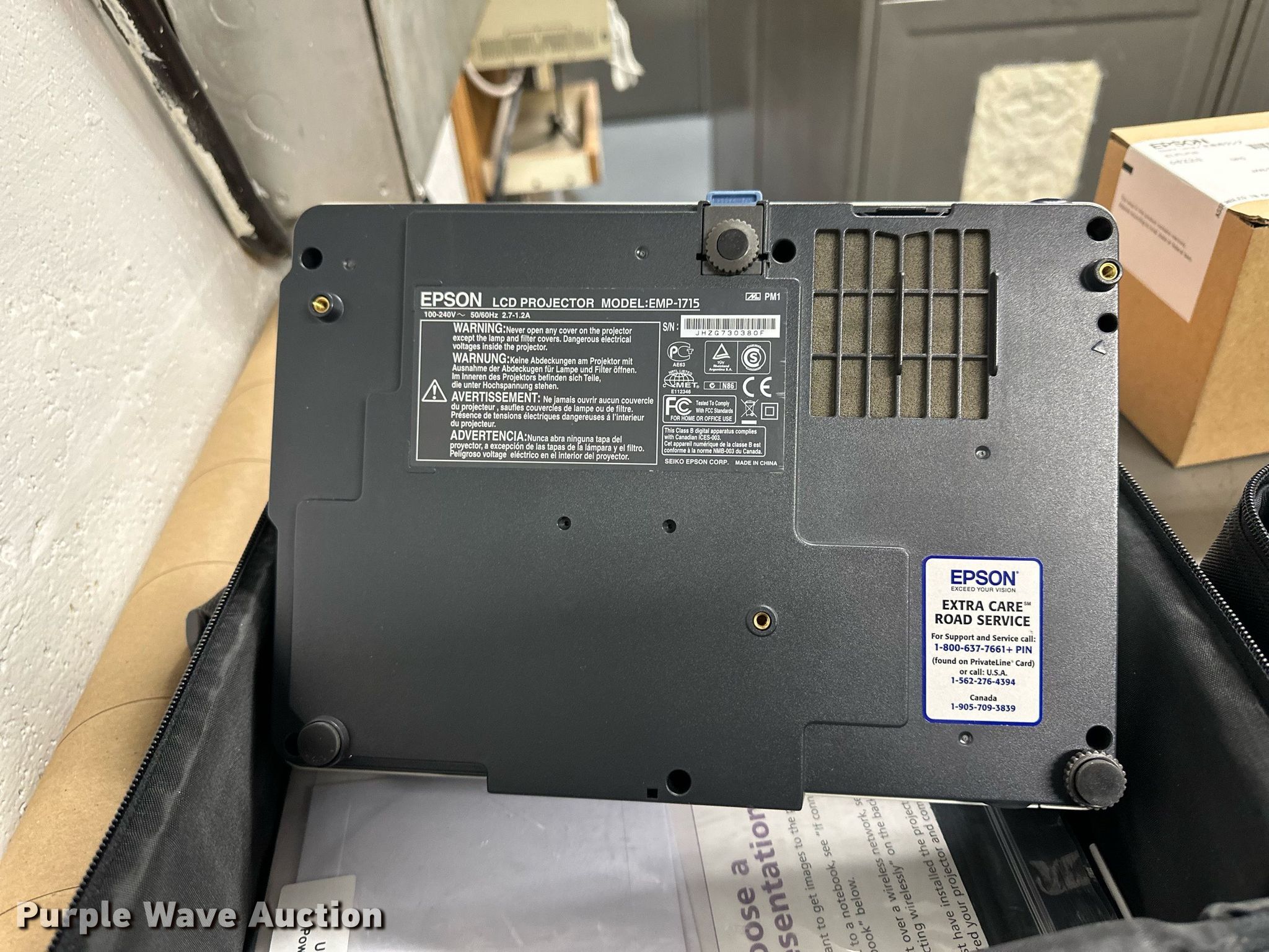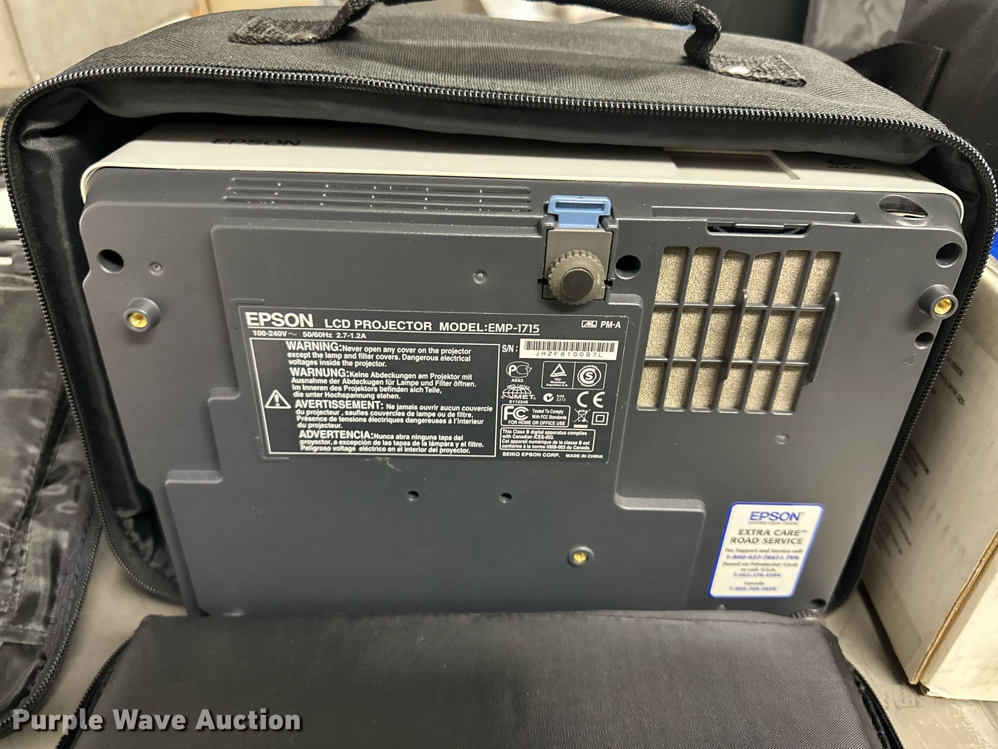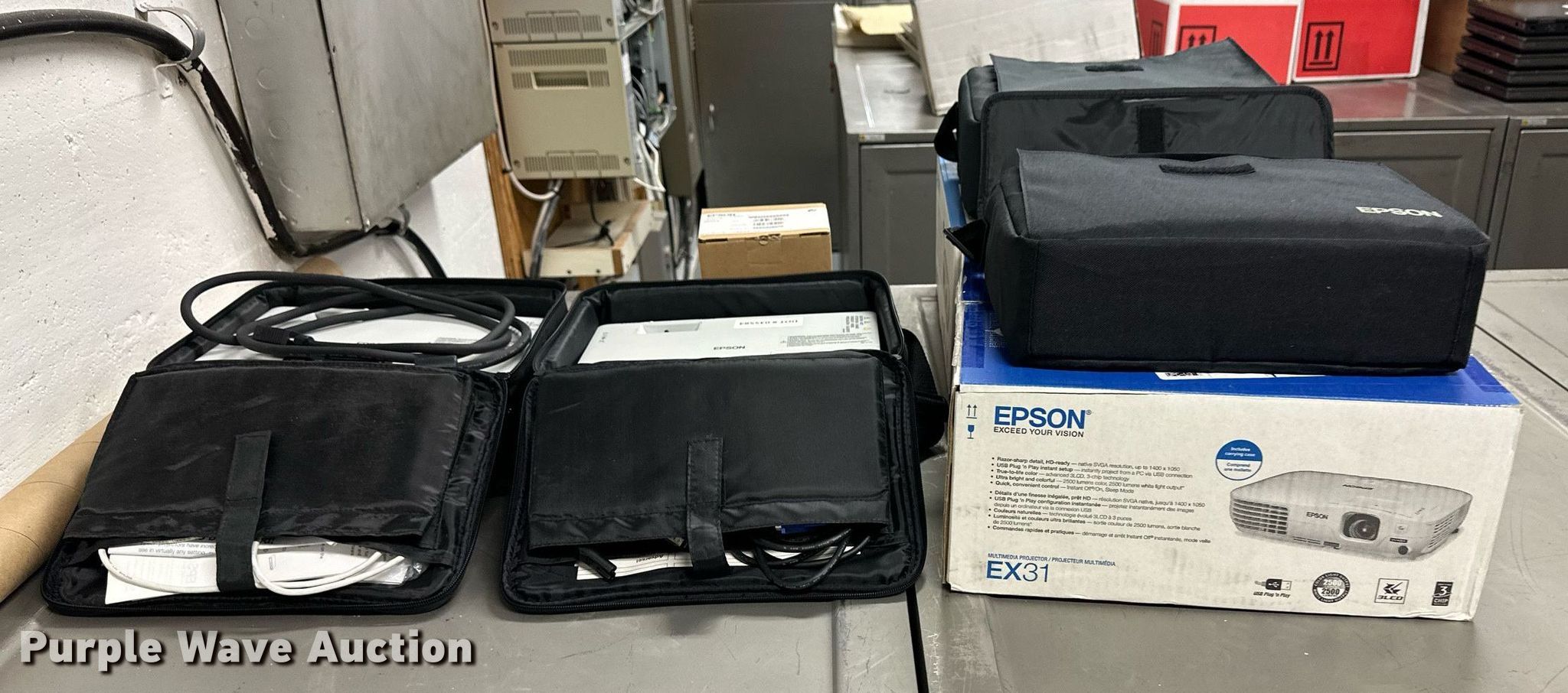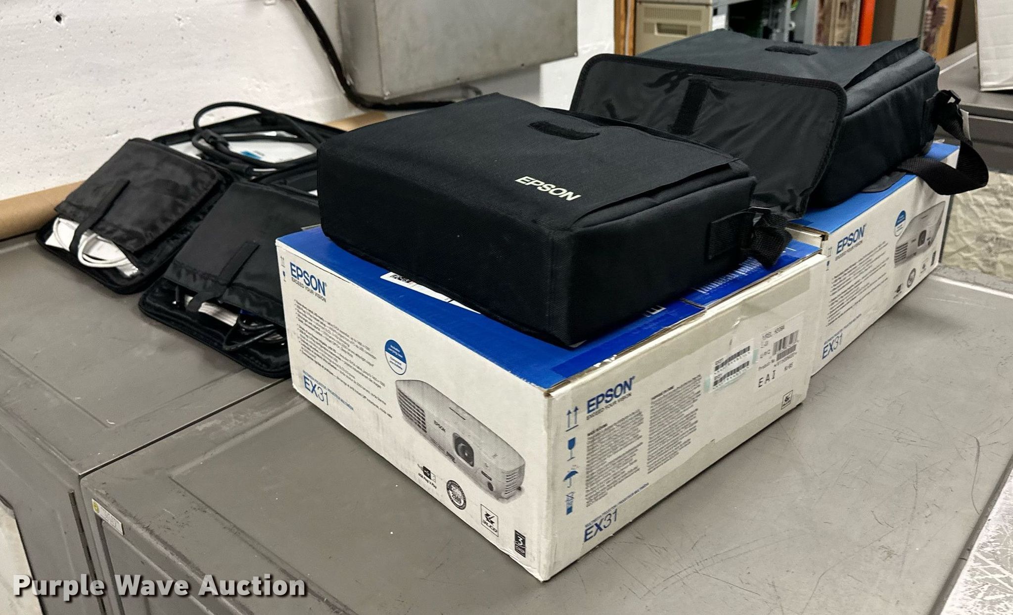 Purple Wave is selling a used Electronics in Kansas. This item is a (4) Epson projectors with the following: Model: 2700 Lumen, Model: 1715C, (2) model: EX31, KDOT ID: 035495, 035584, 2763000-EPSON
