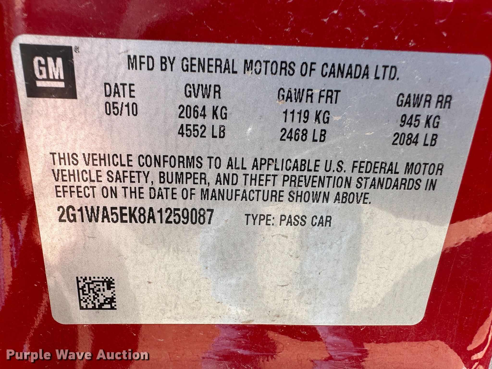 - VIN: 2G1WA5EK8A1259087