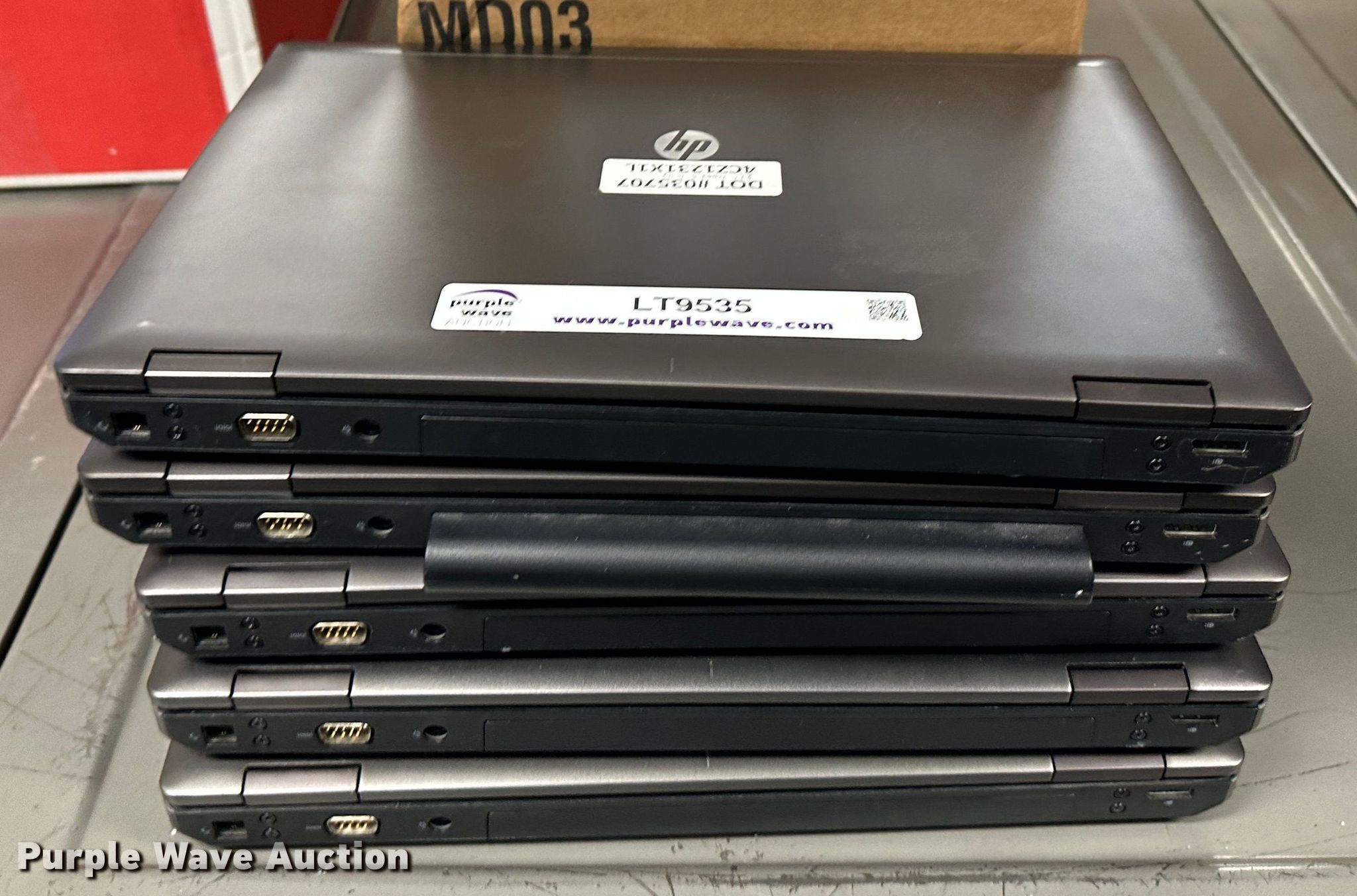 Purple Wave is selling a used Computers in Kansas. This item is a (5) HP Probook 6560B laptops with the following: Intel Core i5-2520M processors, 2.50 GHz, 8 GB RAM, 150 GB HDD, Power cords, Hard drives have been reformatted and no operating system installed, KDOT ID: 035707, 035708, 035709, 035710, 035711