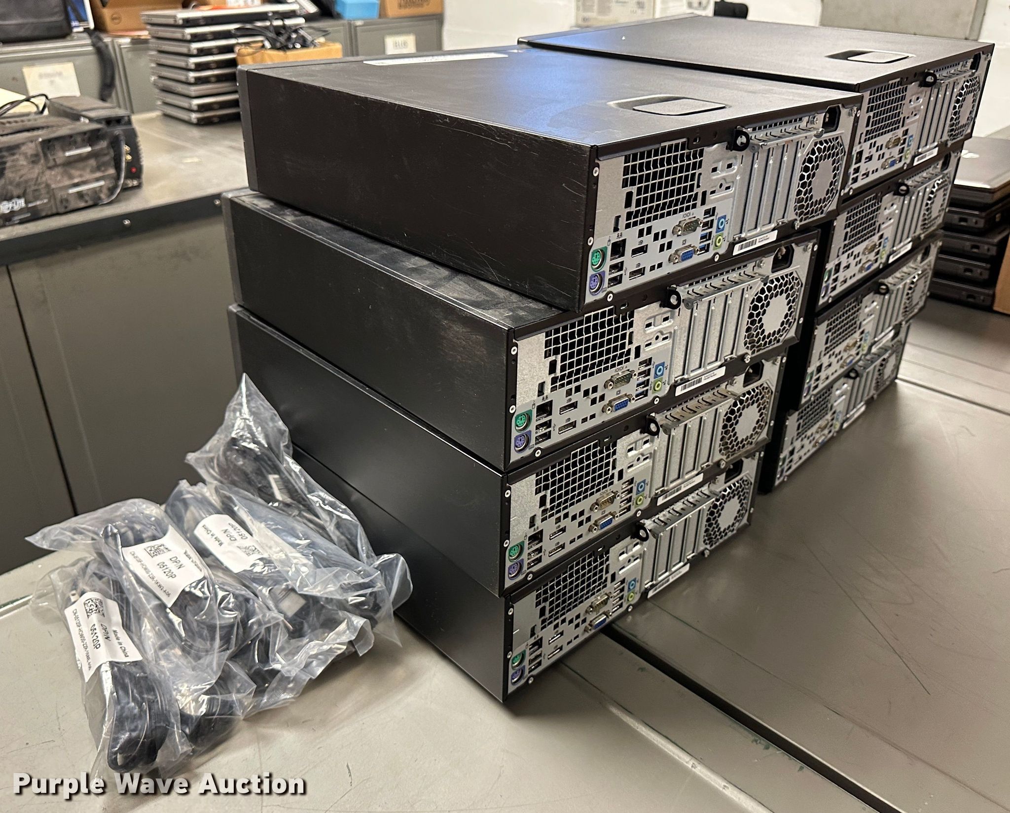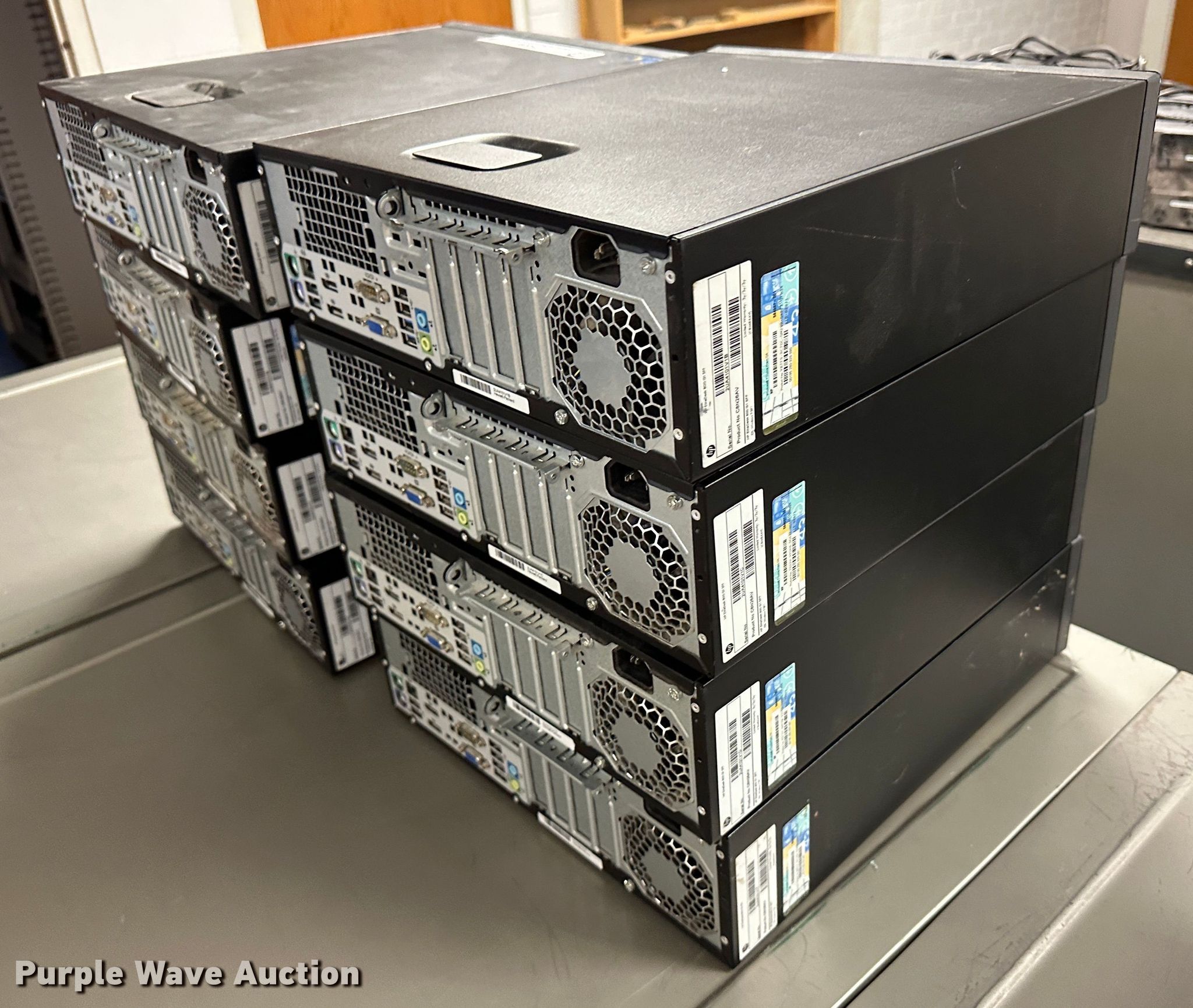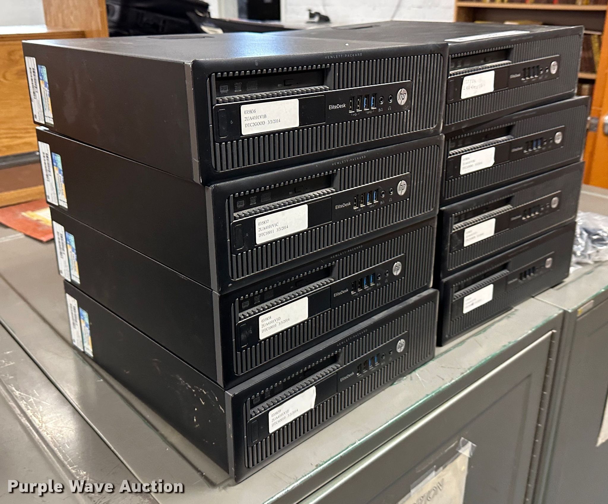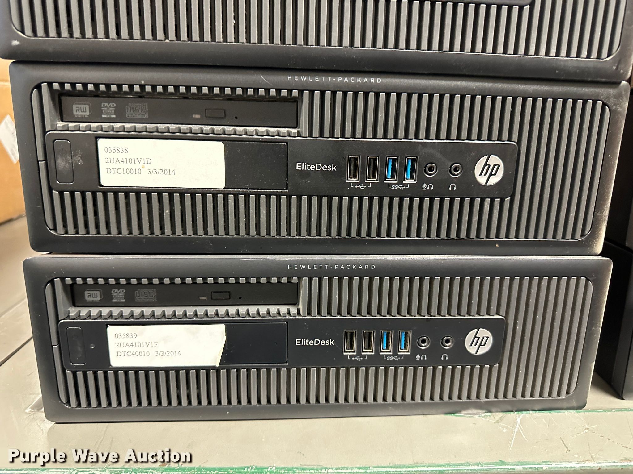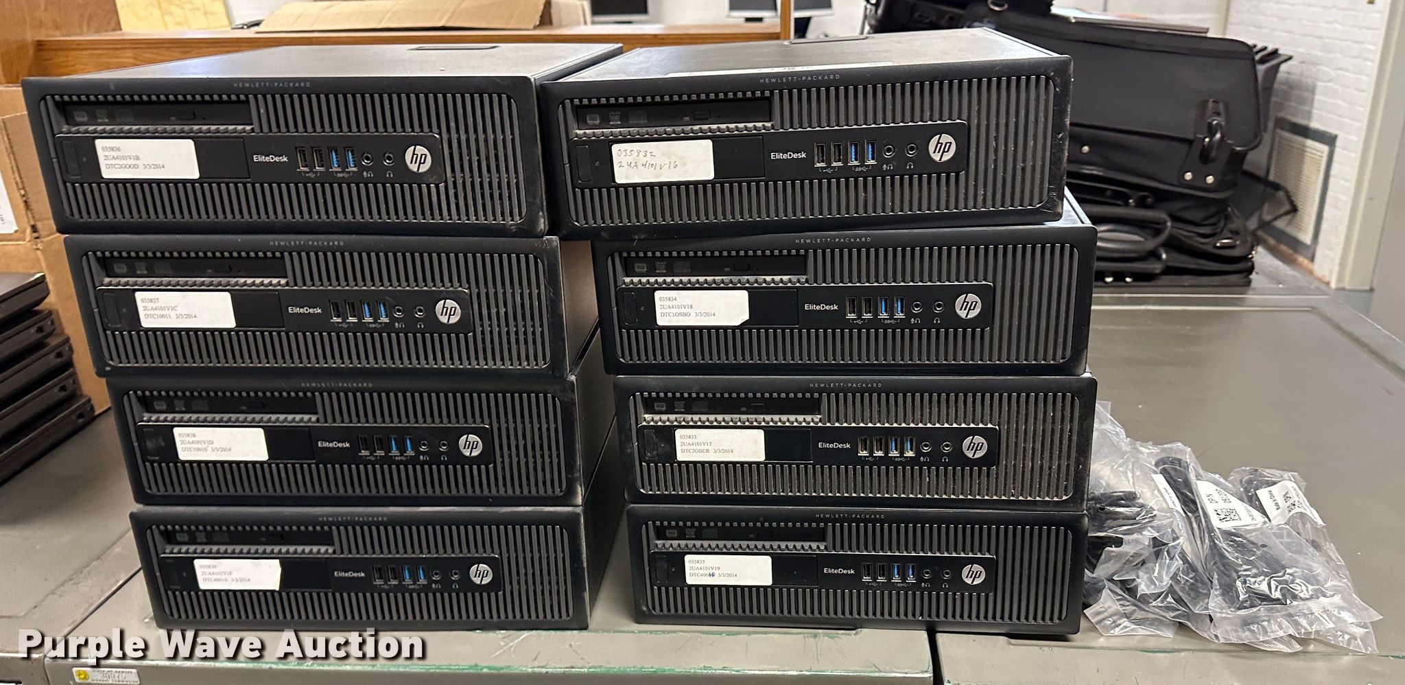 Purple Wave is selling a used Computers in Kansas. This item is a (8) HP Elitedesk 800 CPUs with the following: Intel Core i3-4130 processor, 3.40 GHz, 4 GB RAM, 500 GB HDD, Keyboards, Mice, Power cords, Hard drives have been reformatted and no operating system installed, KDOT ID: 035832, 035833, 035834, 035835, 035836, 035837, 035838, 035839