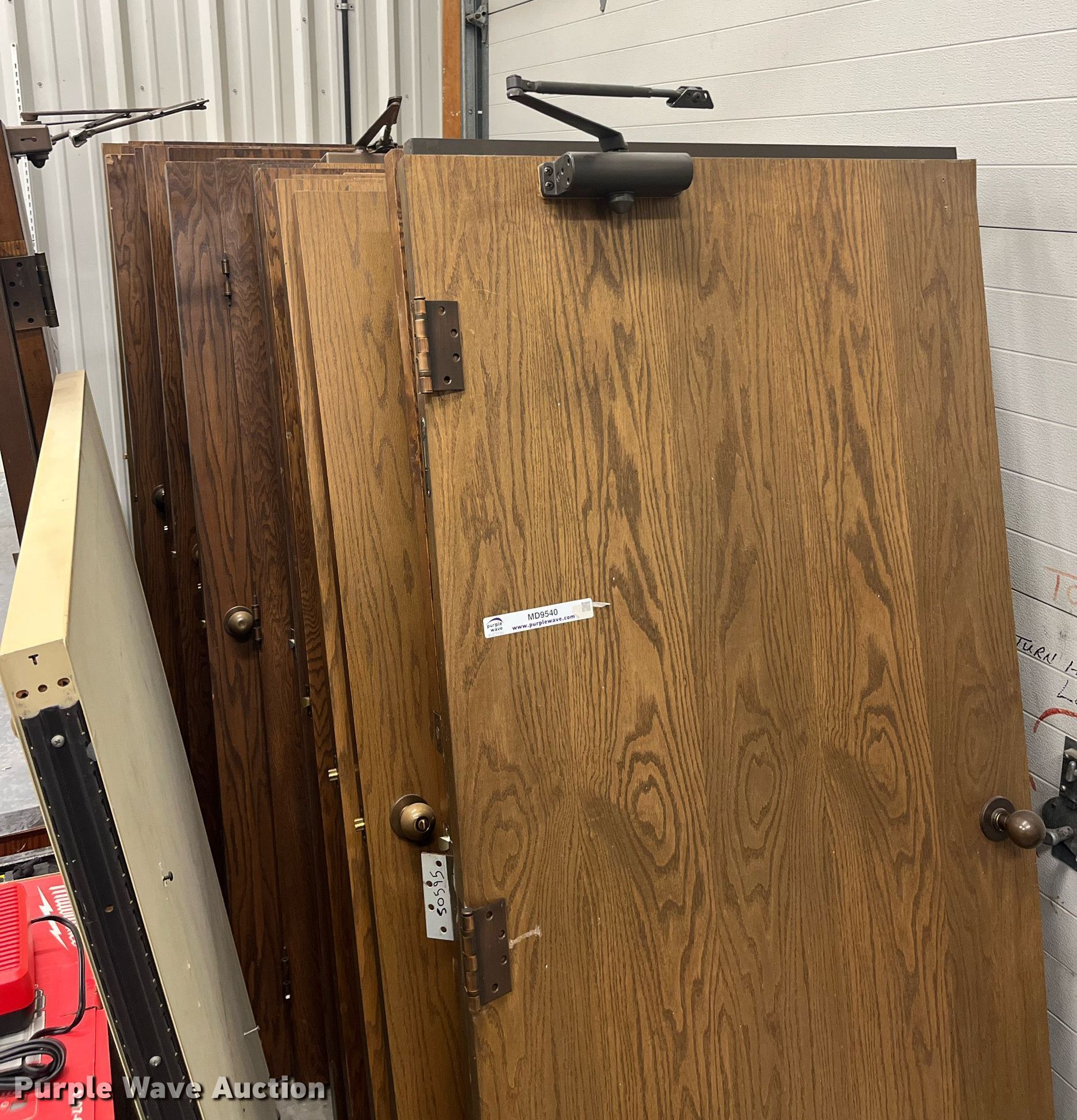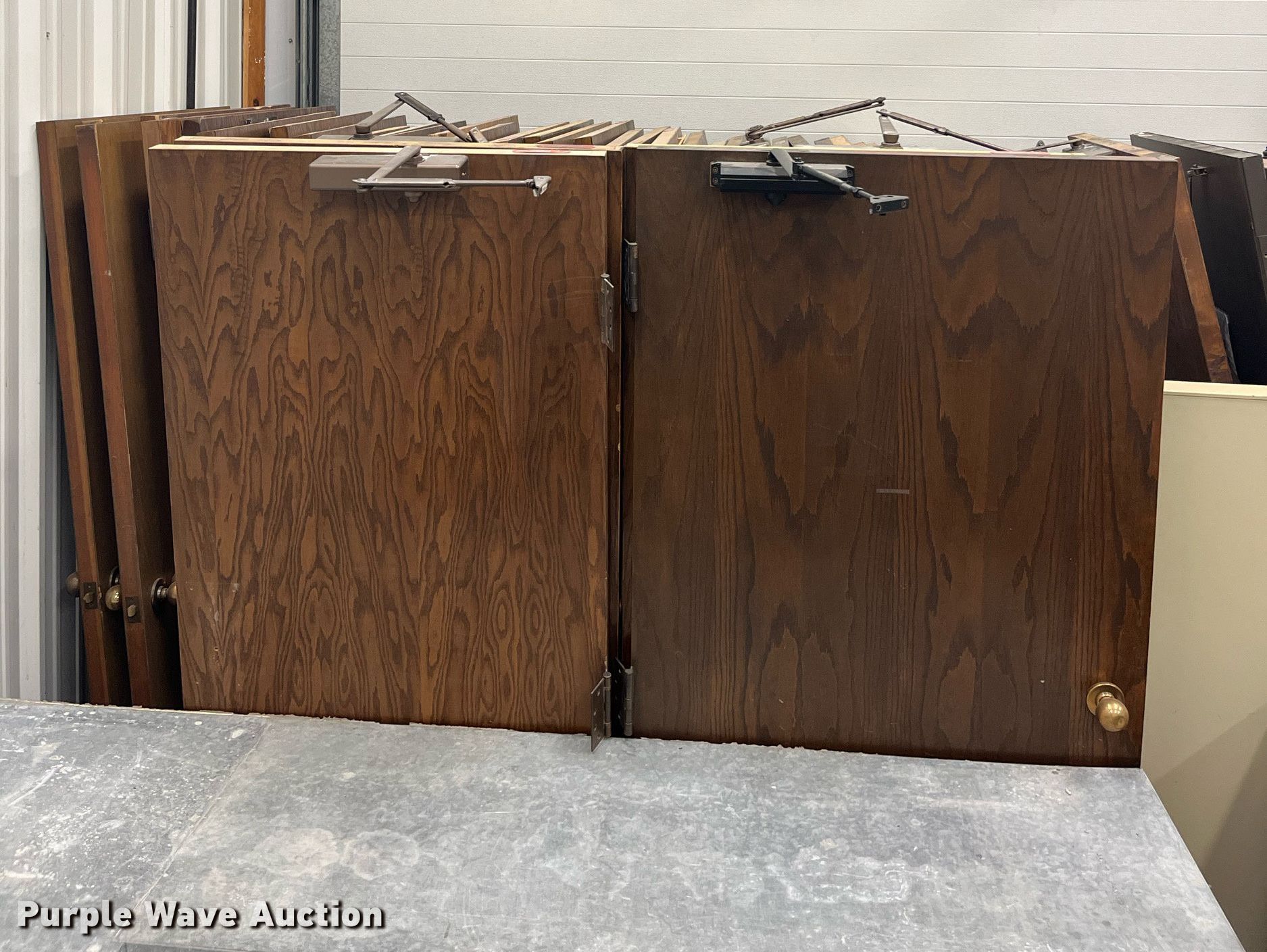 Purple Wave is selling a used Building Materials in Kansas. This item is a (42) wood doors with the following: 36" x 80", KDOT ID: 50595