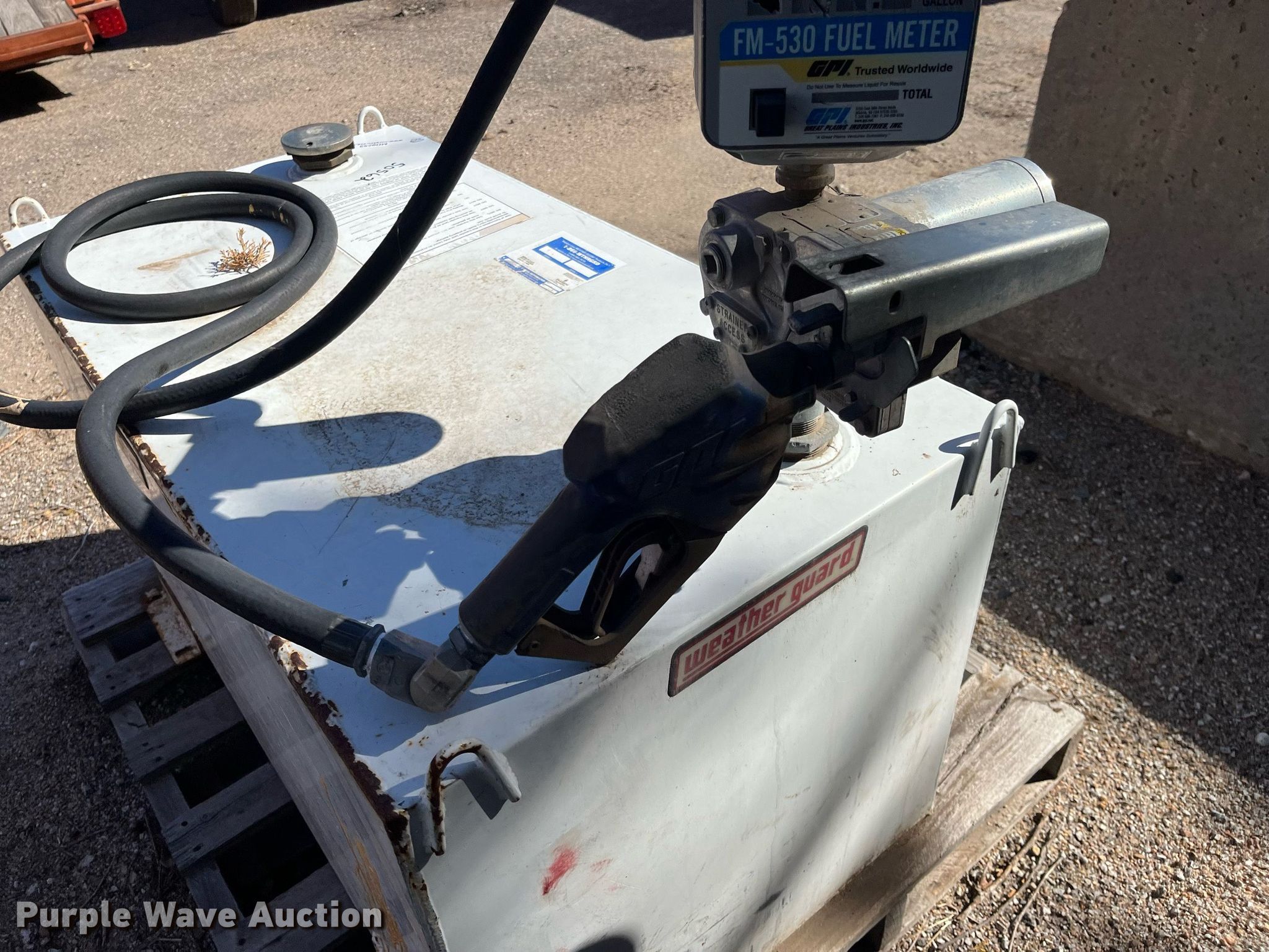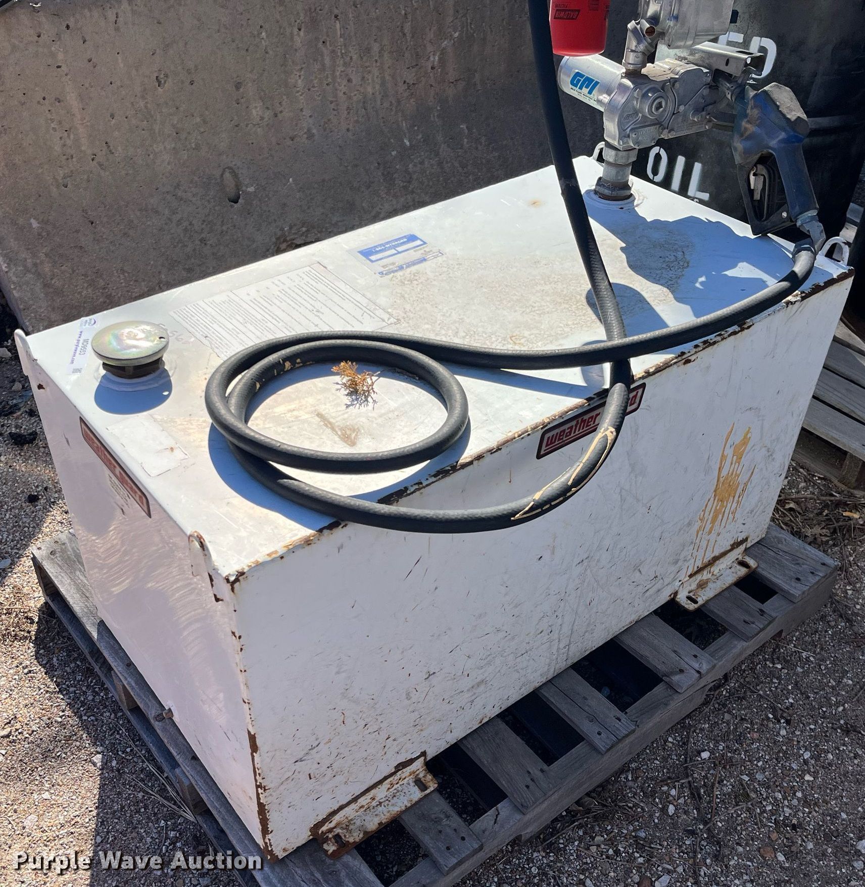 Purple Wave is selling a used Fuel and Lube in Kansas. This item is a Weatherguard auxiliary fuel tank with the following: Capacity: 100 gallons, Fuel pump, KDOT ID: 50562