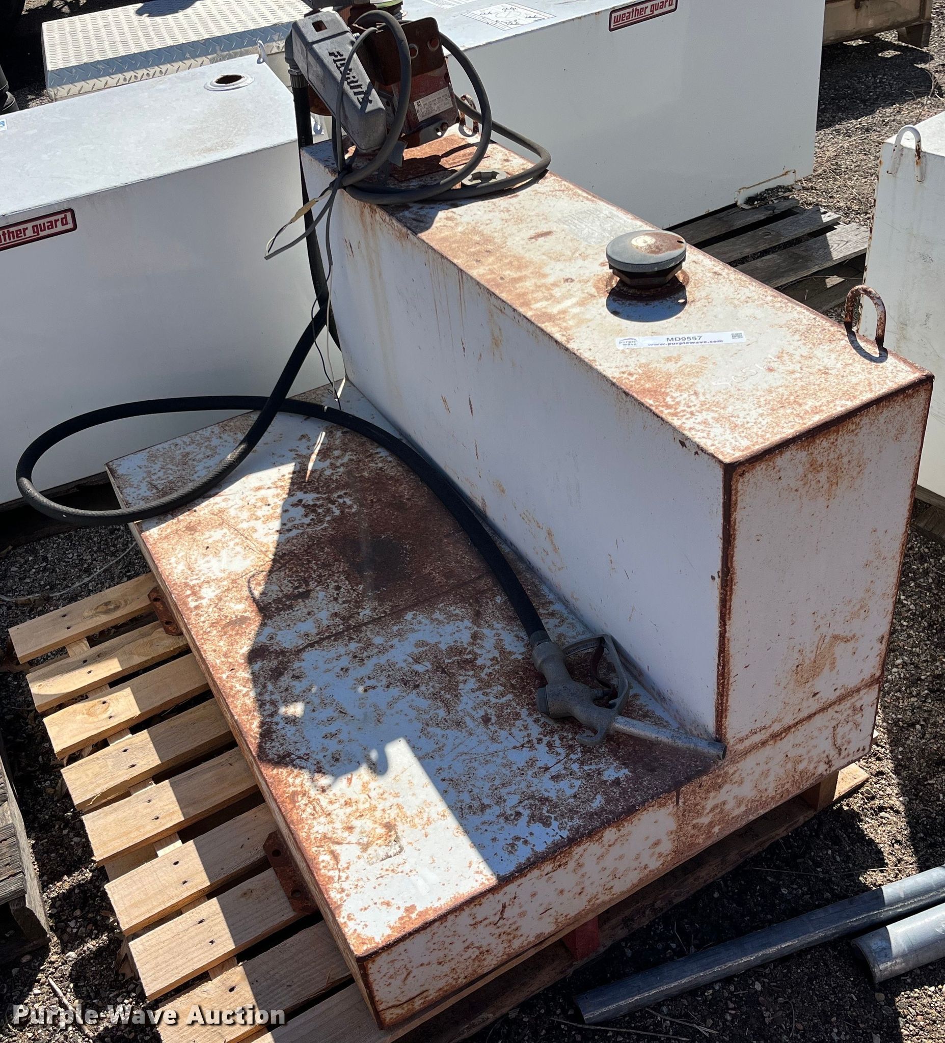 Purple Wave is selling a used Fuel and Lube in Kansas. This item is a Weatherguard L-shaped auxiliary fuel tank with the following: Fuel pump, KDOT ID: 50561