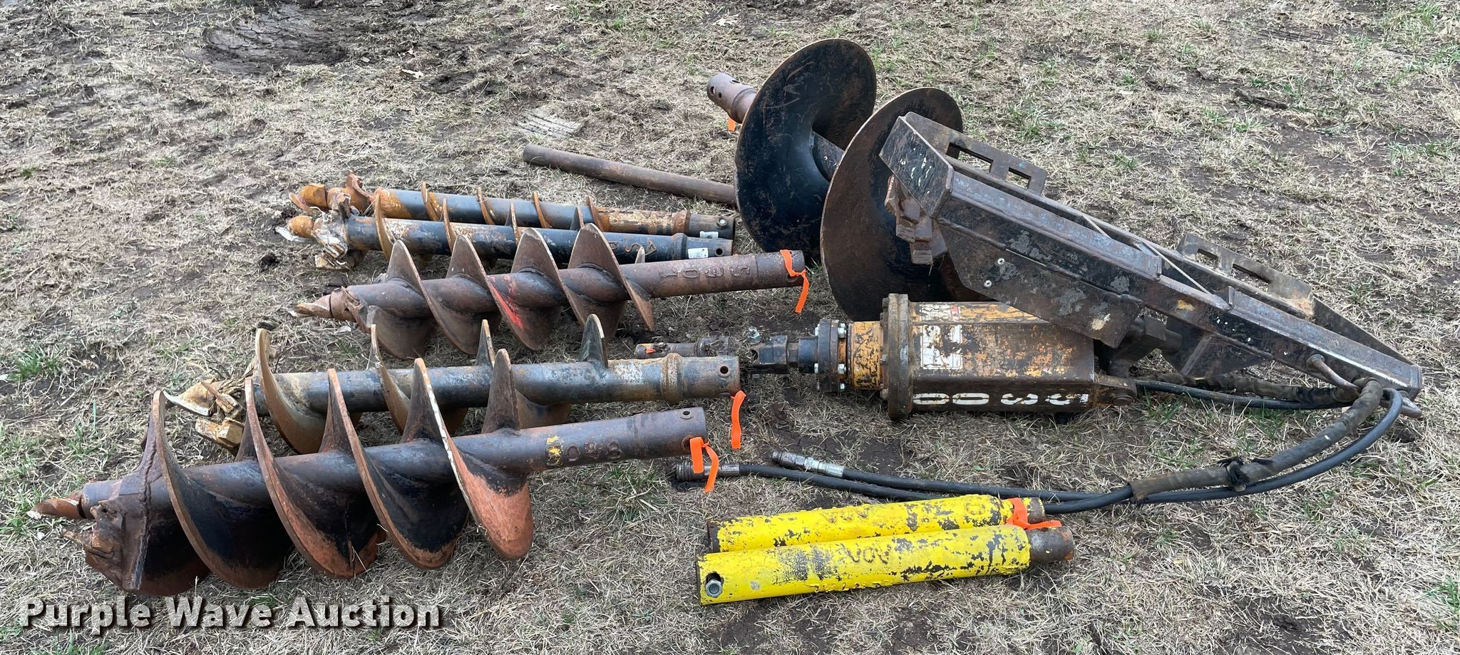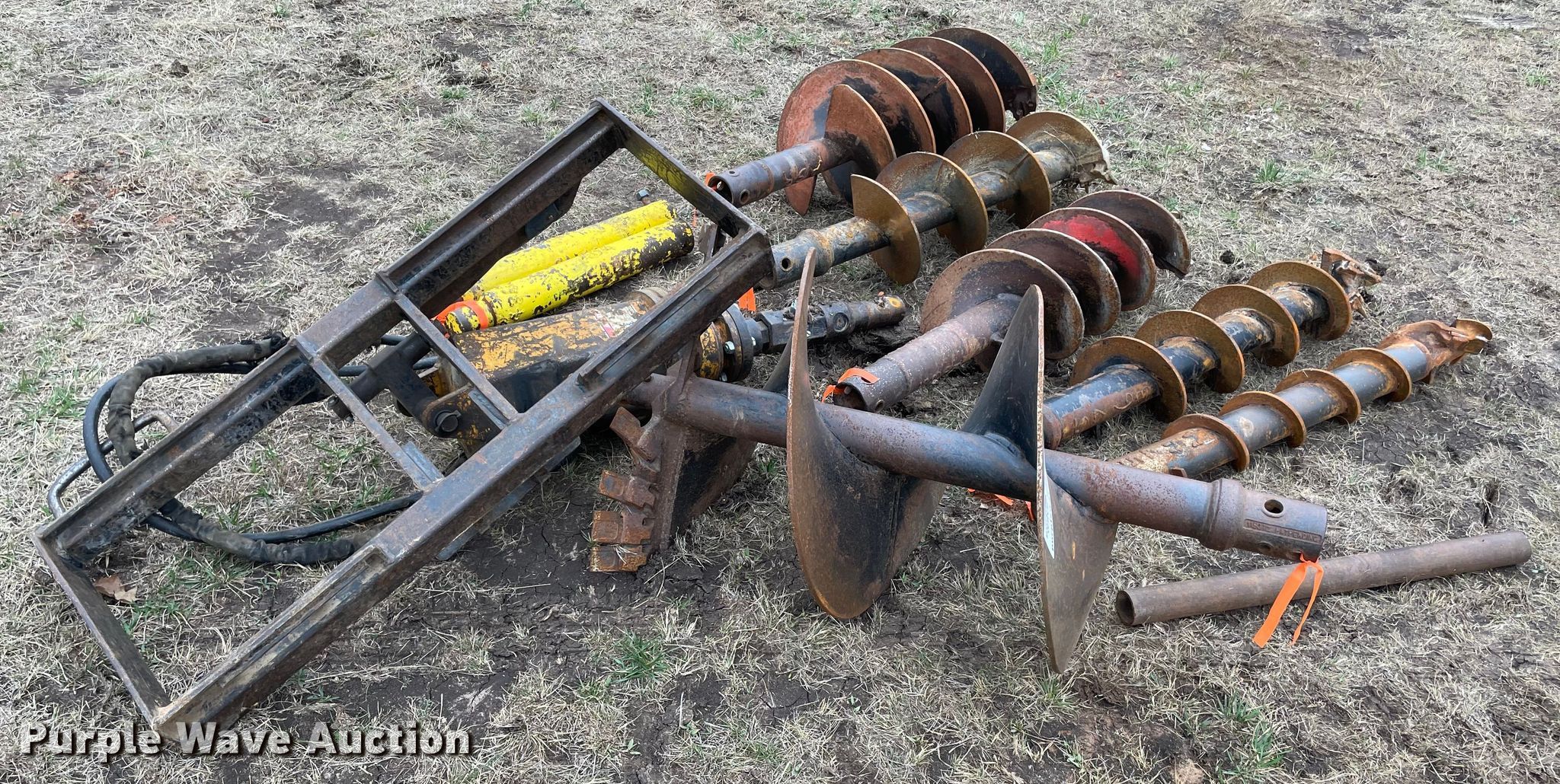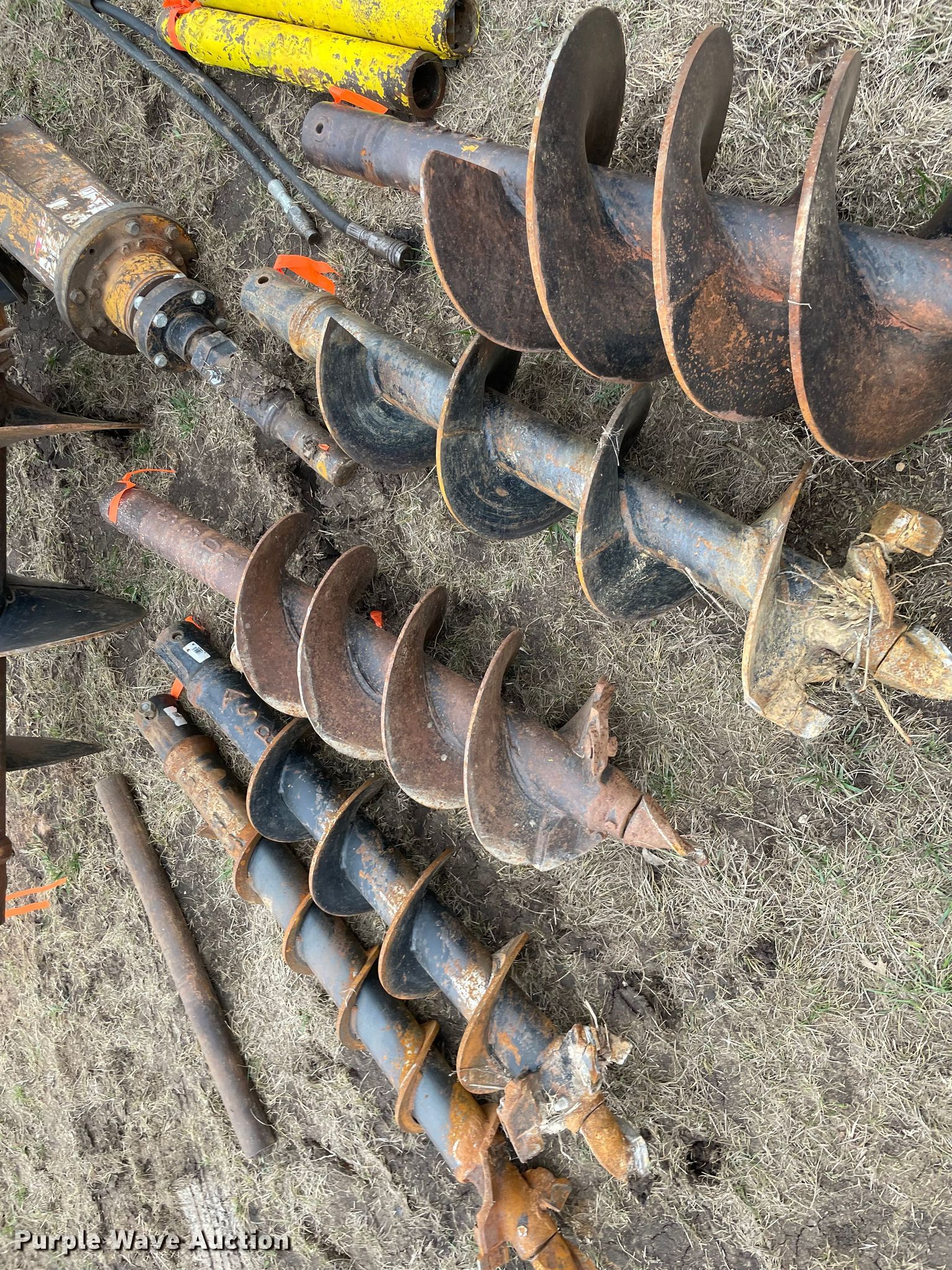 Purple Wave is selling a used Skid Steer Attach. in Oklahoma. This item is a Skid steer auger with the following: (6) auger bits, 6" diameter, 8" diameter, (2) 11" diameter, 15" diameter, 24" diameter, (2) extensions