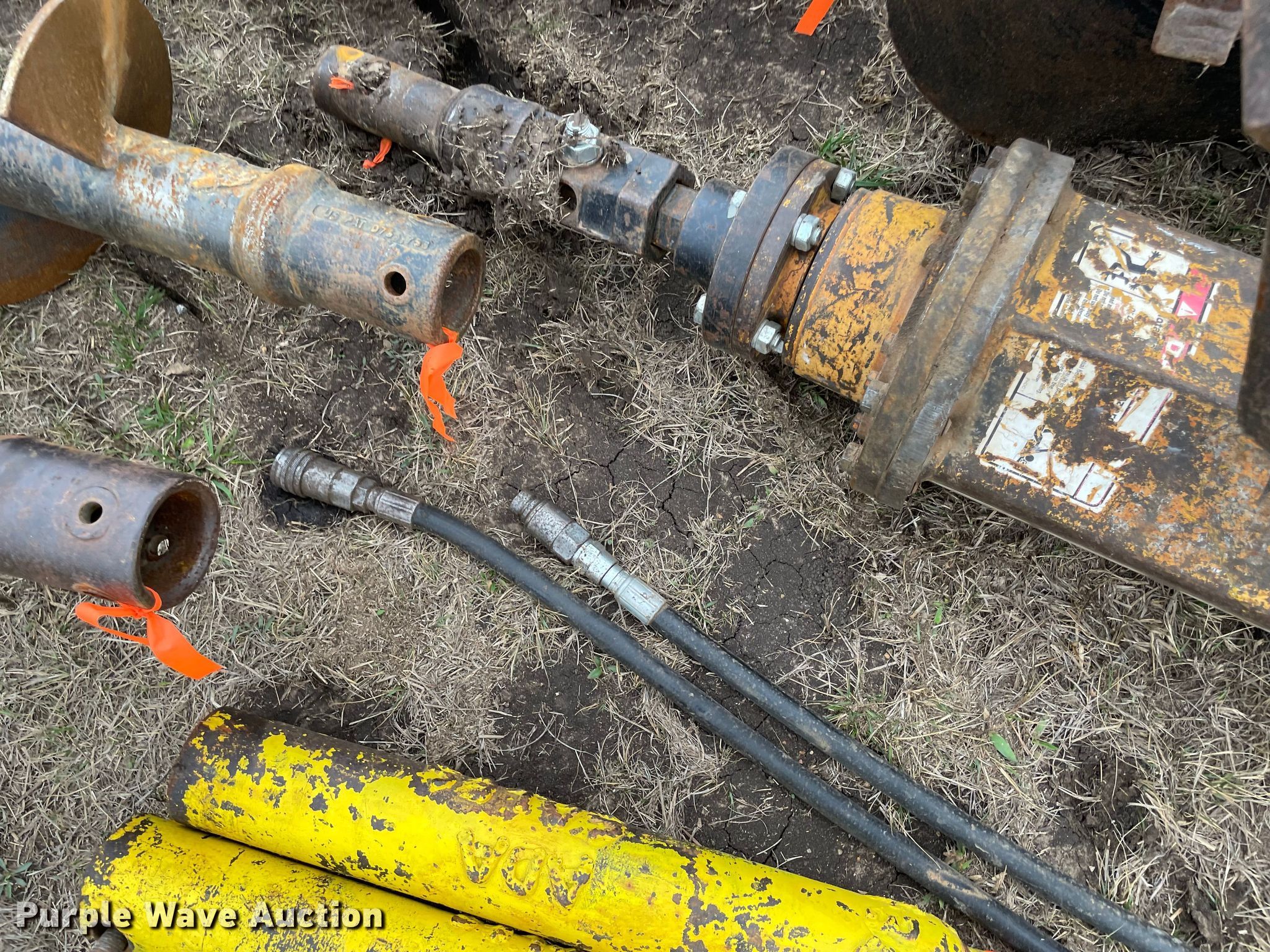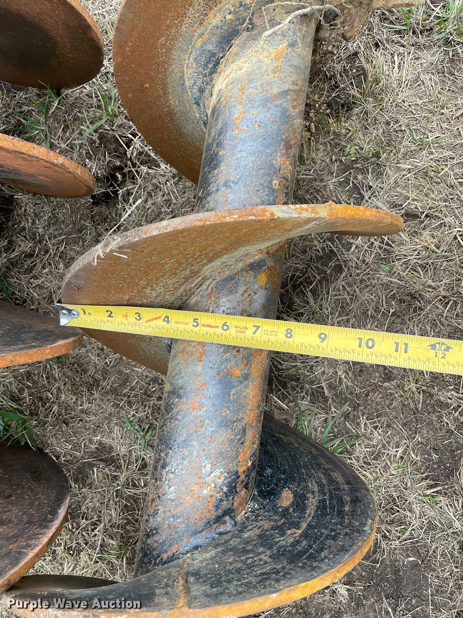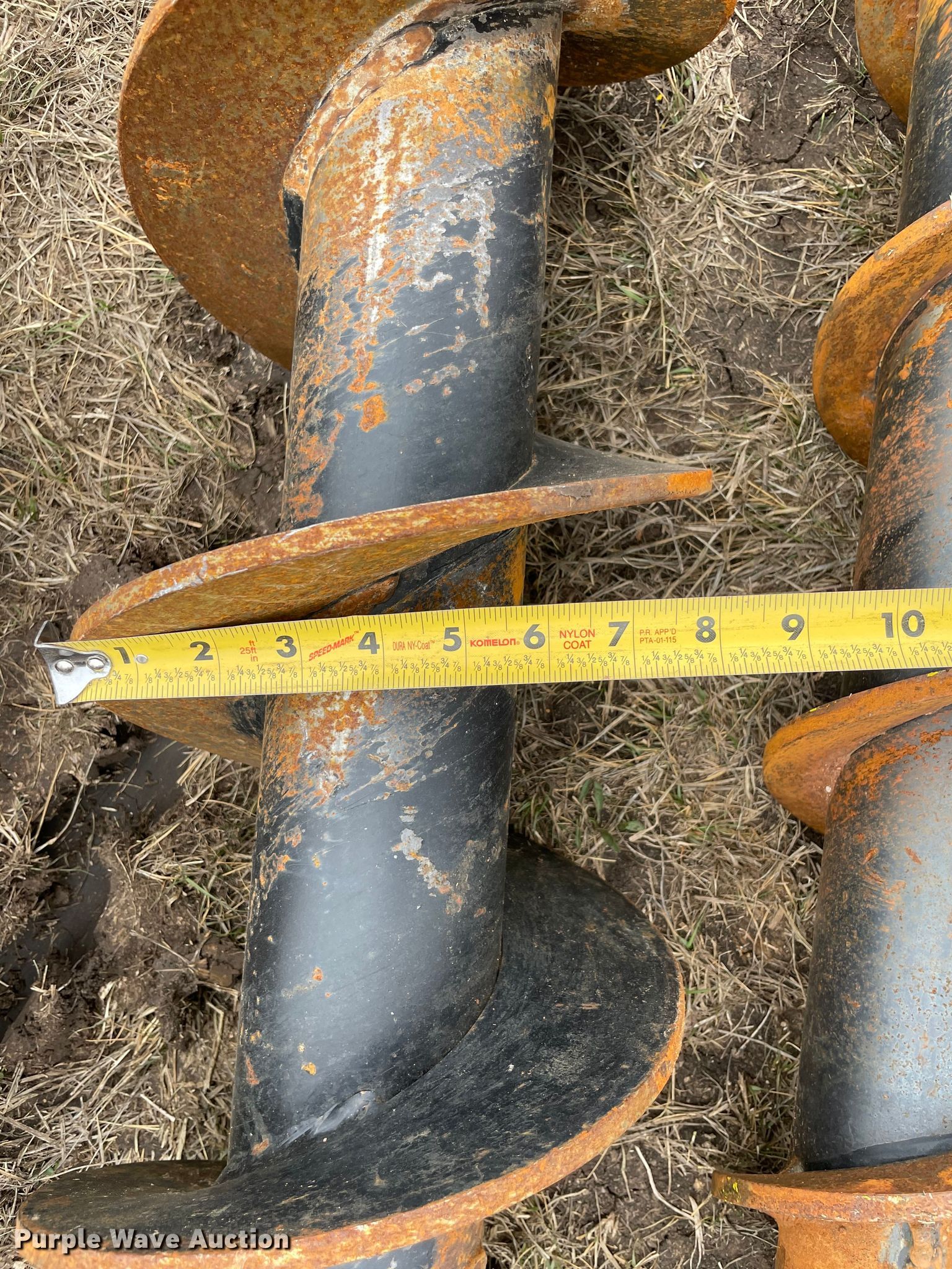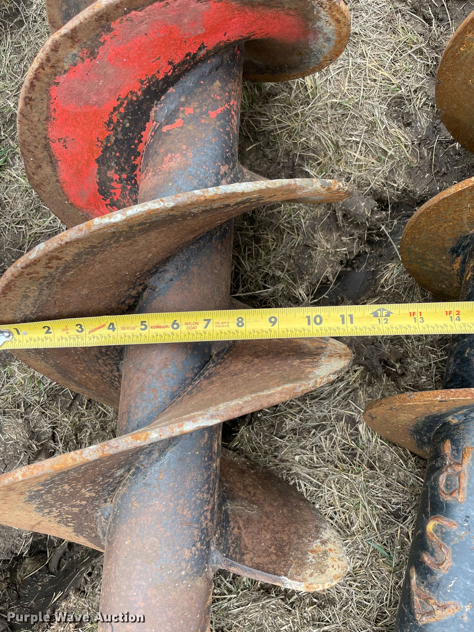 Purple Wave is selling a used Skid Steer Attach. in Oklahoma. This item is a Skid steer auger with the following: (6) auger bits, 6" diameter, 8" diameter, (2) 11" diameter, 15" diameter, 24" diameter, (2) extensions