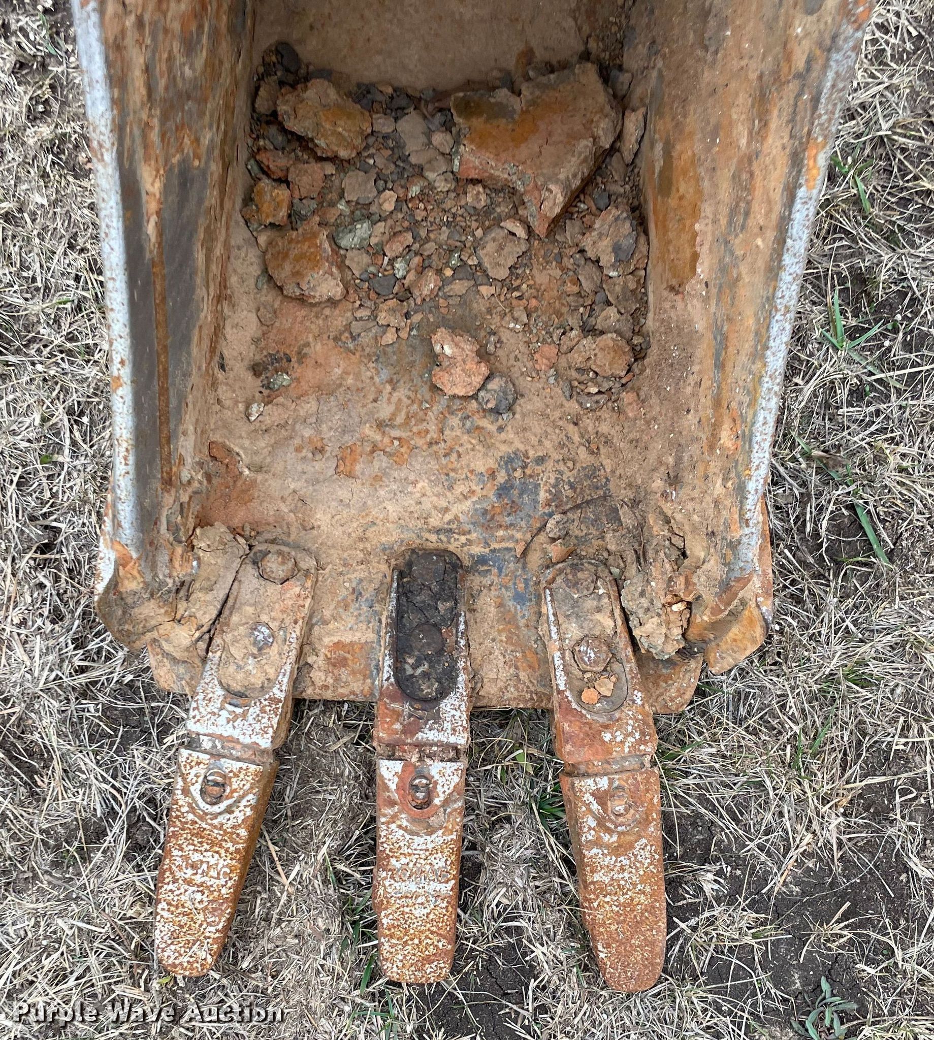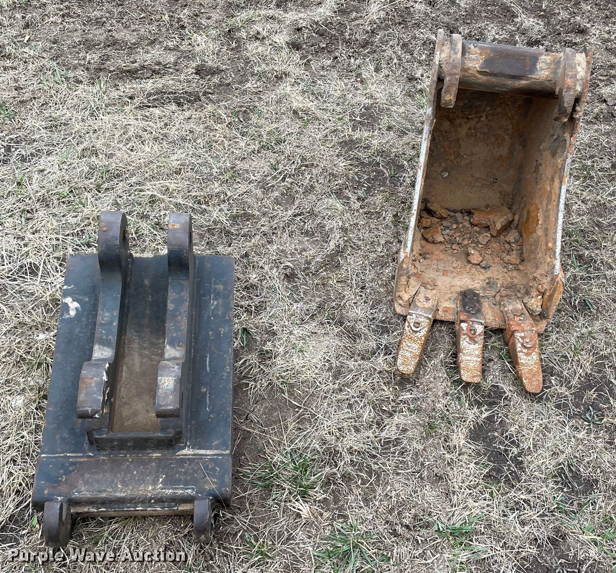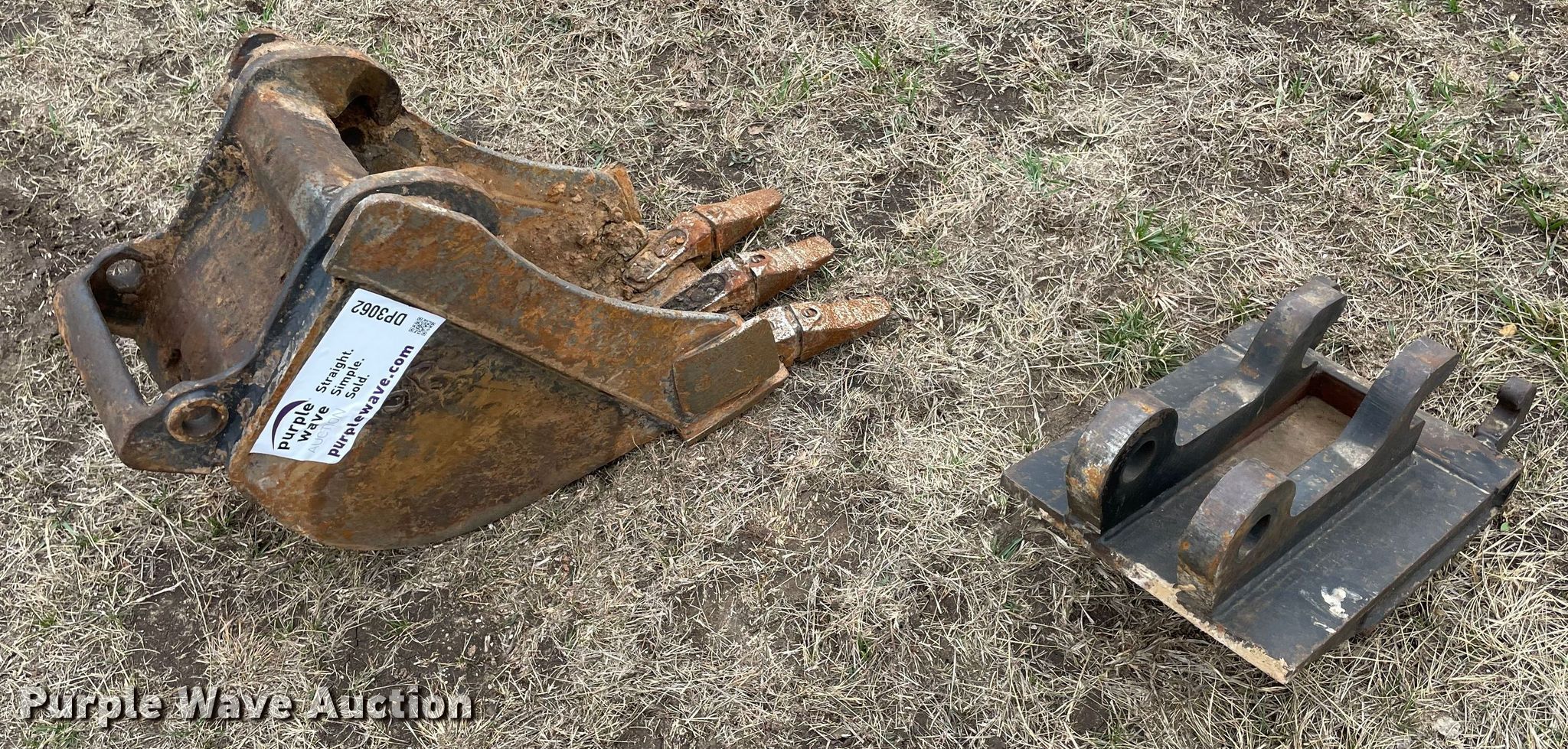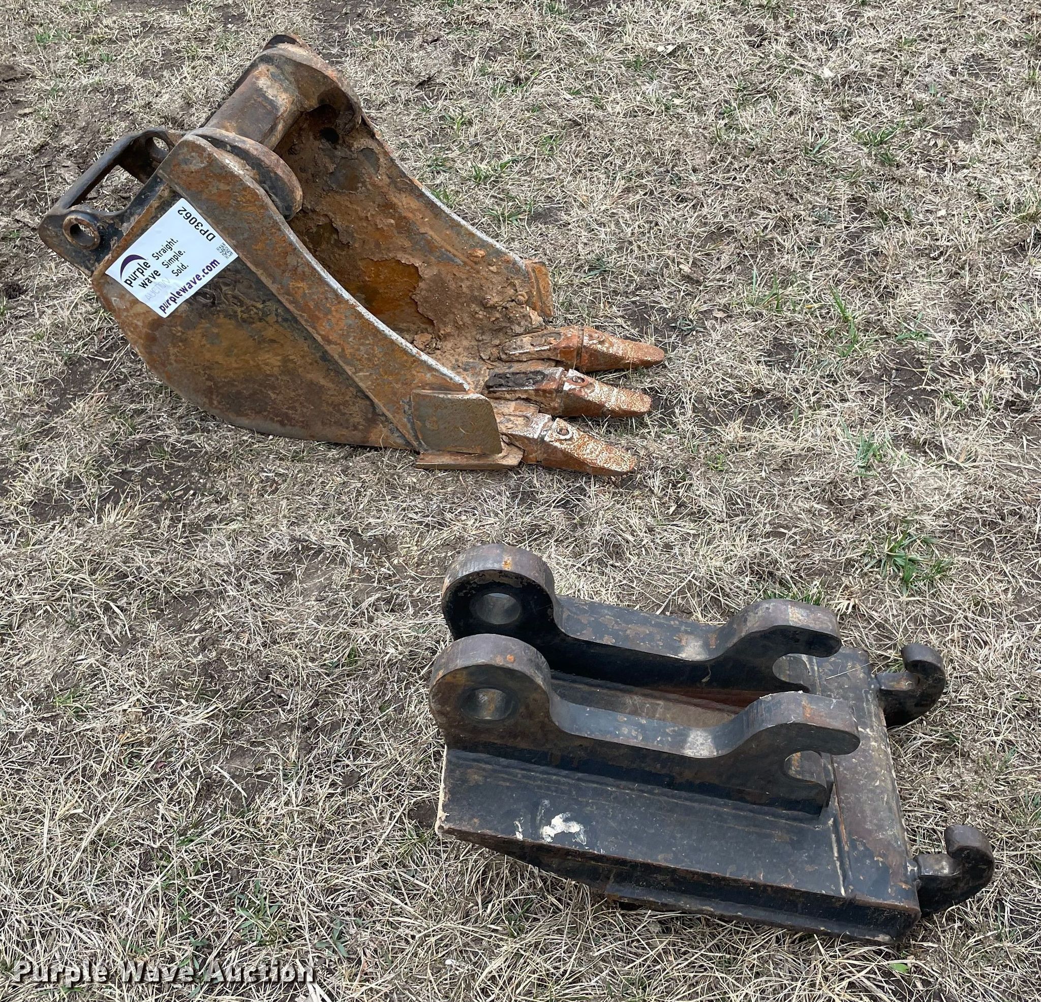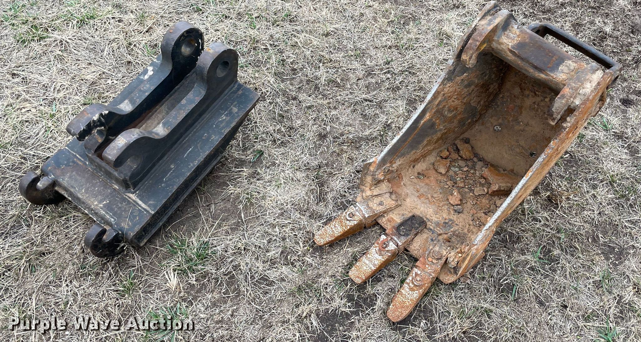 Purple Wave is selling a used Excavator Attach. in Oklahoma. This item is a Excavator bucket with the following: Width: 12", Cutting edge: Bolt-on, Teeth: 3, Quick coupler