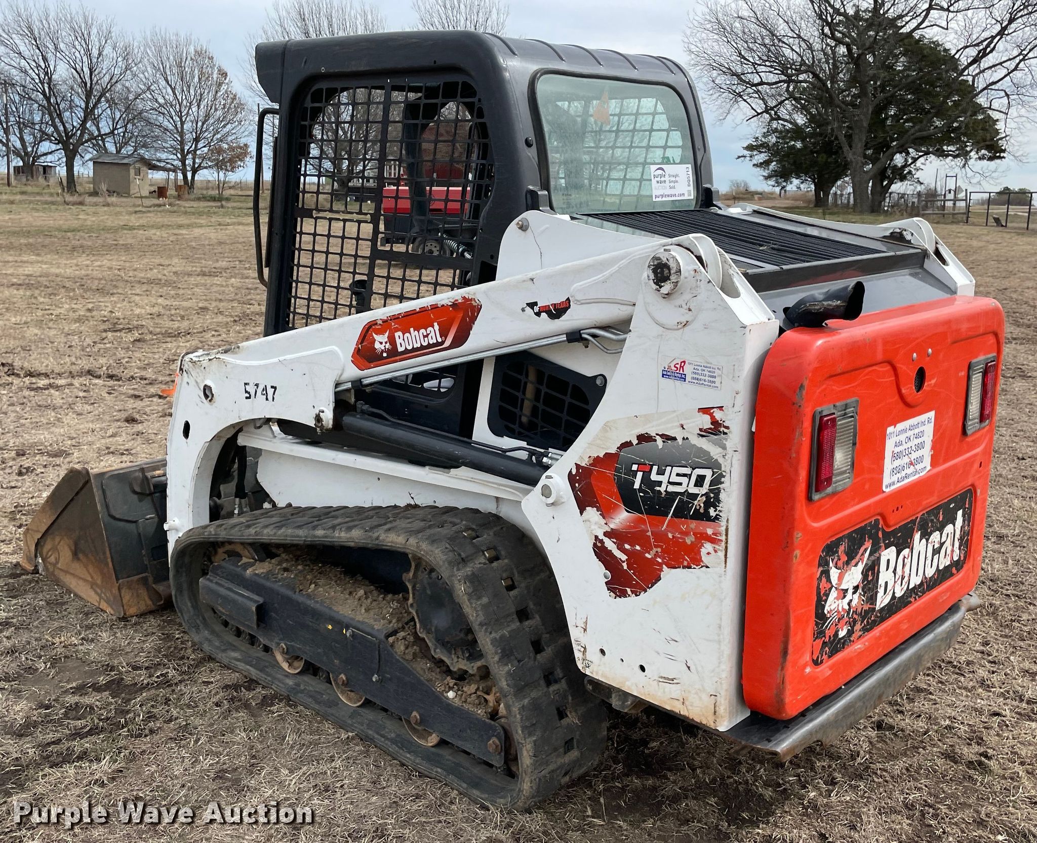 Purple Wave is selling a used Tracked Skid Steer Loader in Oklahoma. This item is a 2021 Bobcat T450 tracked skid steer loader with the following: Hours: 639 on meter, Serial: B4RG11516