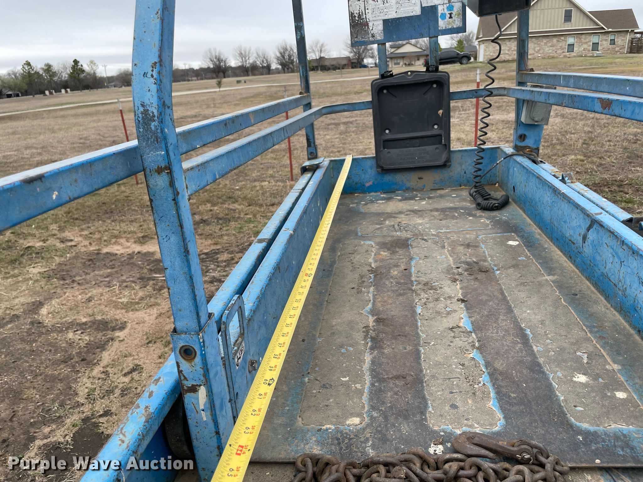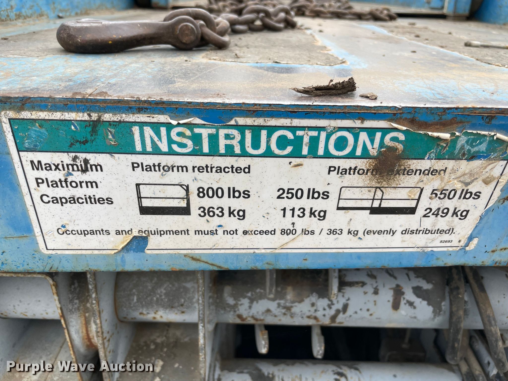 Genie GS-2032 scissor lift. Hours: 418 on meter, Serial: GS3216P144638. Features Maximum lift capacity: 800 lbs, Maximum lift height: 26' 1", Platform: 90" L x 30" W, AC power outlet, Controls: Platform, Ground, Platform extensions: Manual. Tires Tire size: 15x5, Solid. Notes Non-operational unit. Okie Rents - Open Inspection March 25 and March 27. 90 County Road. Davis, OK 73030