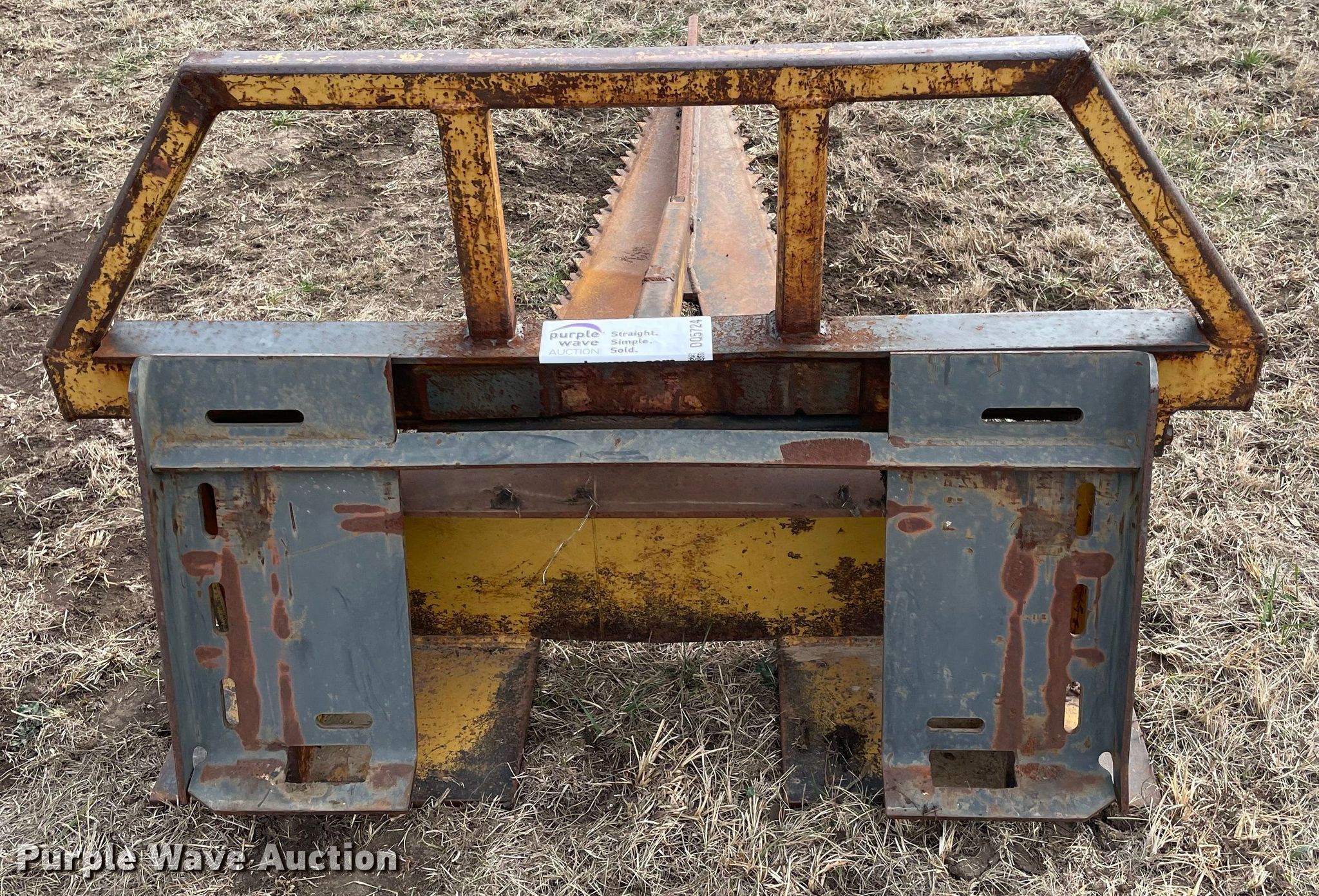 Purple Wave is selling a used Skid Steer Attach. in Oklahoma. This item is a 84" L skid steer tree saw with the following: 84" L skid steer tree saw. Okie Rents - Open Inspection March 25 and March 27. 90 County Road. Davis, OK 73030