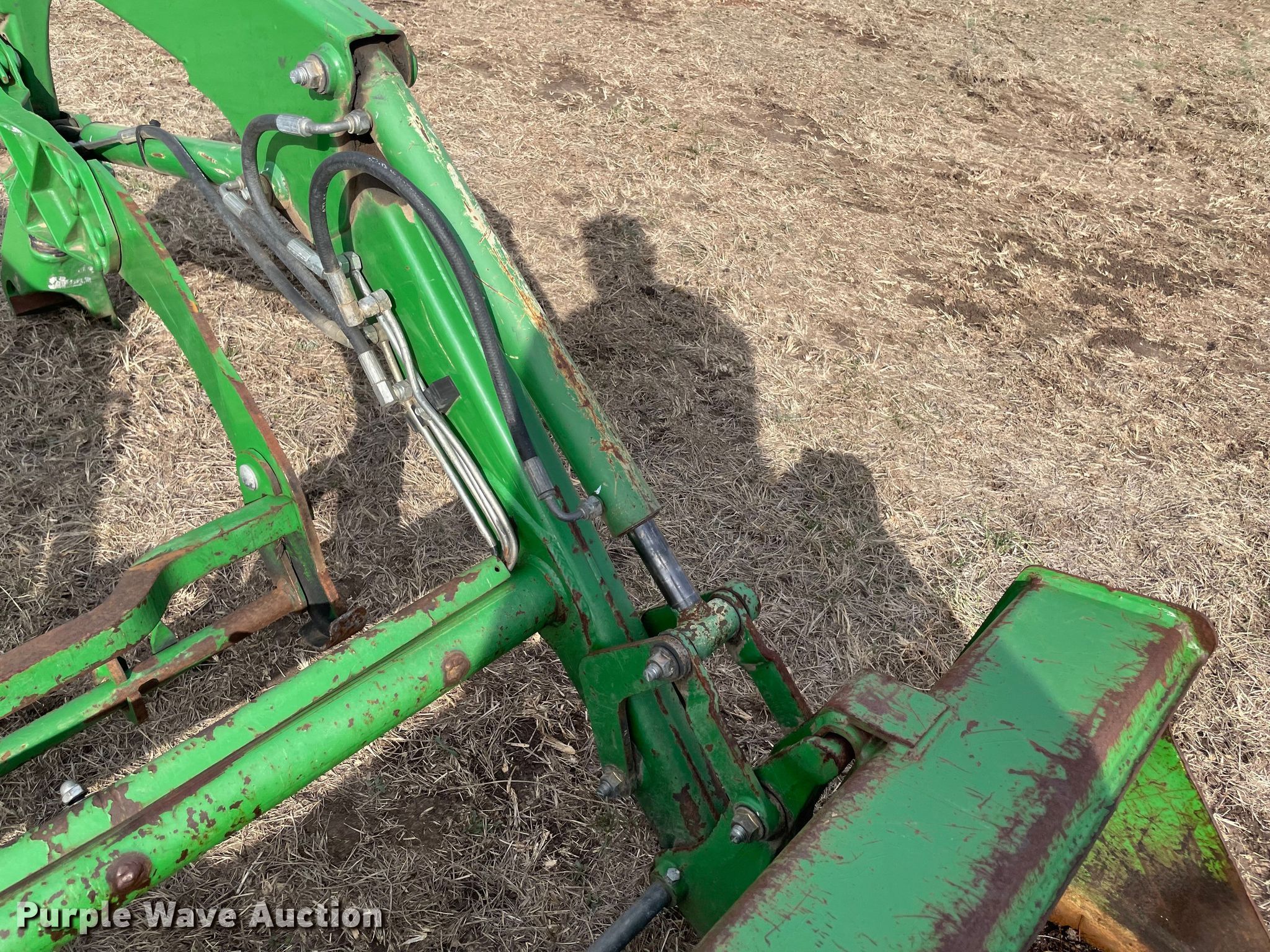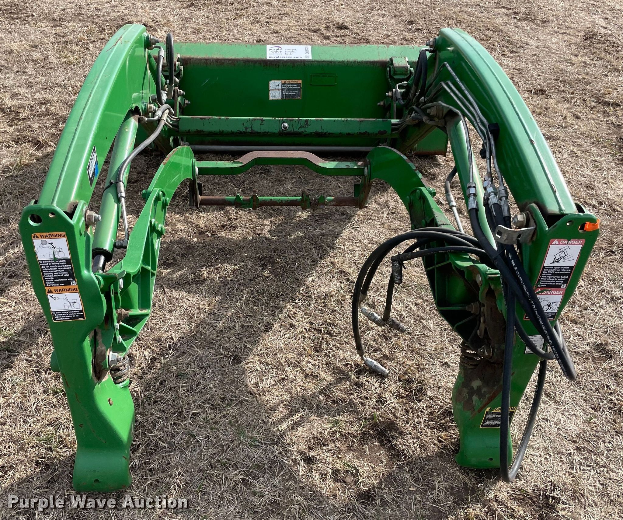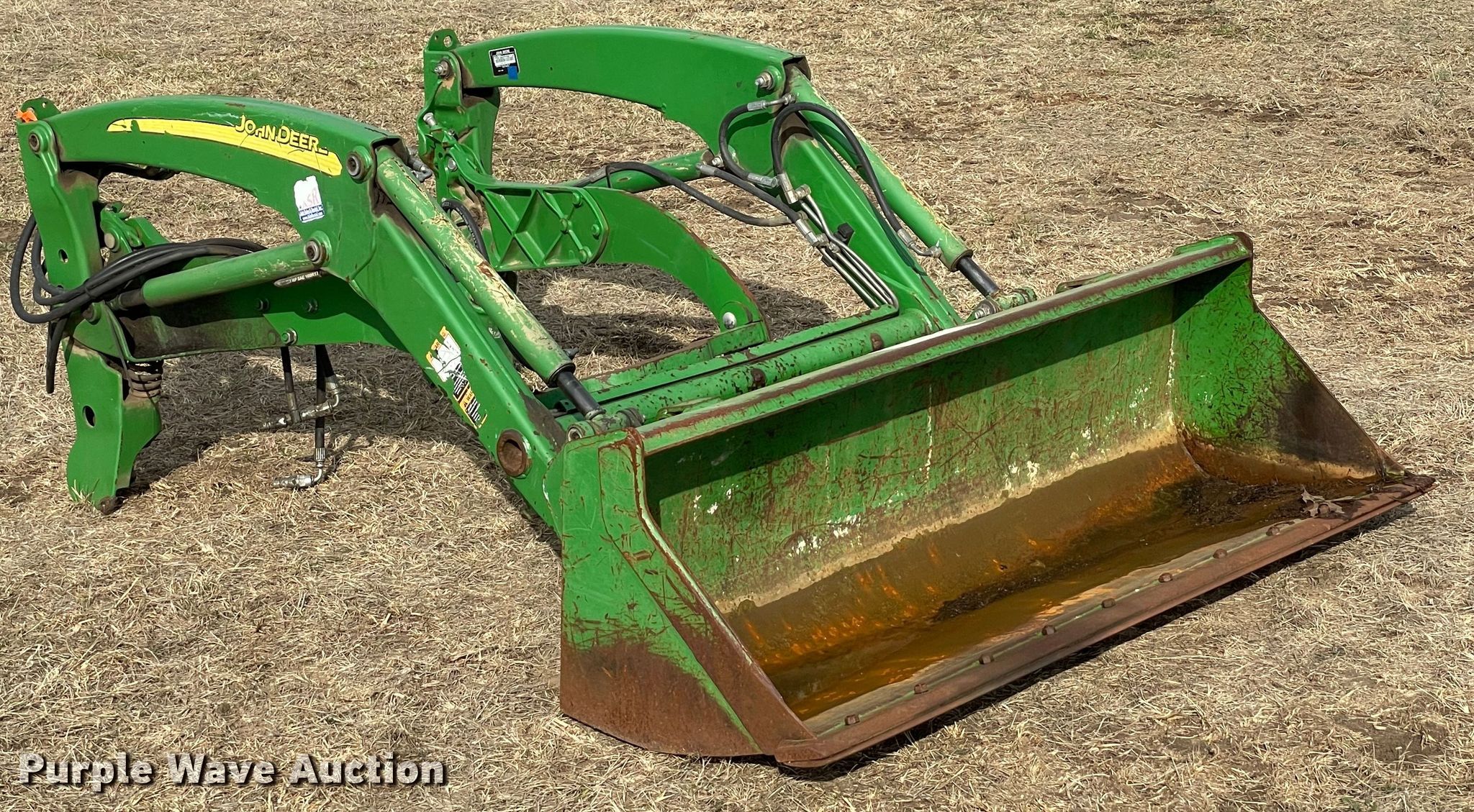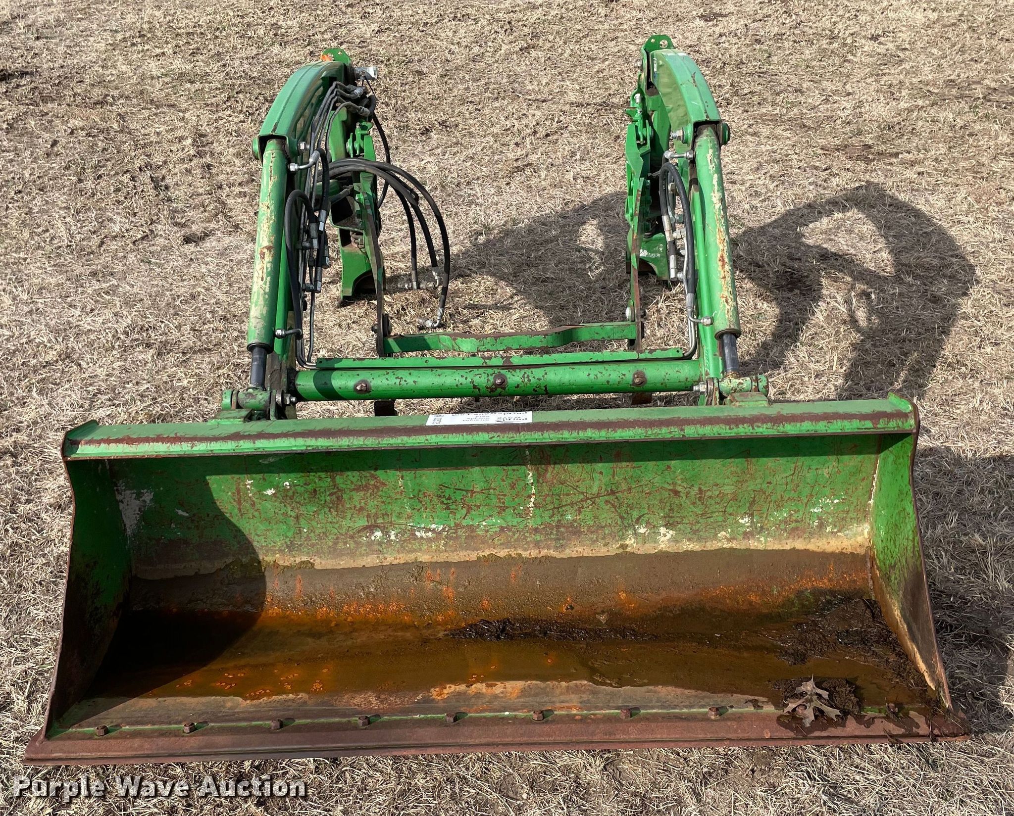 Purple Wave is selling a used Ag Tractor Loader or Attach. in Oklahoma. This item is a 2014 John Deere H165 loader with the following: Serial: 1P0H165XHEX001773, Bucket, Width: 61"