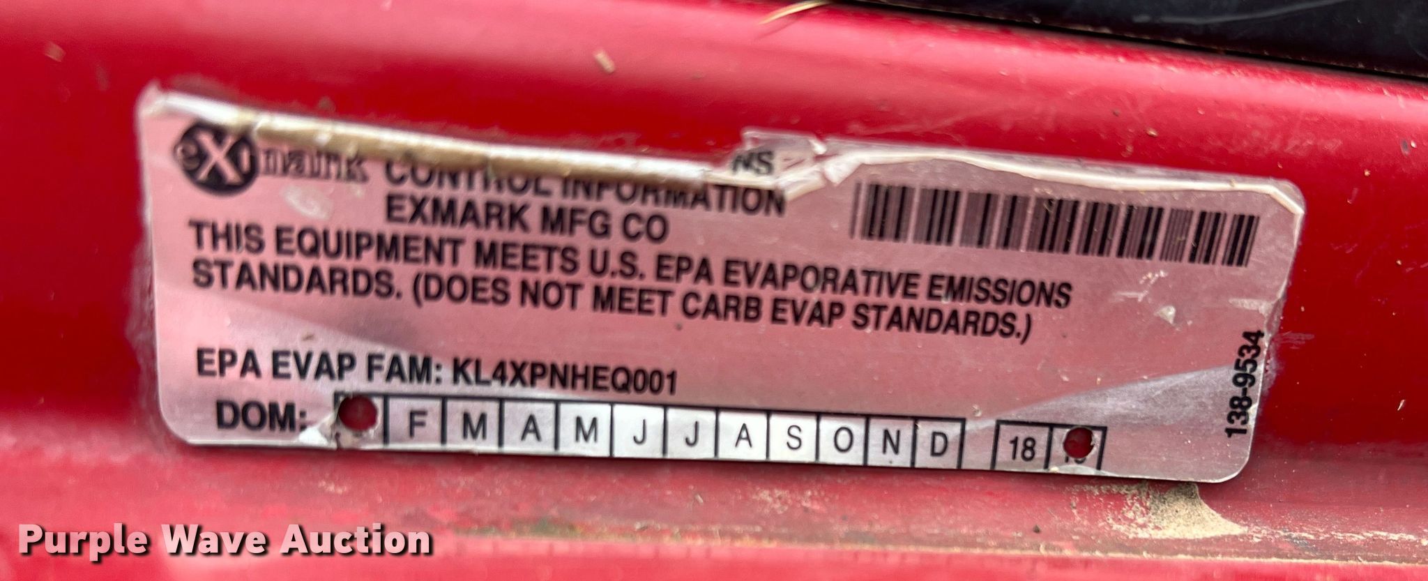 Purple Wave is selling a used Lawn Mower in Oklahoma. This item is a Exmark Lazer Z ZTR lawn mower with the following: Hours: 736 on meter, Cutting width: 54", Serial: 404673213, Unit #: 5617