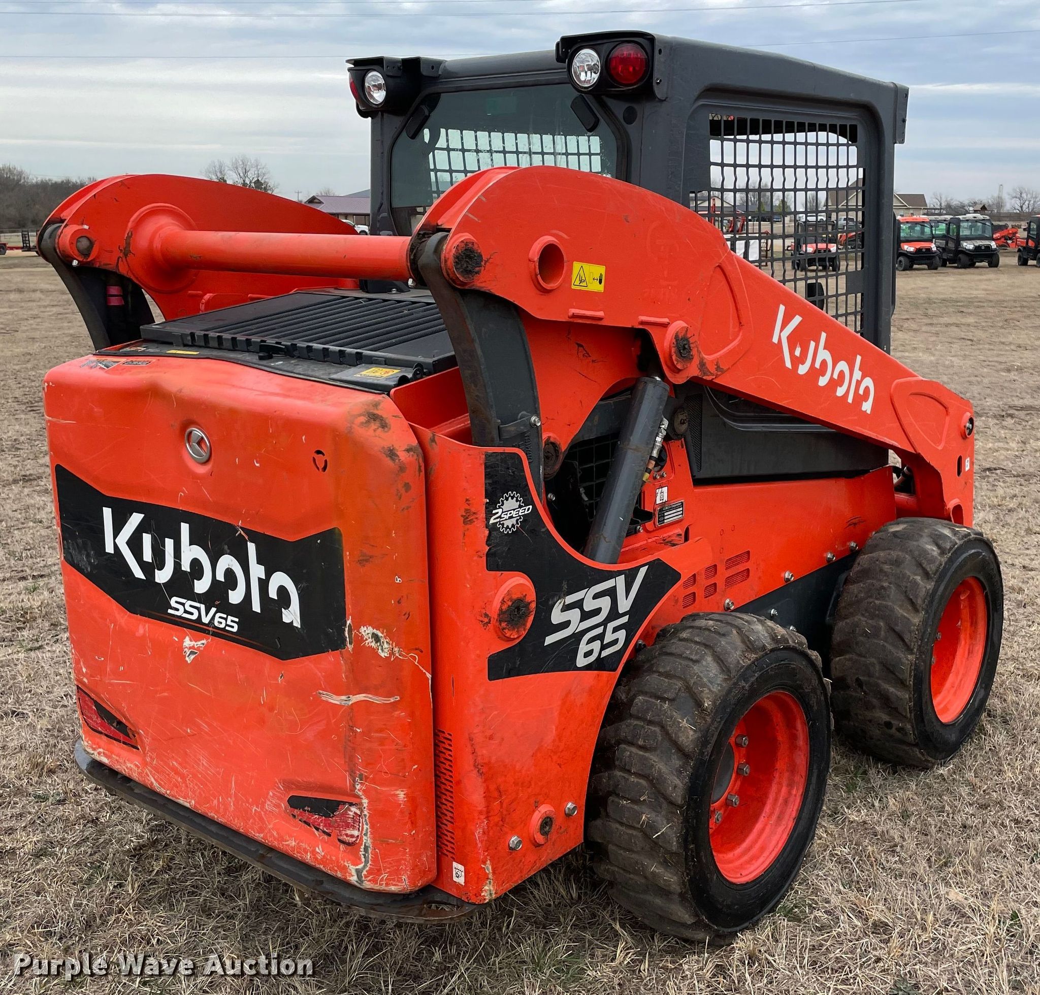 Purple Wave is selling a used Skid Steer Loader in Oklahoma. This item is a Kubota SSV65 skid steer loader with the following: Hours: 255 on meter, Serial: KBCZ131CAL3K53691