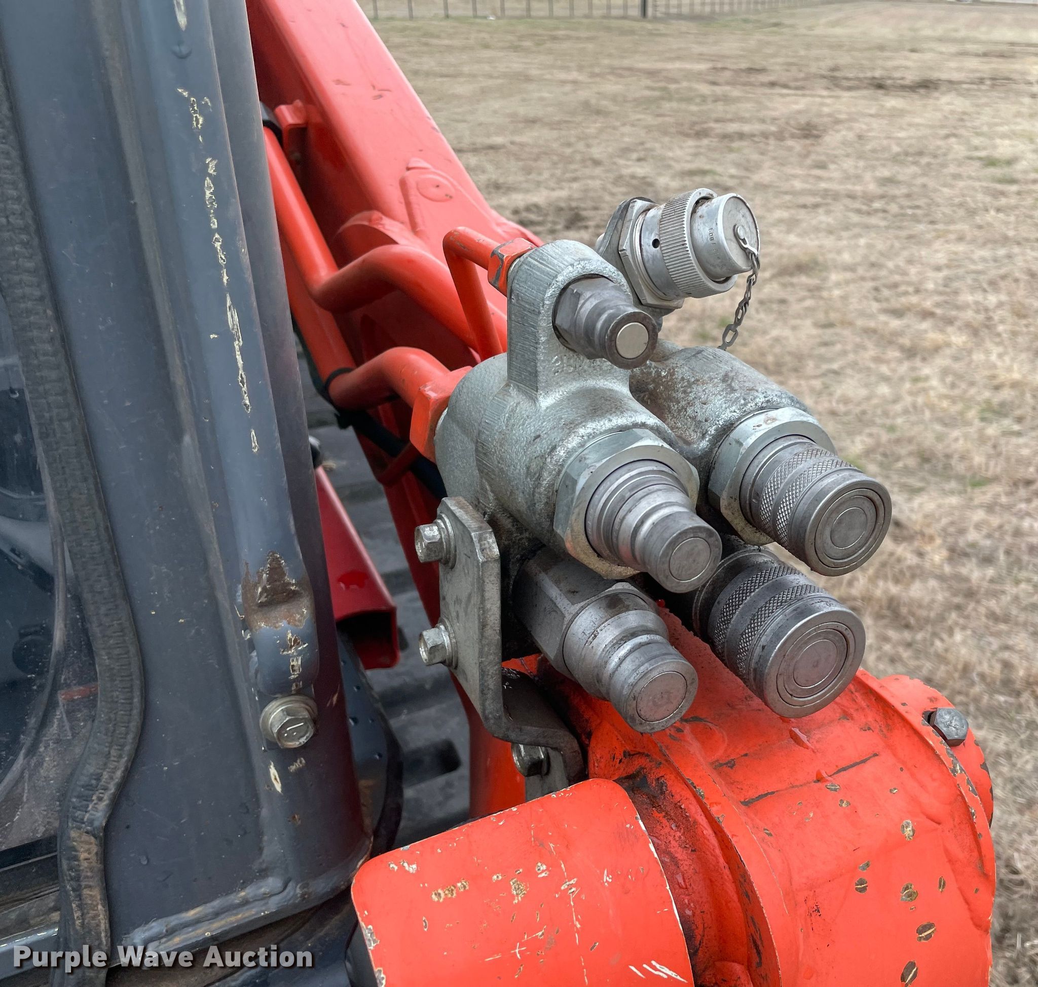 2020 Kubota SVL95-2S tracked skid steer loader. Hours: 739 on meter, Serial: KBCZ063CPL1E51289. Engine Displacement: 3.8L, Cylinders: 4, Fuel type: Diesel. Transmission Hydrostatic. Operators station Enclosed cab, AC, Heat, Bucket control: Hand. Features Auxiliary hydraulics, Auxiliary electrical outlet, Quick coupler: Hydraulic. Tracks Width: 17". Okie Rents - Open Inspection March 25 and March 27. 90 County Road. Davis, OK 73030
