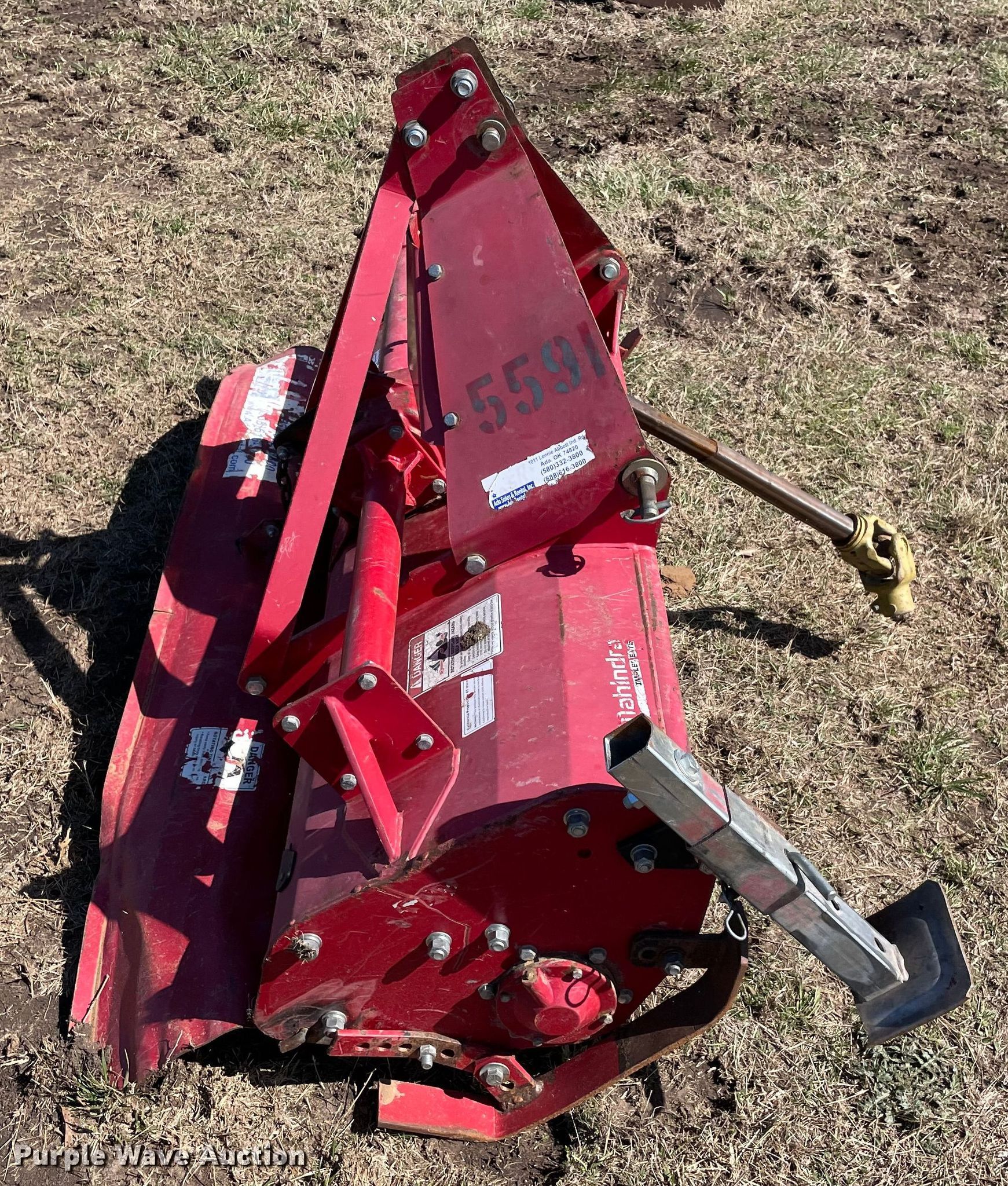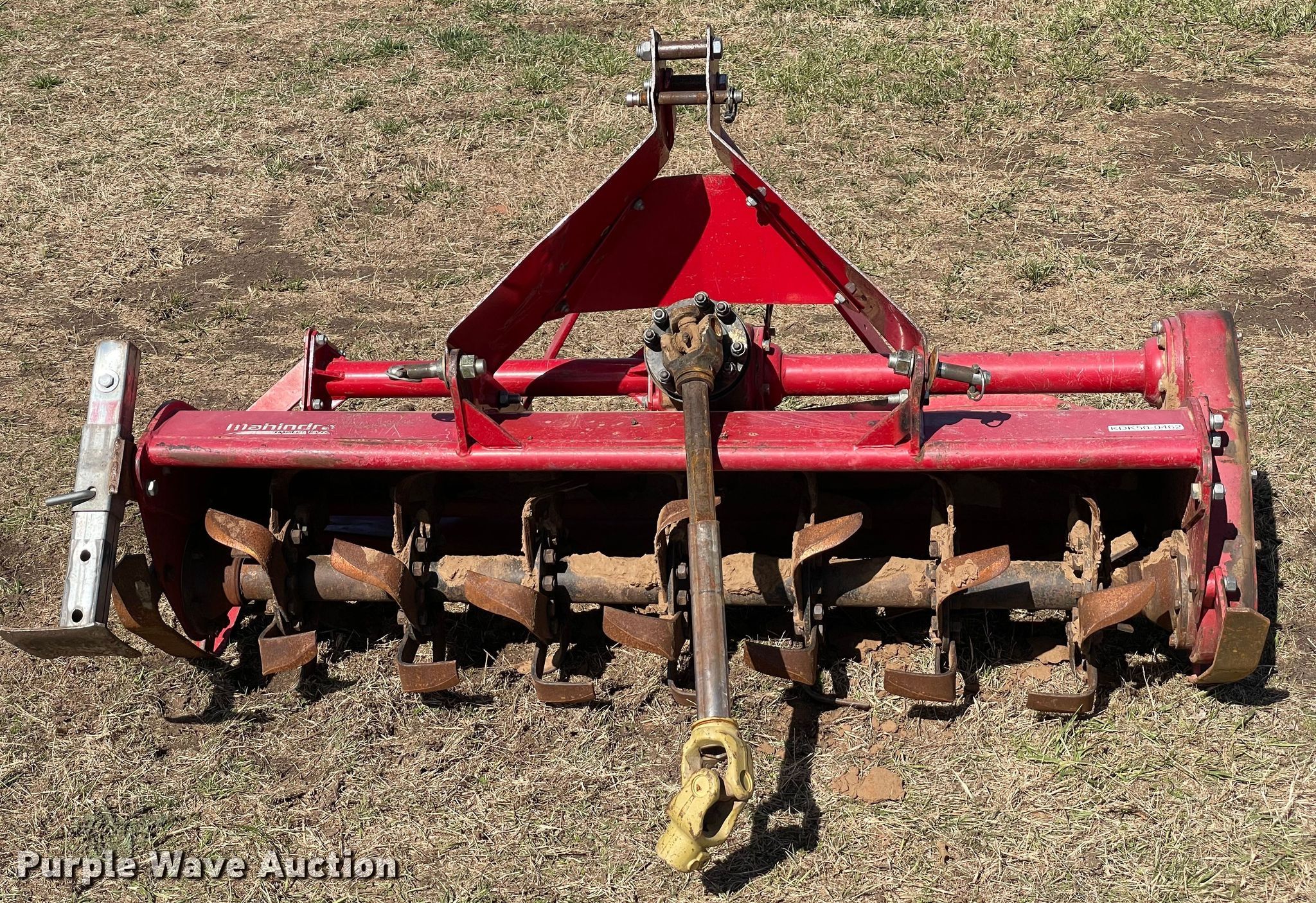 Purple Wave is selling a used Rotary Tillage in Oklahoma. This item is a Mahindra tiller with the following: Overall width: 5', Serial: KDK50-0462