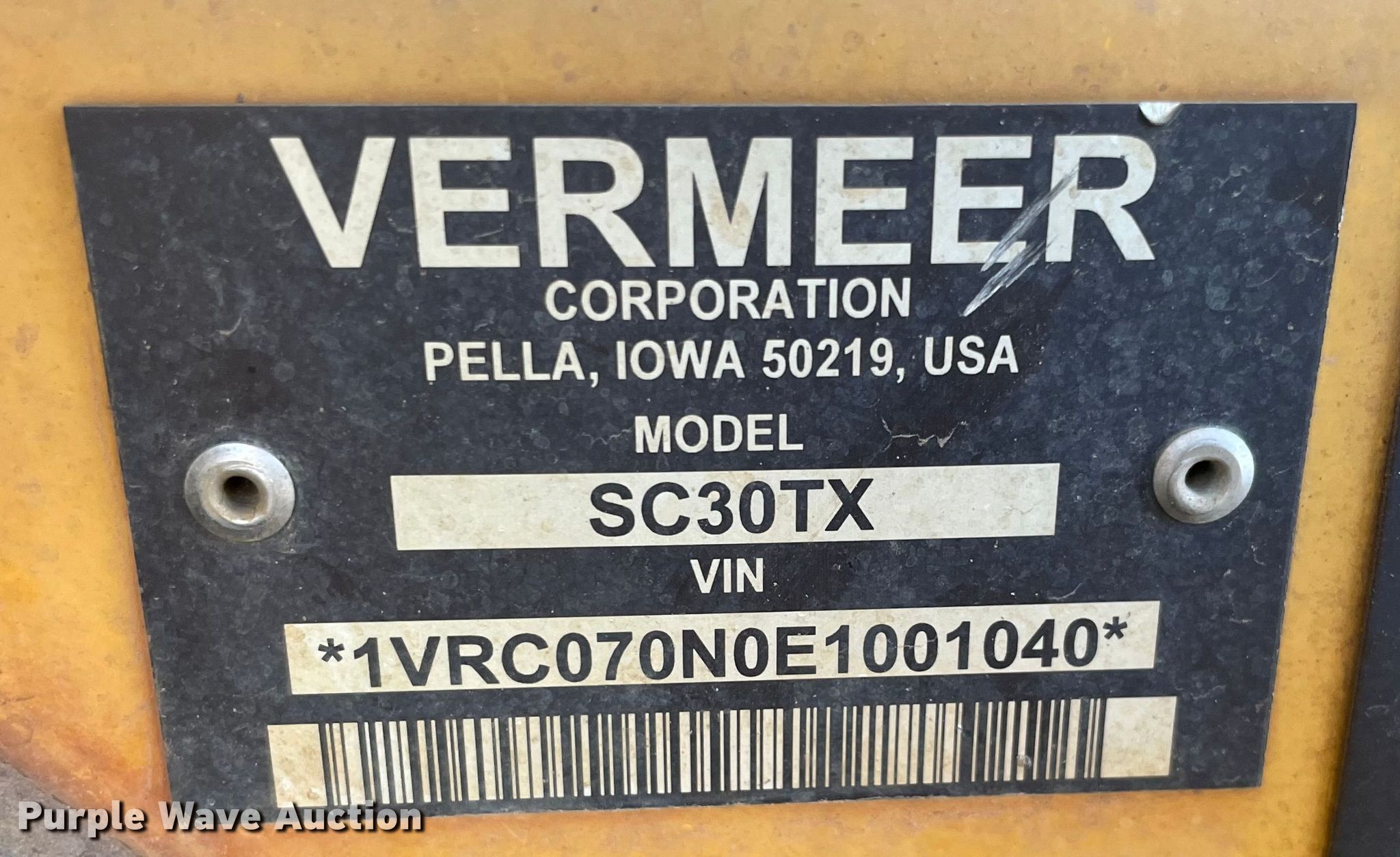 Purple Wave is selling a used Wood Chipper or Stump Grinder in Oklahoma. This item is a 2015 Vermeer SC30TX stump grinder with the following: Hours: 344 on meter, Serial: 1VRC070N0E1001040