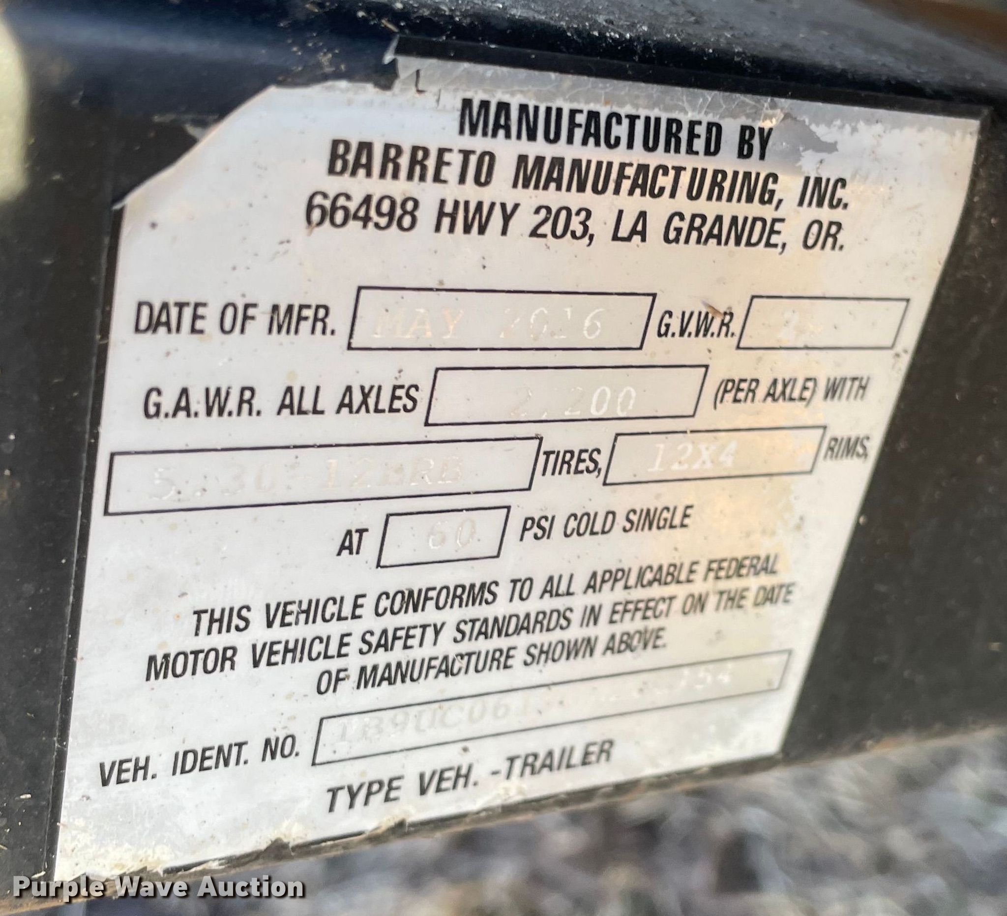 2015 Vermeer SC30TX stump grinder. Hours: 344 on meter, Serial: 1VRC070N0E1001040. Engine Kohler, Displacement: 747 cc, Cylinders: 1, Fuel type: Gas, HP: 25. Transmission Hydrostatic. Features Cutting head diameter: 20" Bolt-on teeth. Tracks Width: 7", Rubber. 2016 Barretto trailer. Dimensions Overall: 11' L x 67" W. Features Deck type: Wood. Chassis Ball hitch: 2", Landing gear: Single, Suspension: Spring, GAWR: 2,200 lbs. Tires Size: 5.30-12. Transfer of ownership documentation will be a bill of sale. Okie Rents - Open Inspection March 25 and March 27. 90 County Road. Davis, OK 73030