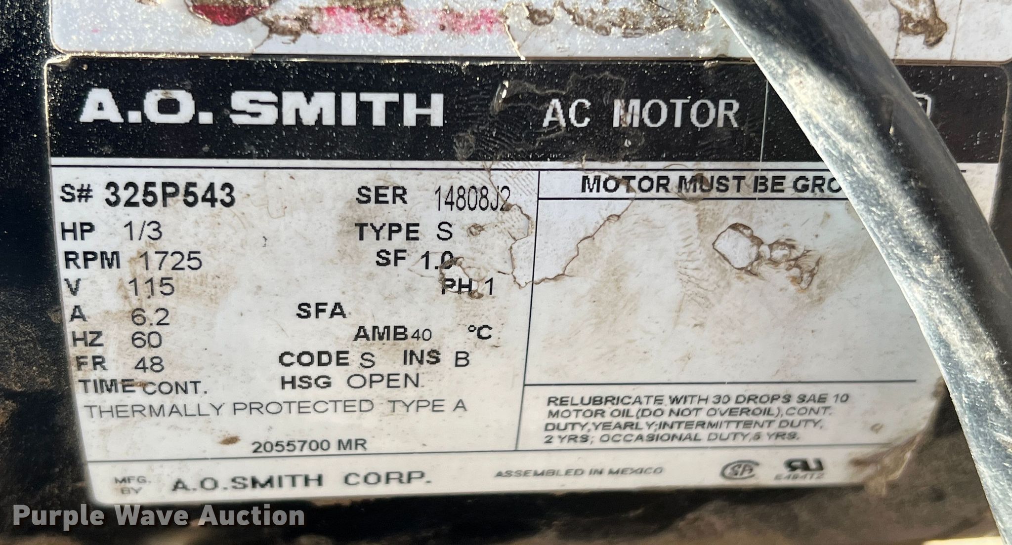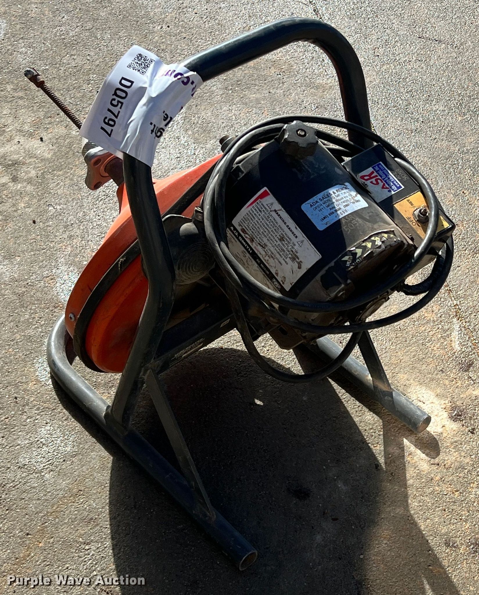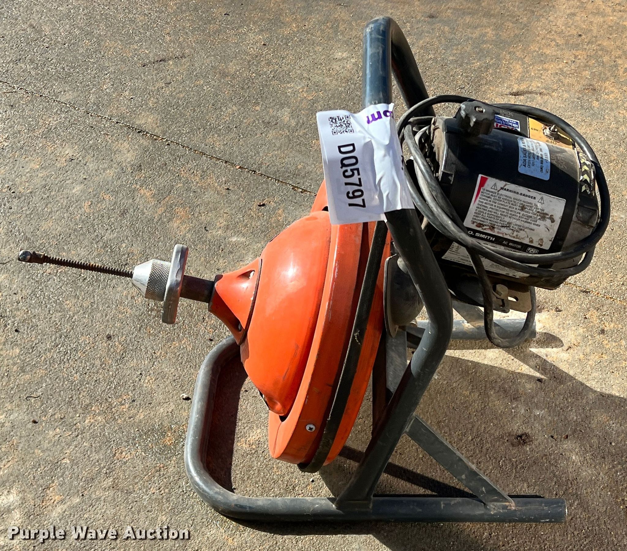 Purple Wave is selling a used Tools in Oklahoma. This item is a A.O. Smith drain snake with the following: Single phase, 0.3 HP, Serial: 14808J2