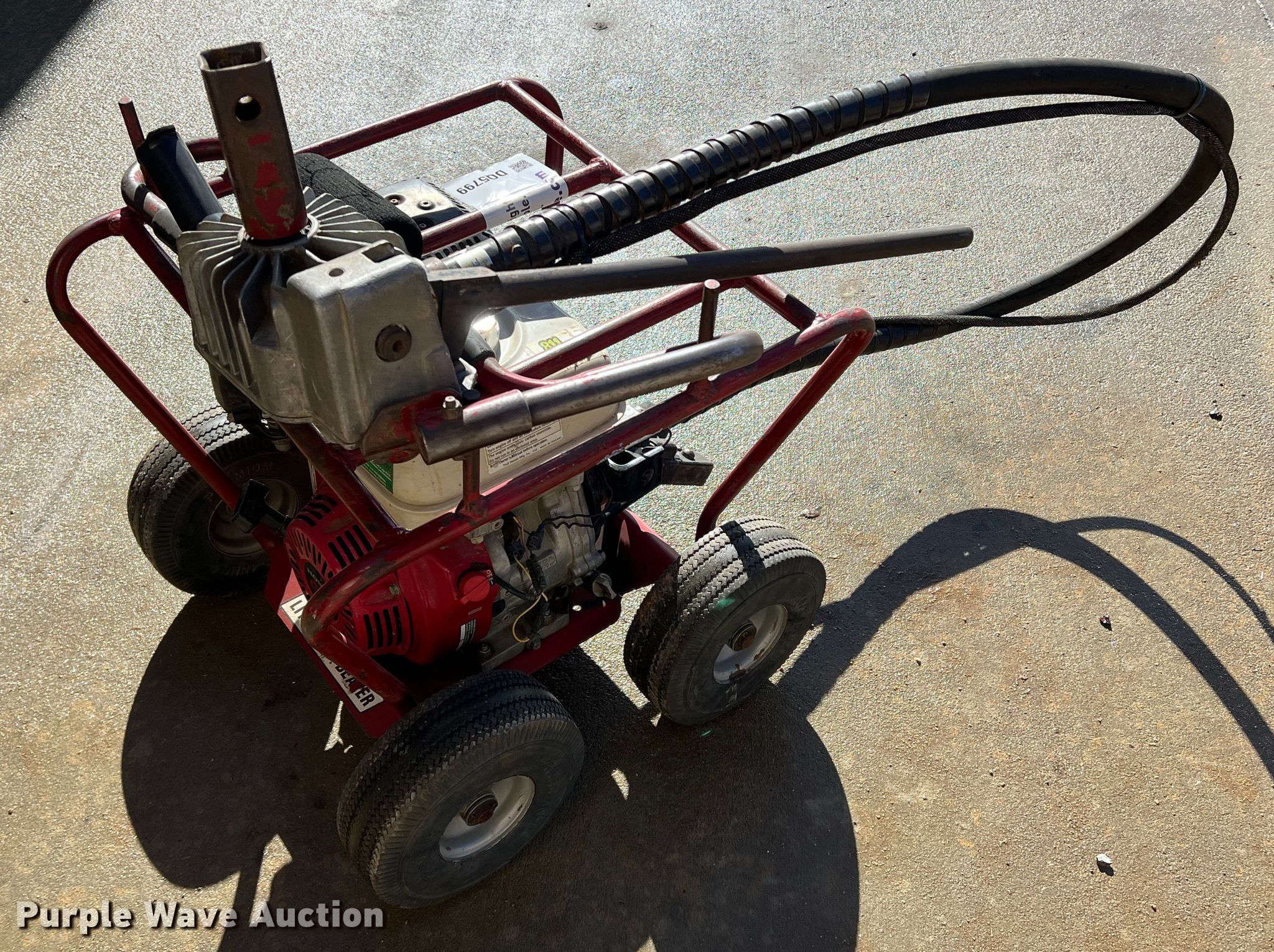 Purple Wave is selling a used Auger or Drill in Oklahoma. This item is a Little Beaver 8 auger with the following: Serial: 036174, Honda GX240 gas engine, Cylinders: 1, Tires: 10/3.50-4