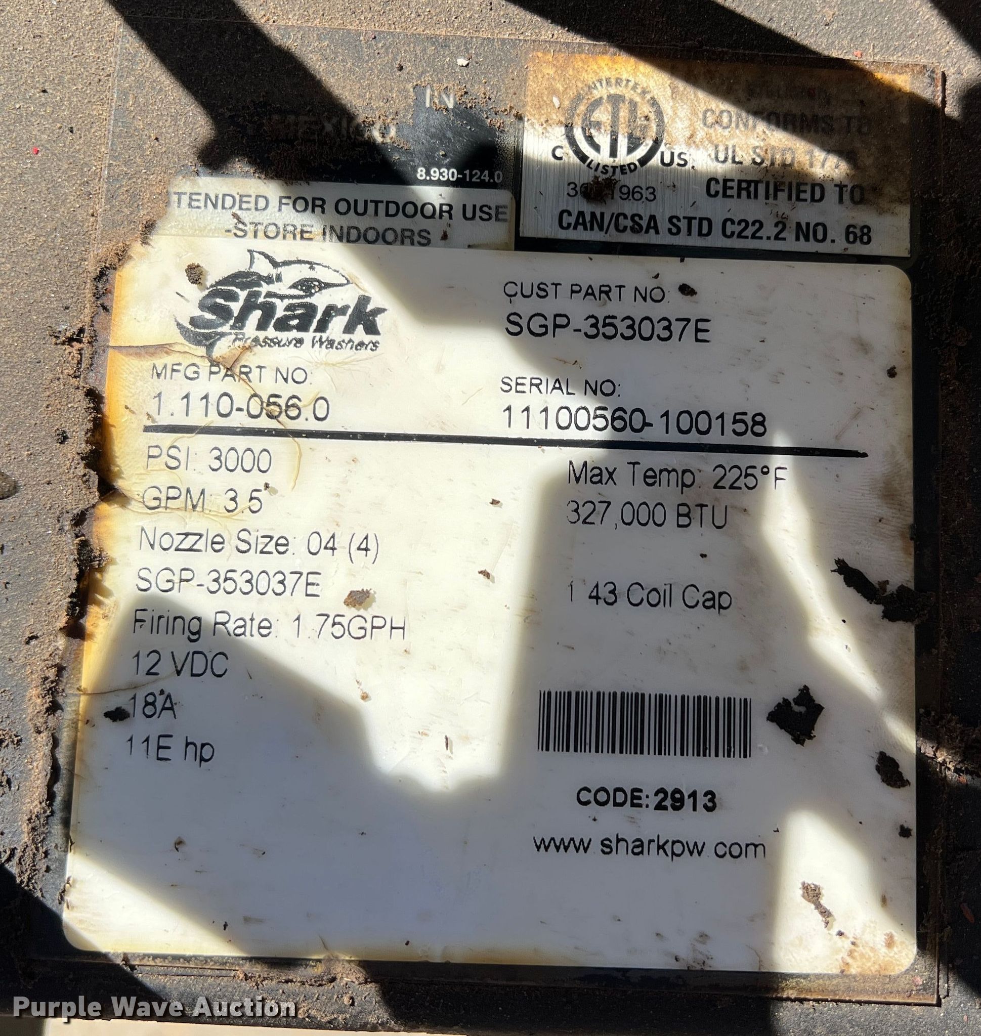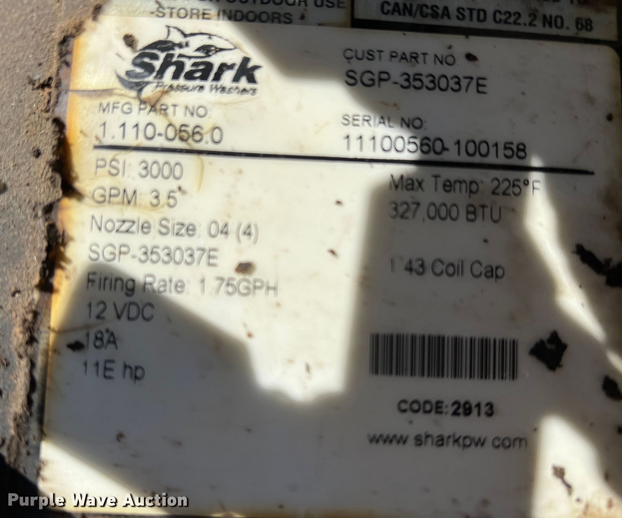 Purple Wave is selling a used Pressure Washer in Oklahoma. This item is a Shark pressure washer with the following: Hours: 592 on meter, Serial: 11100560-100158