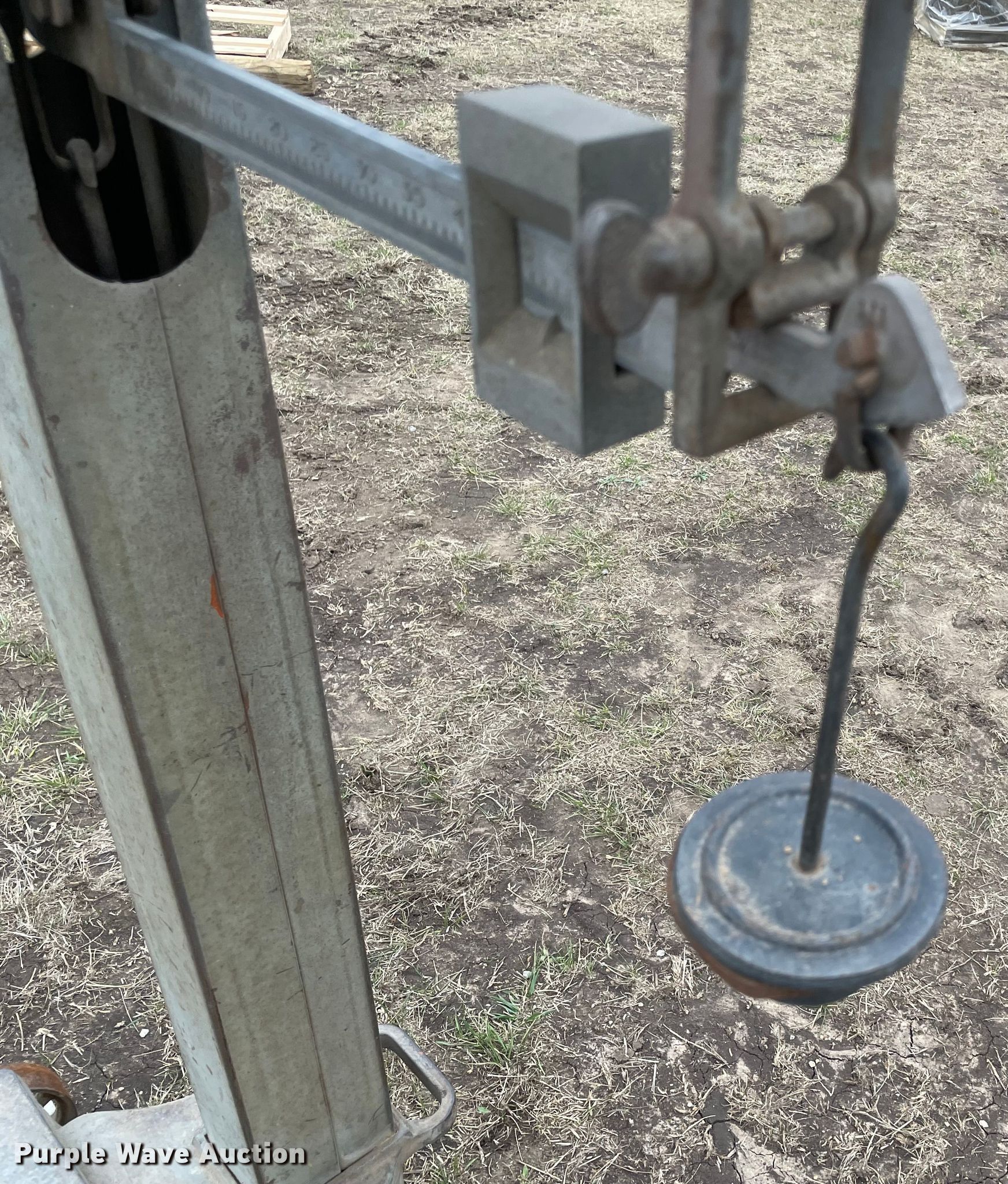 Purple Wave is selling a used Tools in Oklahoma. This item is a Fairbanks scale with the following: Counter weights, 200 lbs, (3) 100 lbs, 50 lbs