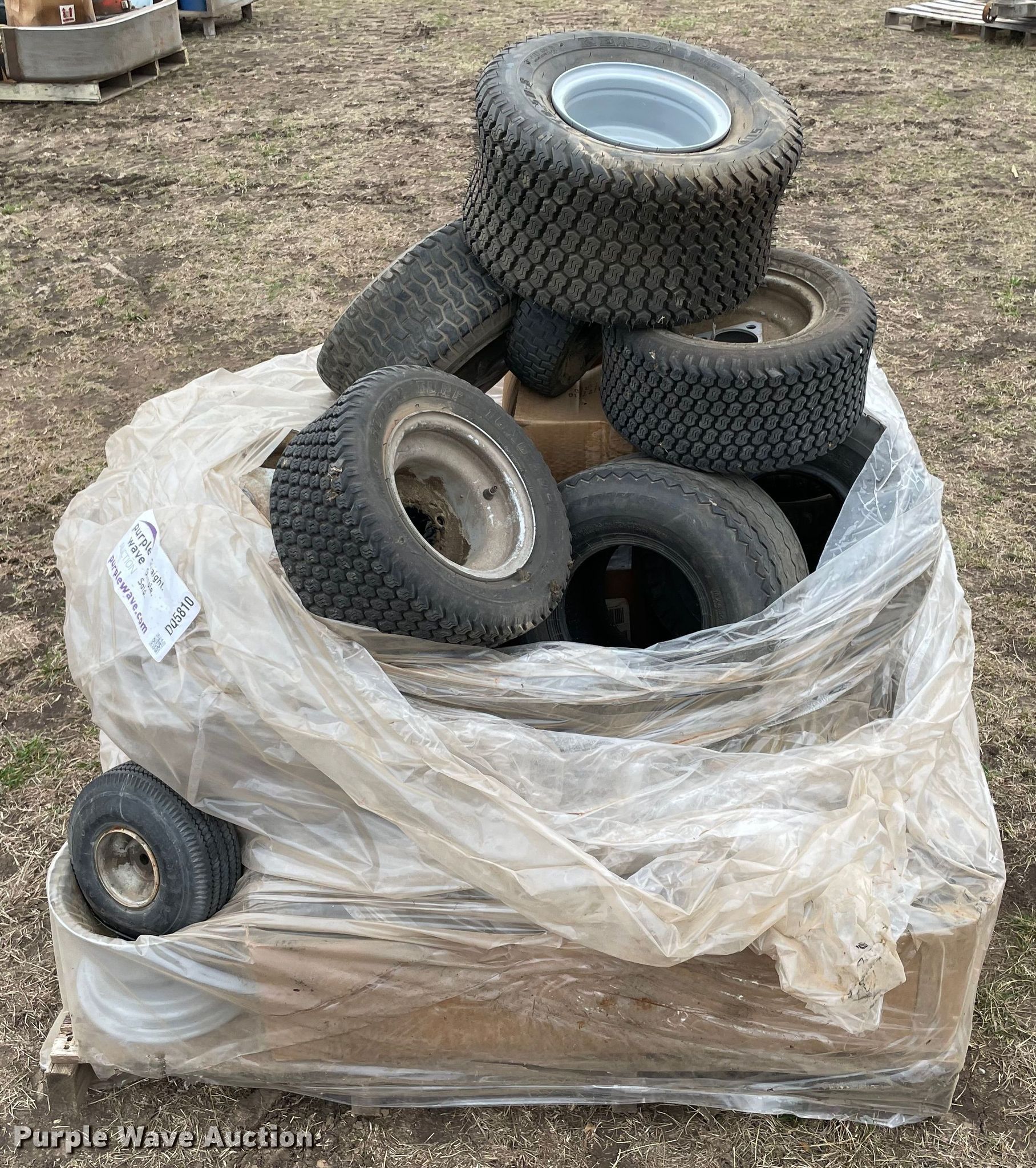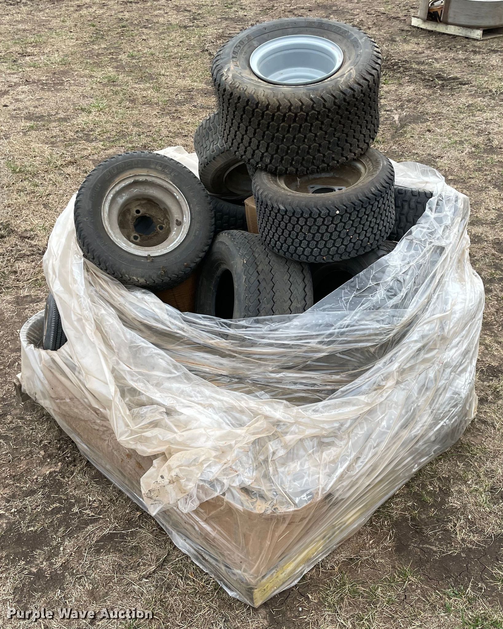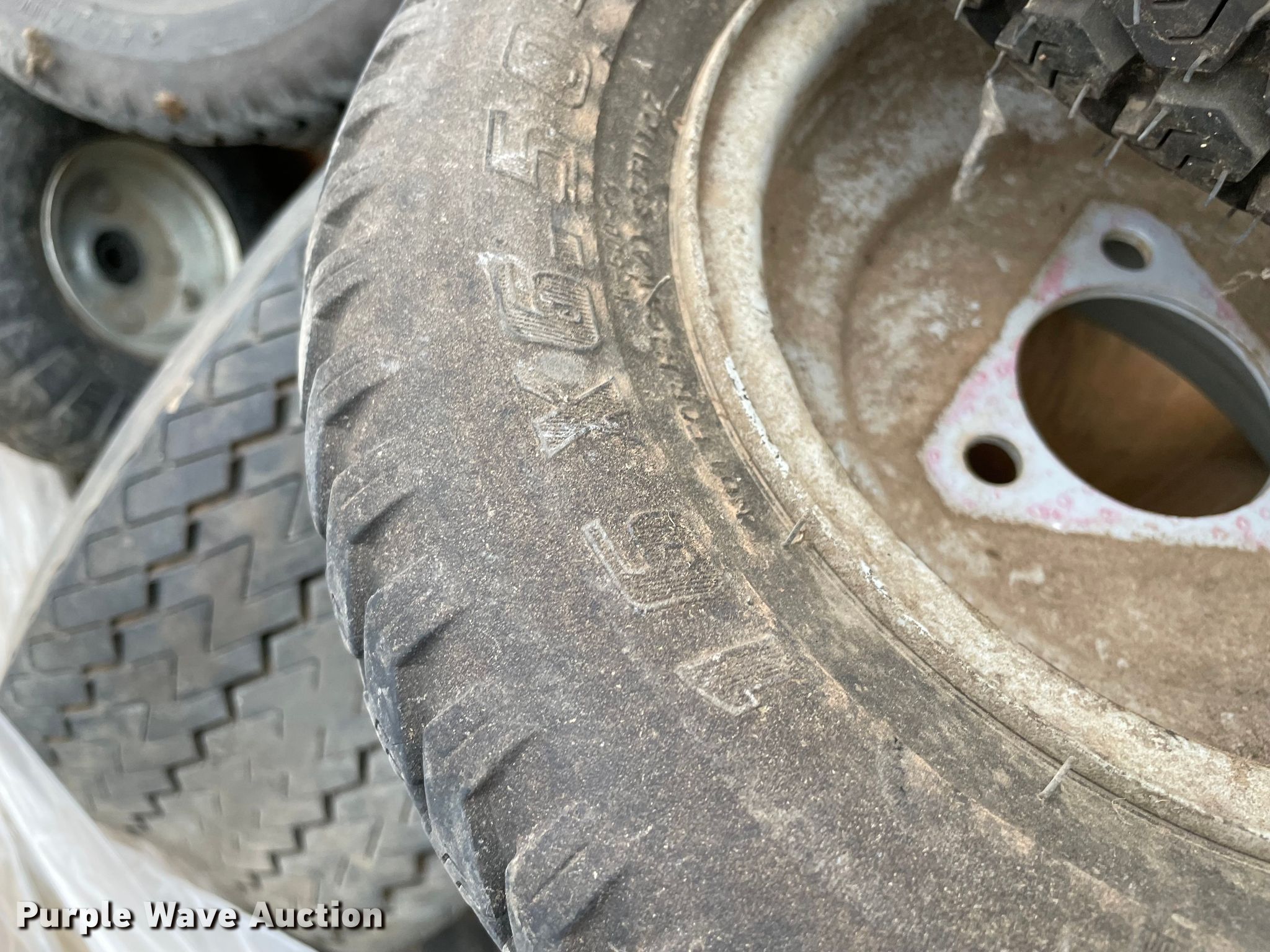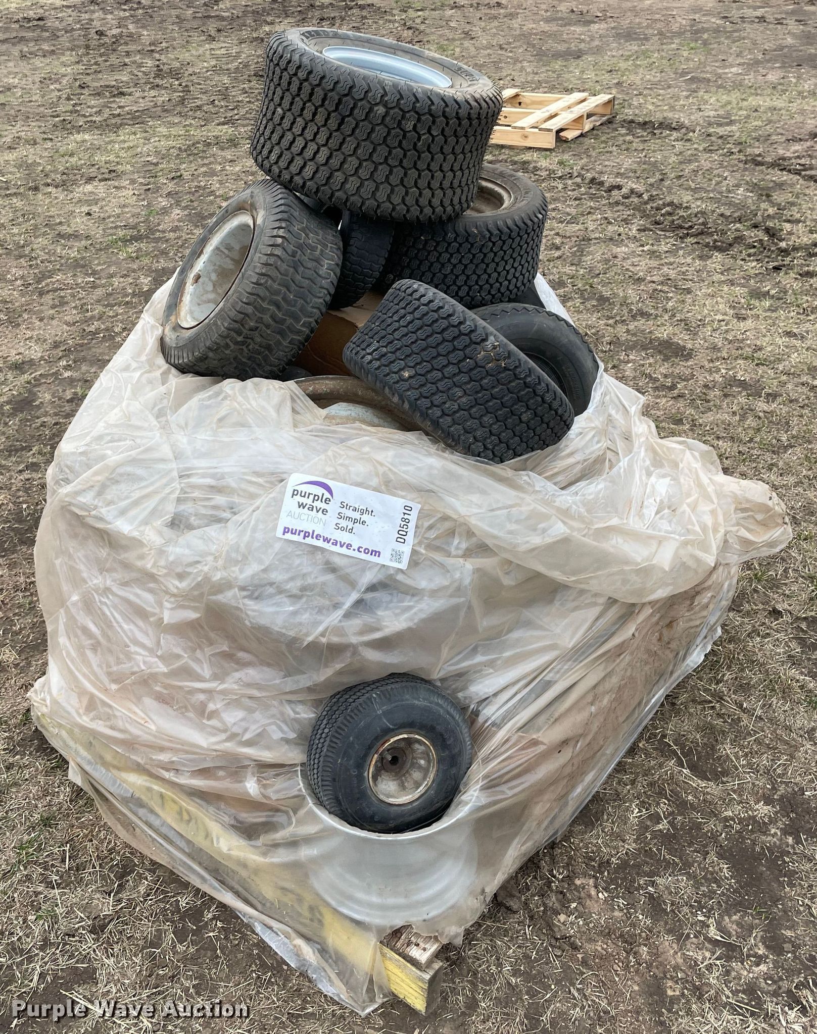 Purple Wave is selling a used Industrial Tires or Tracks in Oklahoma. This item is a Lawn mower tires with the following: 18x9.50-8, 16x6.50-8, 15x6.00-6, 18x8.50-8