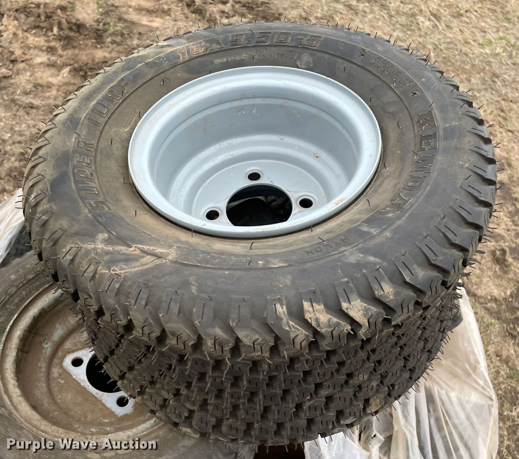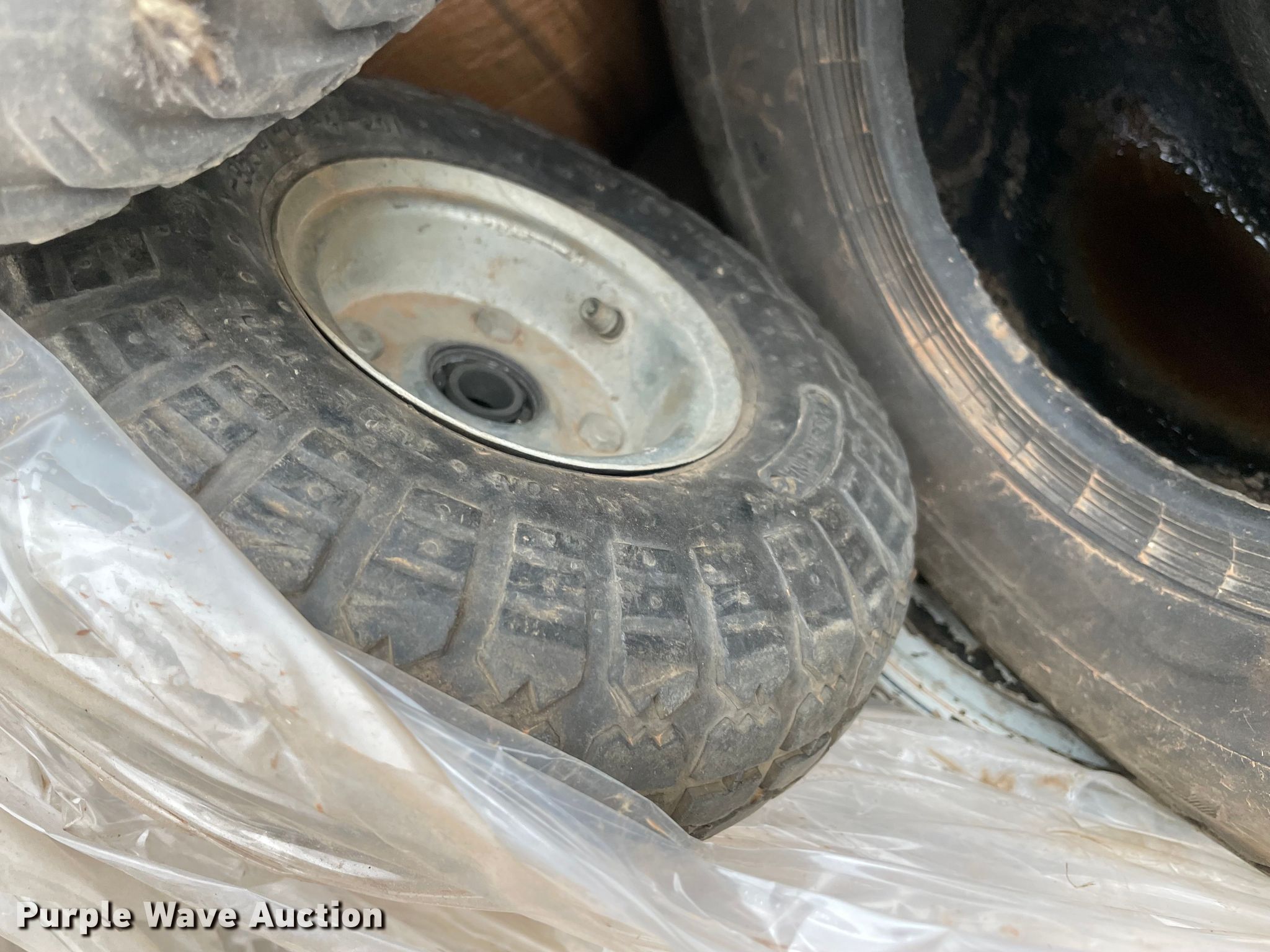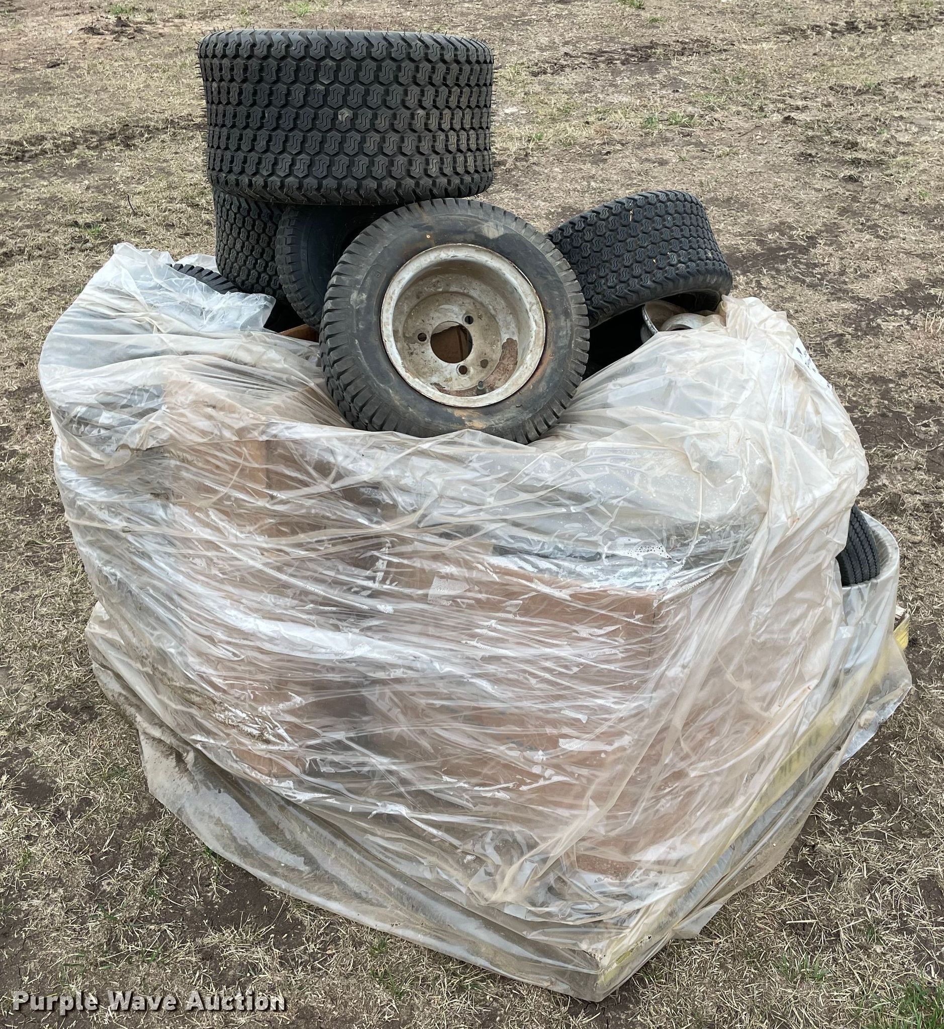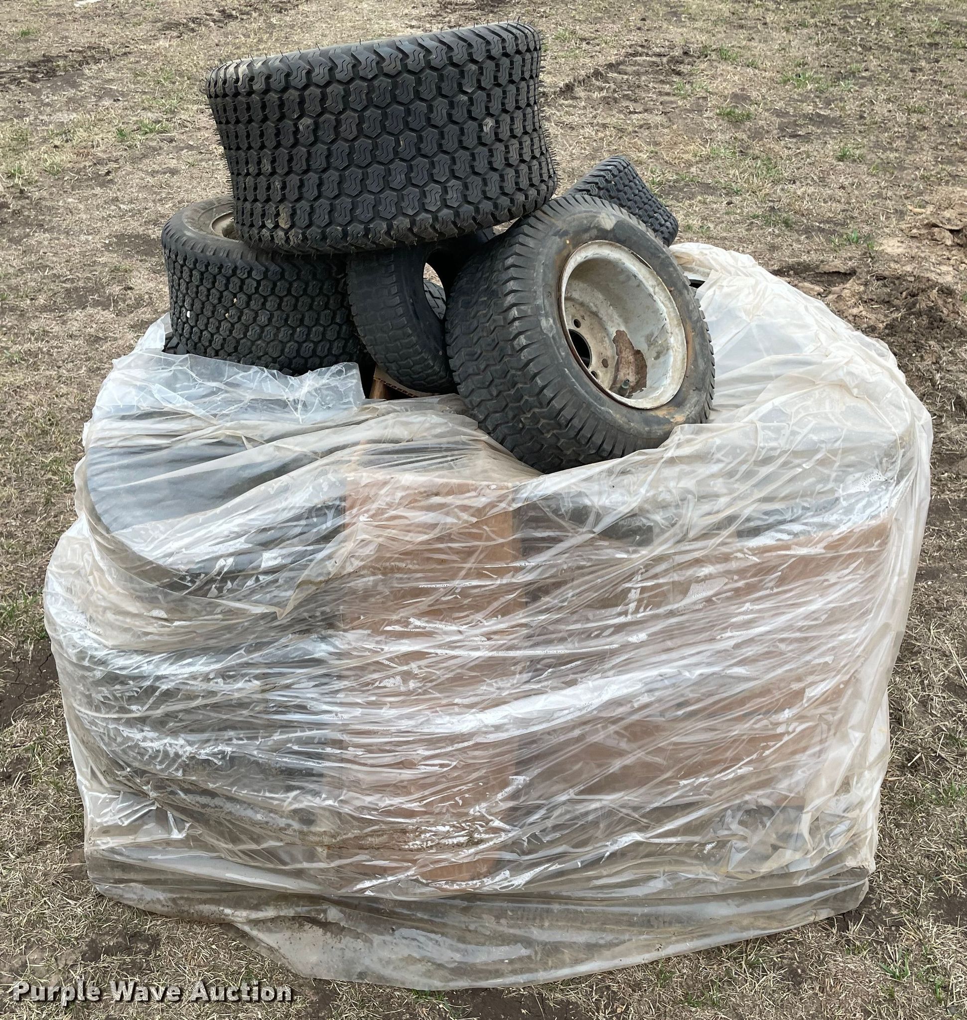 Purple Wave is selling a used Industrial Tires or Tracks in Oklahoma. This item is a Lawn mower tires with the following: 18x9.50-8, 16x6.50-8, 15x6.00-6, 18x8.50-8