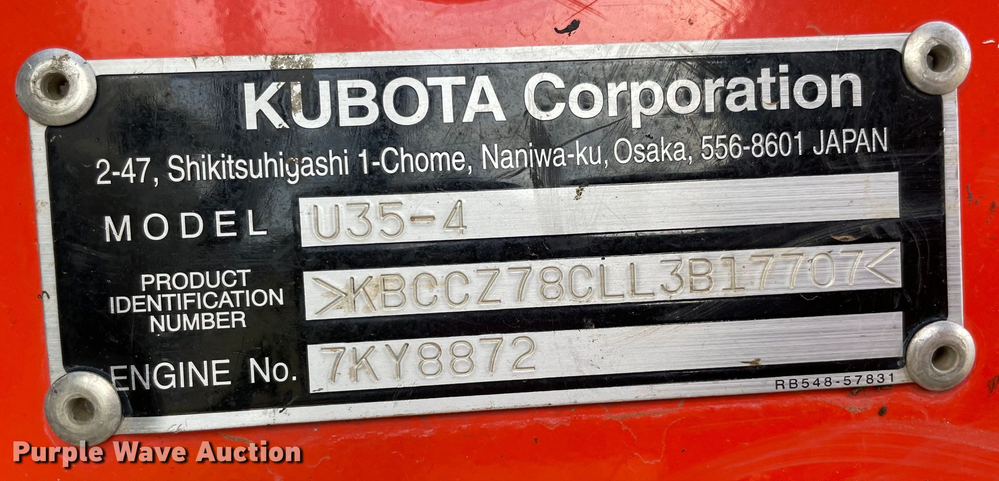 Purple Wave is selling a used Mini Excavator in Oklahoma. This item is a Kubota U35-4 mini excavator with the following: Hours: 804 on meter, Serial: KBCCZ78CLL3B17707