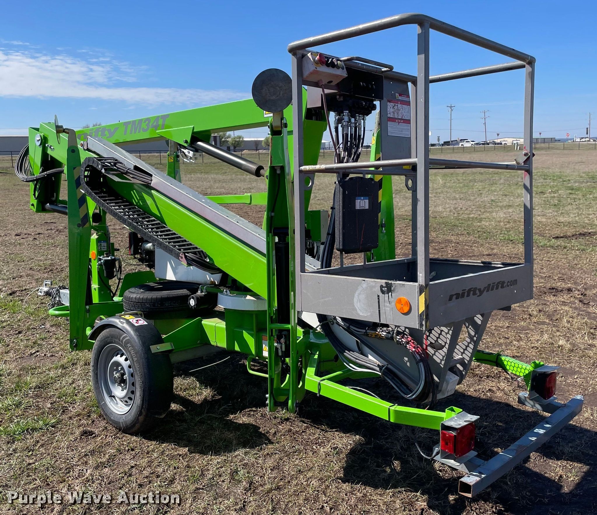 Purple Wave is selling a used Boom Lift in Oklahoma. This item is a 2021 Nifty TM34T boom lift with the following: Hours: 91, VIN: SLN34TG02MM046202, Serial: 04 46202