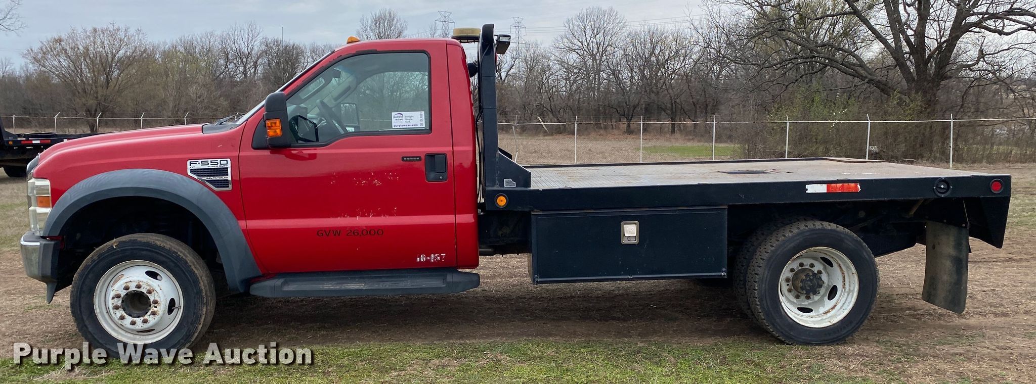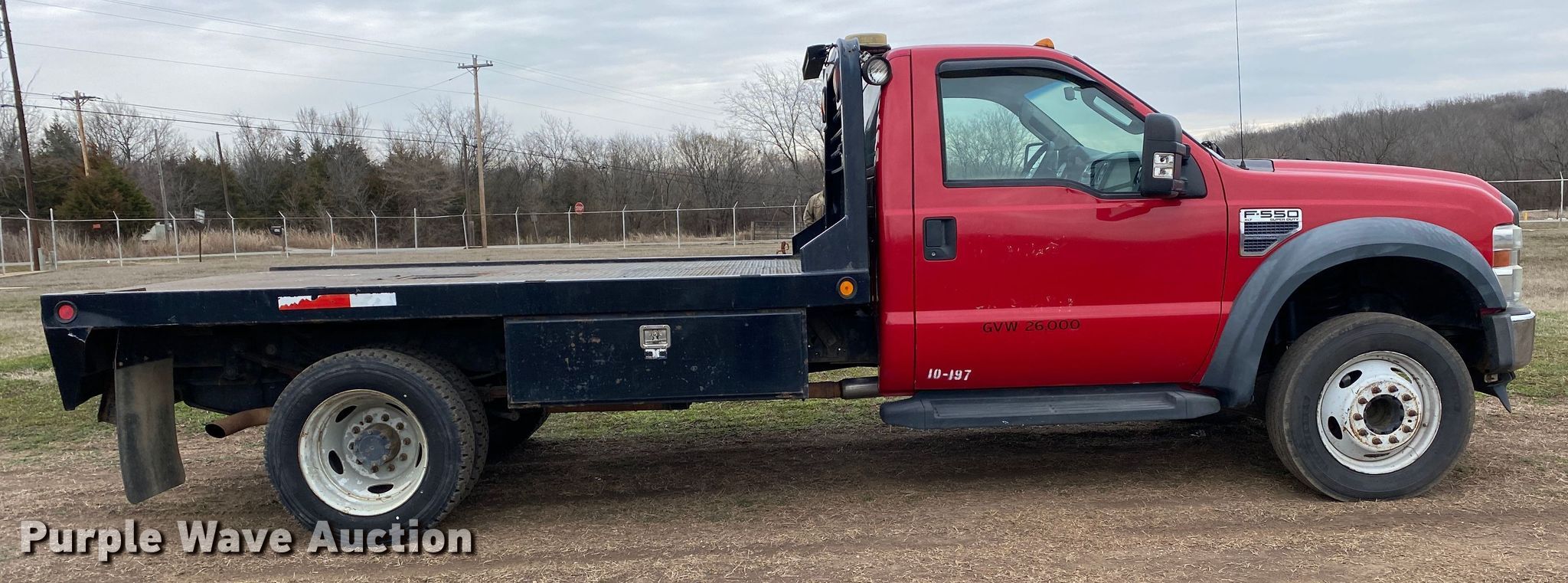 Purple Wave is selling a used Flat Bed Truck in Oklahoma. This item is a 2008 Ford F550 Super Duty flatbed truck with the following: Miles: 204,806 on odometer, VIN: 1FDAF56Y98EC99222, Unit #: 10-197