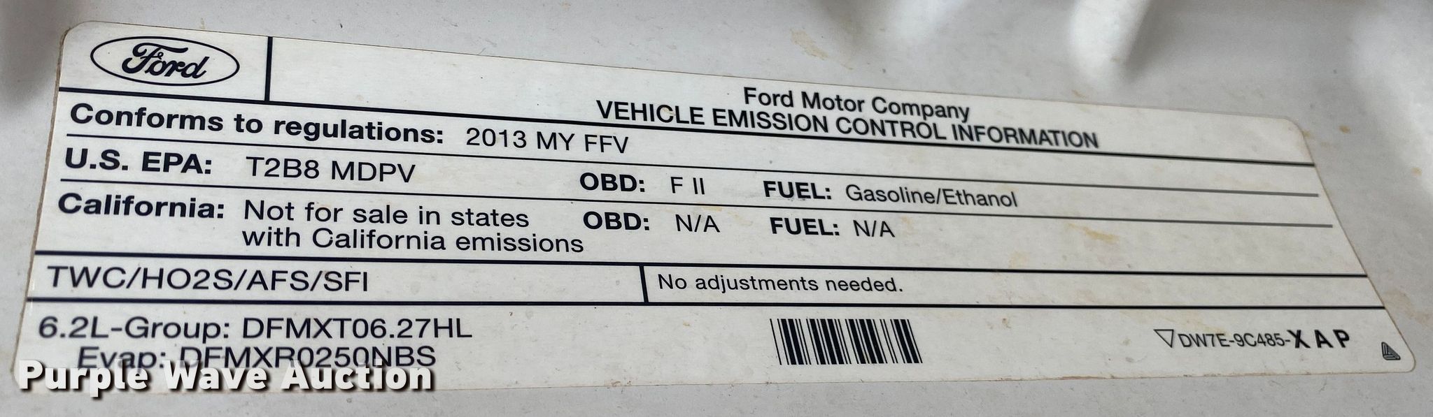 - VIN: 1FT7X2A60DEA04891