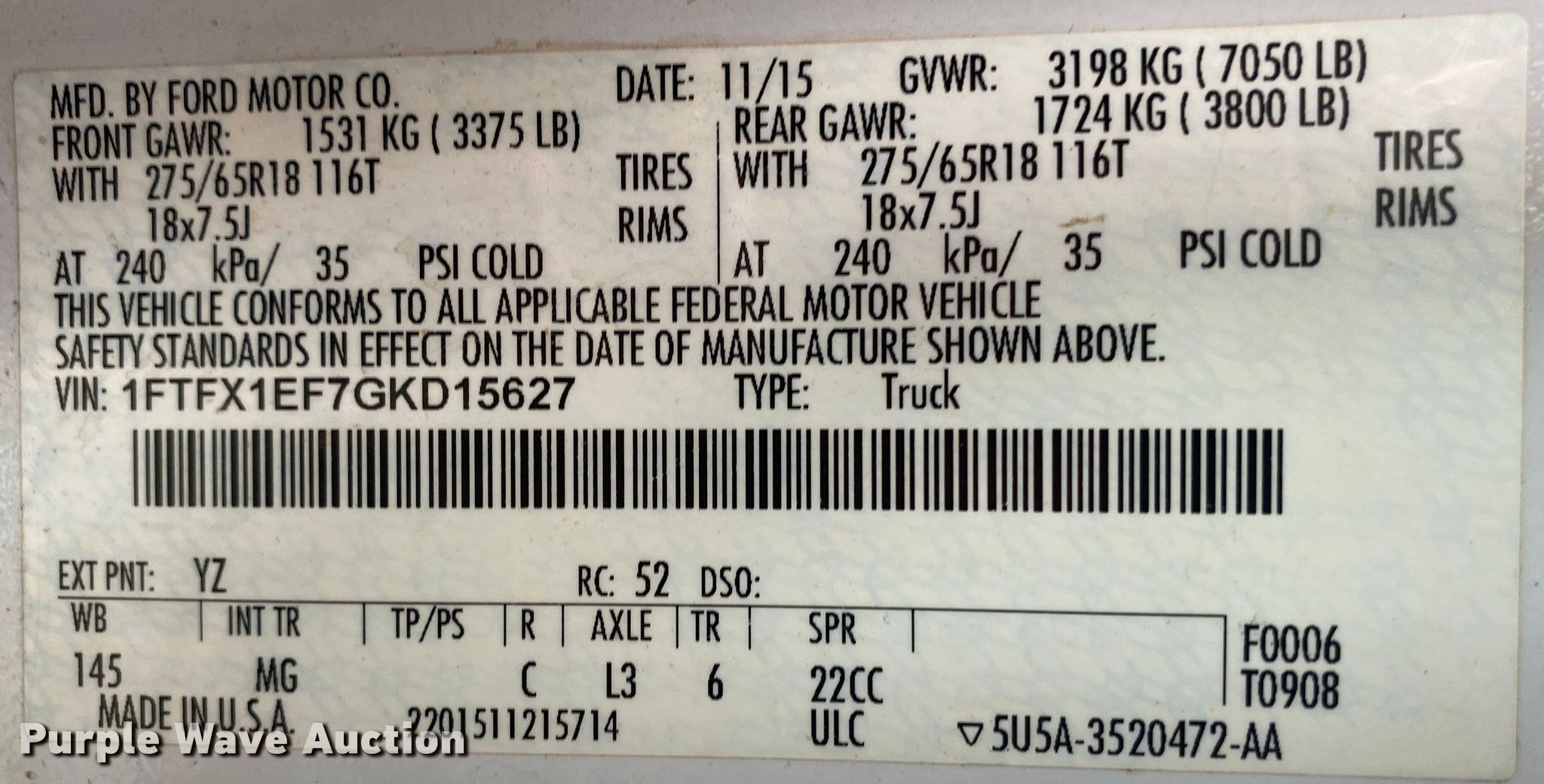 Purple Wave is selling a used 1/2 Ton Pickup or Van in Oklahoma. This item is a 2016 Ford F150 SuperCab pickup truck with the following: Miles: 205,100 on odometer, VIN: 1FTFX1EF7GKD15627, Unit #: 10-379