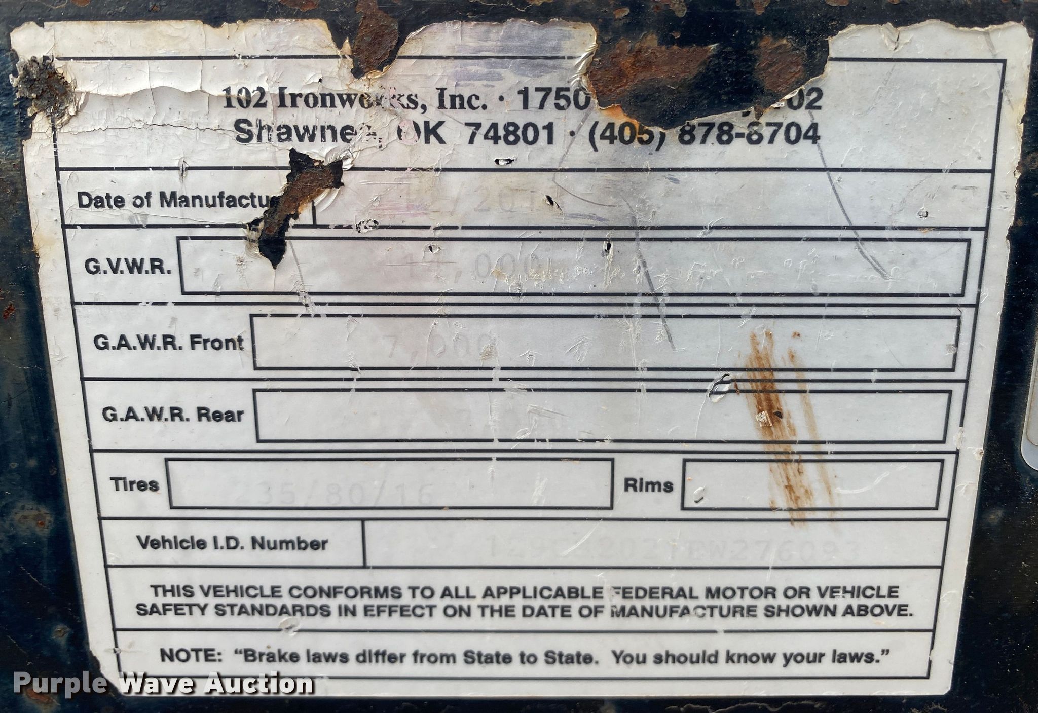 Purple Wave is selling a used Car or Utility Trailer in Oklahoma. This item is a 2014 102 Ironworks utility trailer with the following: VIN: 1Z9CS2021EW276093