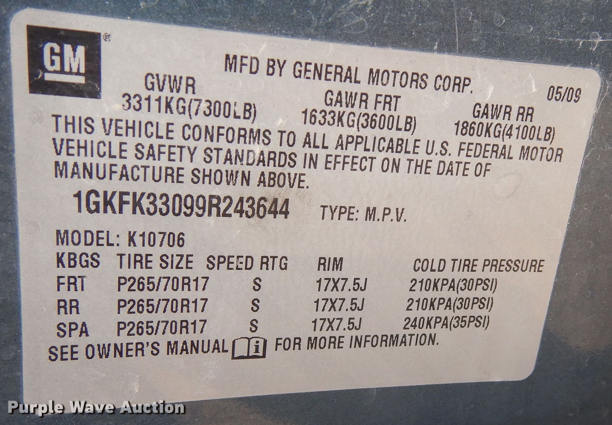 - VIN: 1GKFK33099R243644