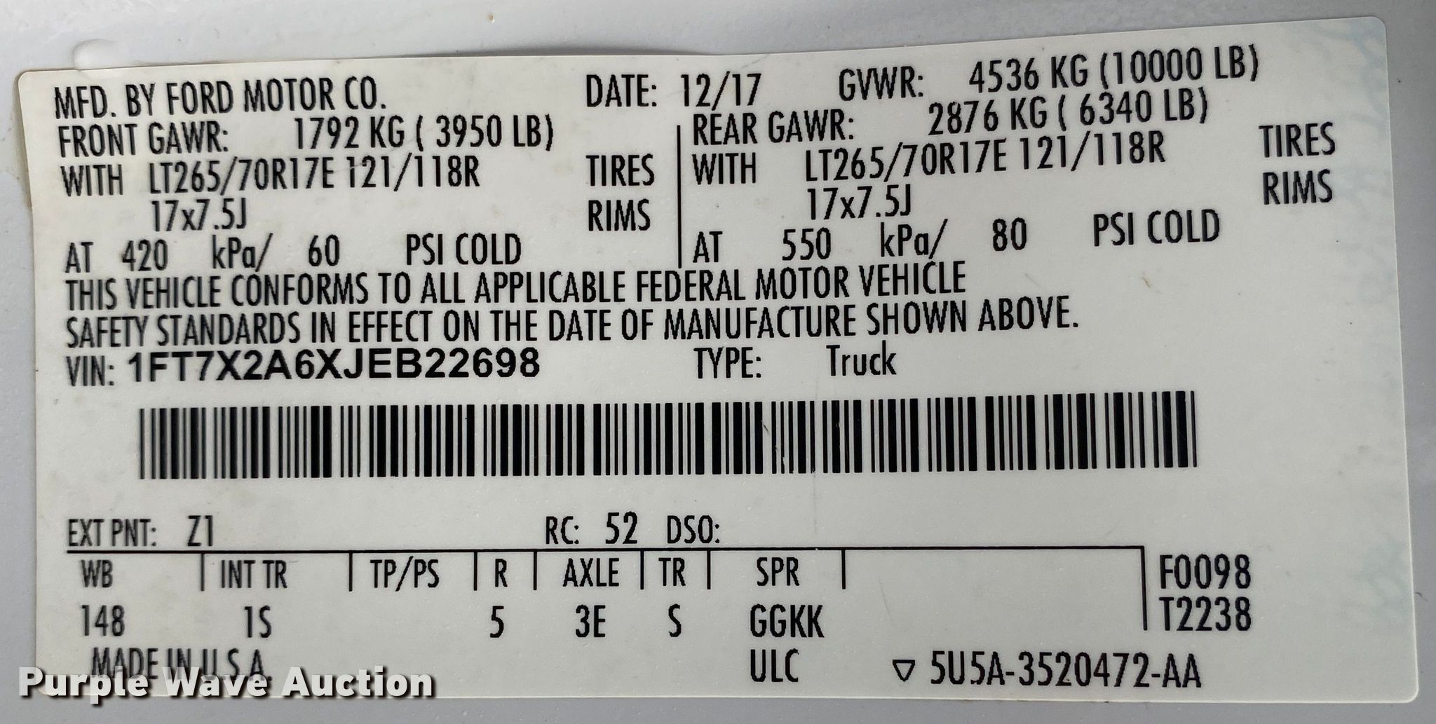 - VIN: 1FT7X2A6XJEB22698