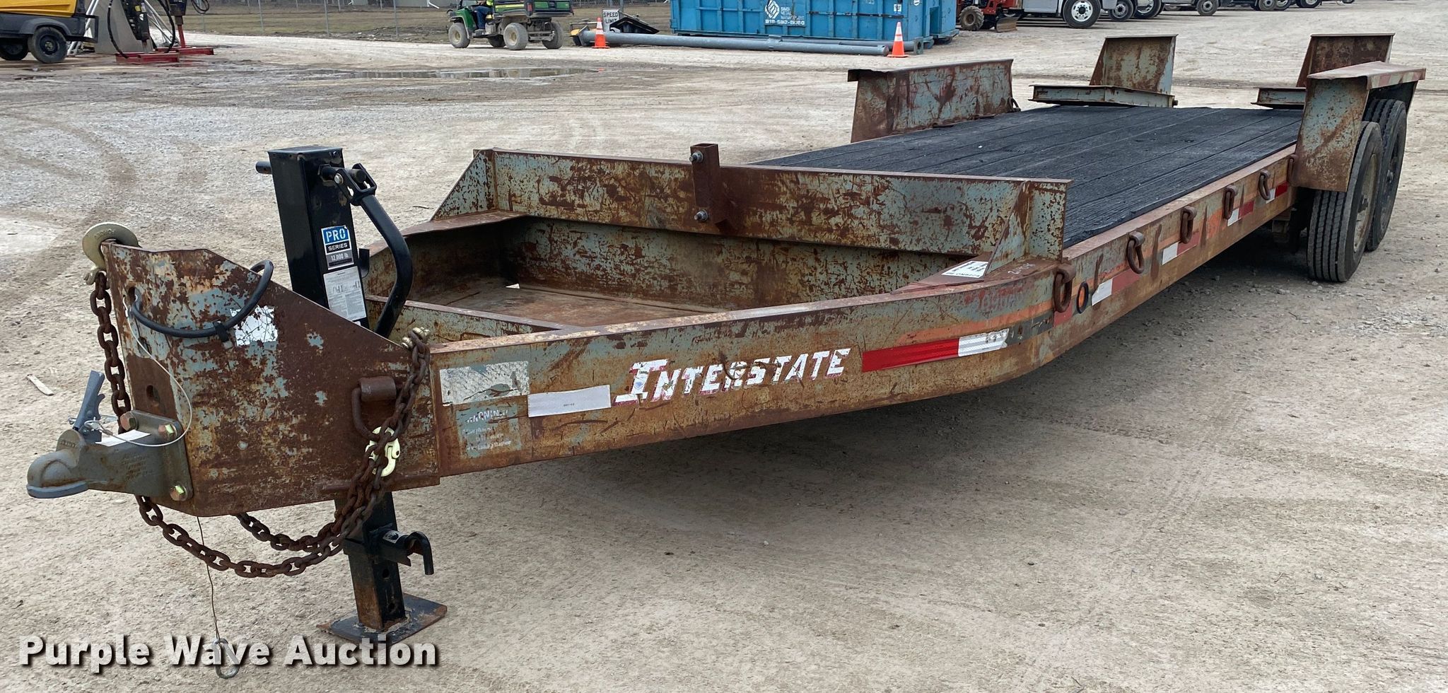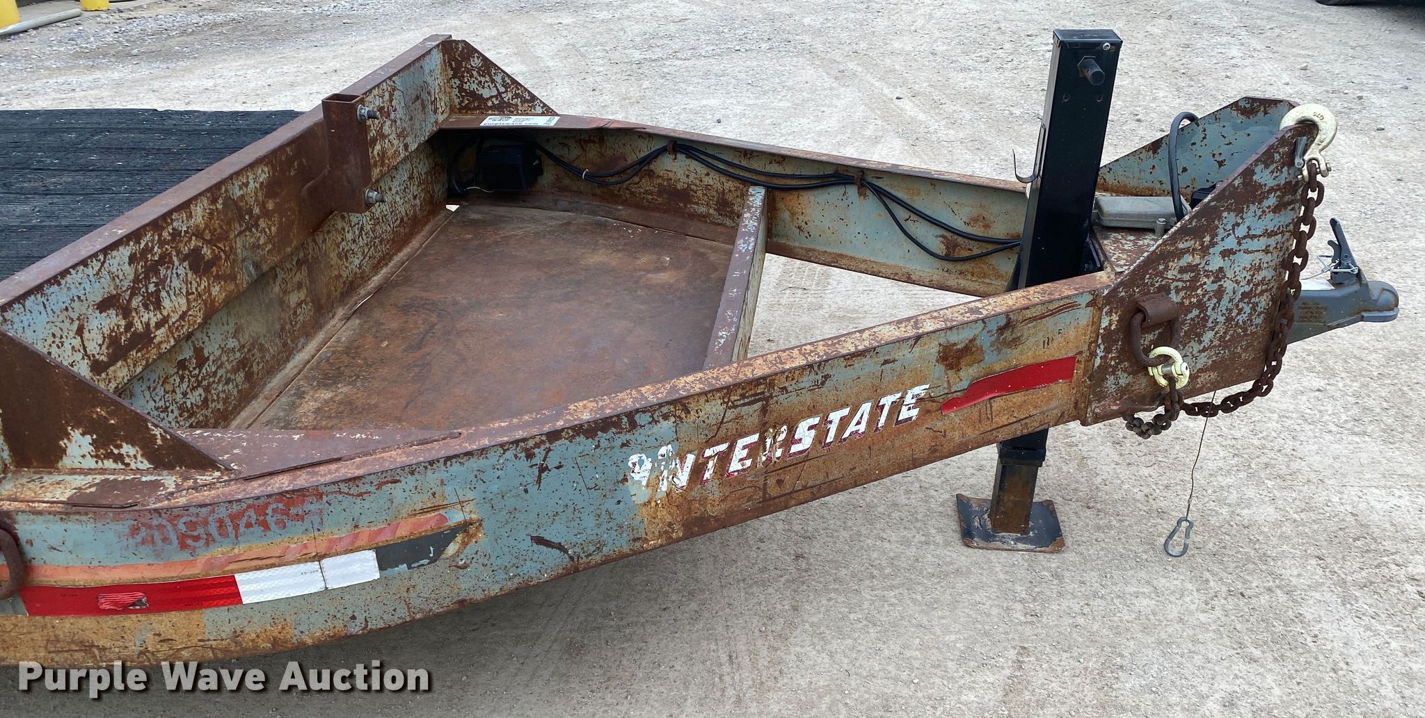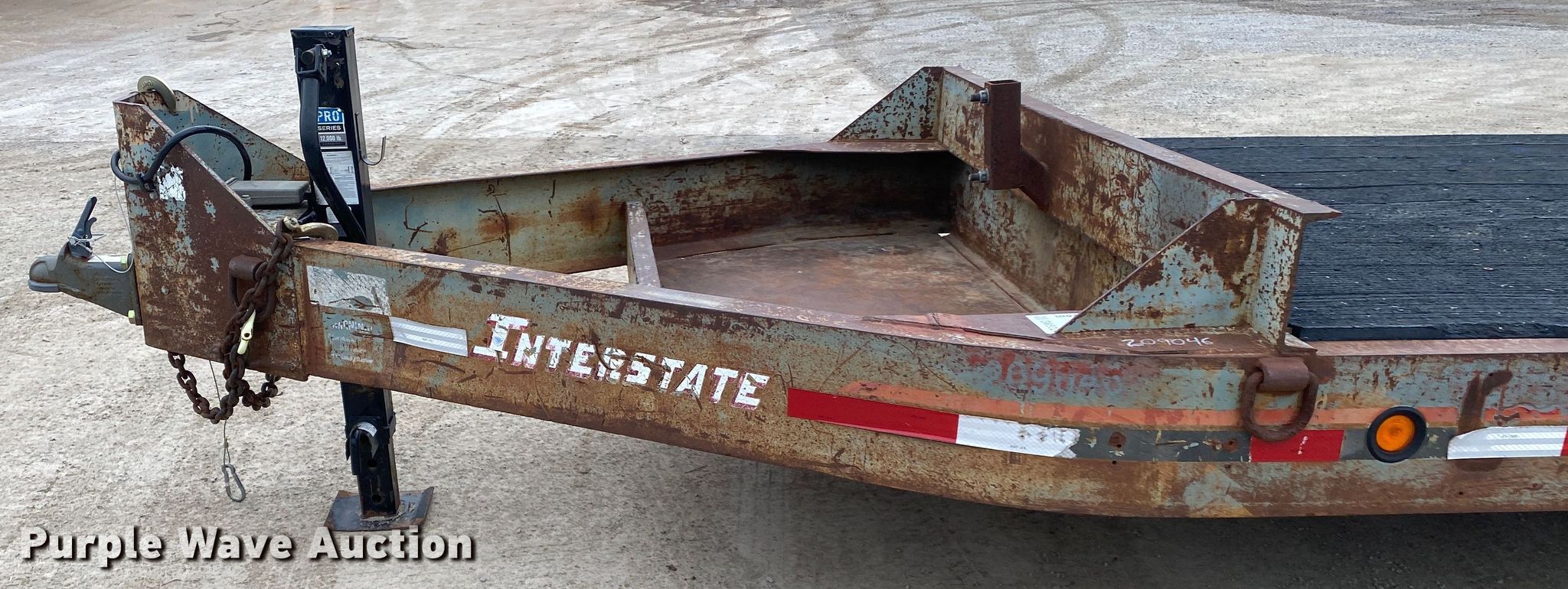 1998 Interstate utility trailer. VIN: 1JKBSS161WA000533, Unit #: 209046. Dimensions Overall: 30' L x 102" W, Deck: 18' L x 81" W, Tail length: 5', Ramps: Manual Length: 5'. Features Deck type: Wood. Chassis Ball hitch: 2 5/16", Landing gear: Single, Suspension: Spring, Brakes: Electric, Axles: Tandem. Tires Size: 235/75R17.5. Oklahoma title. TLS Group, Inc.. 1326 W 37th Pl. Tulsa, OK 74107
