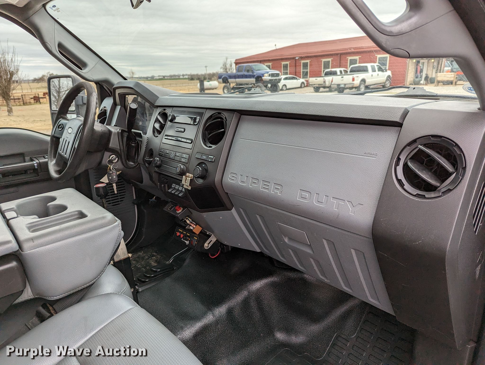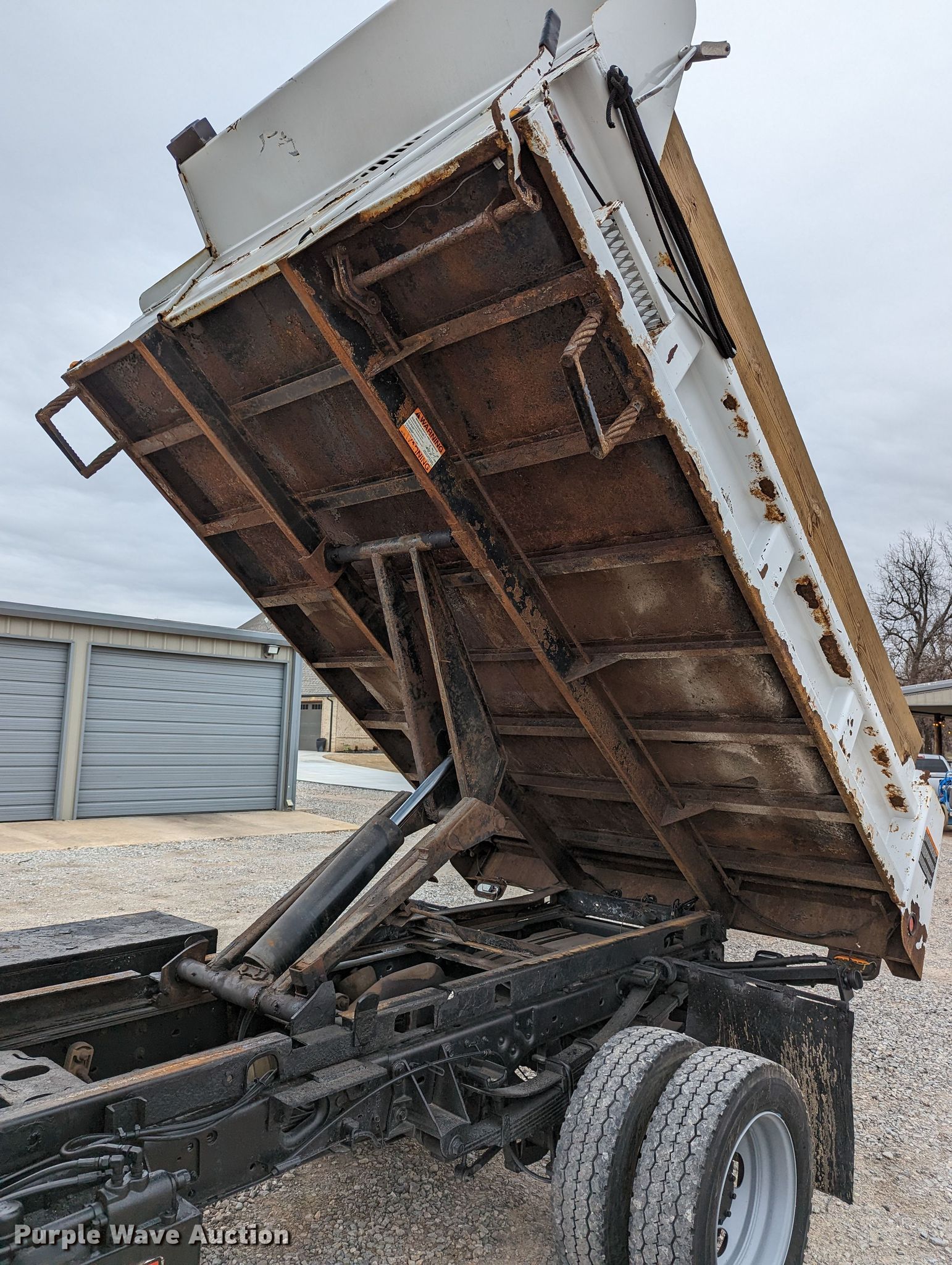 2012 Ford F550 Super Duty dump truck. Miles: 59,358 on odometer, VIN: 1FDUF5HY6CEB87271. Engine Displacement: 6.8L, Cylinders: 10, Fuel type: Gas. Transmission Automatic, Four wheel drive. Chassis Axles: Single, Suspension: Spring, Brakes: Hydraulic, PTO, GVWR: 19,500 lbs FAWR: 6,000 lbs, RAWR: 14,706 lbs, Wheelbase: 165". Interior AC, Heat, Heated mirrors, Power windows, Brake controller. Features Dump bed Rugby, 11' L x 96" W, Side height: 16", Side board height: 12", Bed type: Steel, Ram: Single , End gate: Manual. Tires Size: 225/70R19.5. Oklahoma title. Title distribution may be delayed up to 30 days from verification of funds. L&R Auto Brokers, LLC. 14555 W Frisco Dr. Yukon, OK 73099