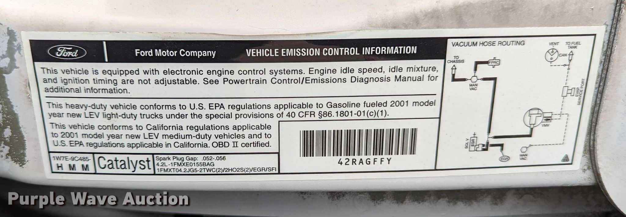 2001 Ford E250 van. Miles: 49,387 on odometer, VIN: 1FTNE24231HA37335. Engine Displacement: 4.2L V6 SOHC, Cylinders: 6, Fuel type: Gas. Transmission Automatic. Interior AC, Heat, Power windows. Tires Size: LT245/75R16. California title. Title distribution may be delayed up to 30 days from verification of funds. L&R Auto Brokers, LLC. 14555 W Frisco Dr. Yukon, OK 73099