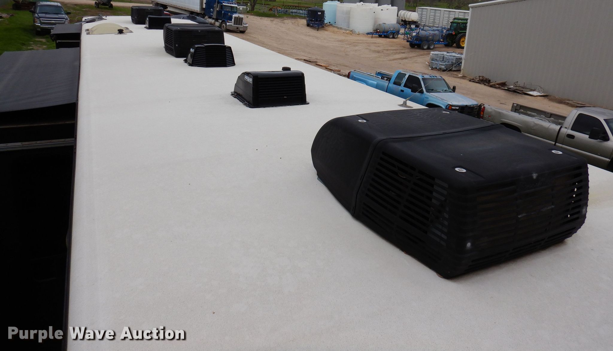 2016 Jayco Seismic toy hauler camper. Camper length: 45' 2", VIN: 1UJCJSCV2G19H0123. Chassis Axles: Triple, Suspension: Spring, Brakes: Electric, GVWR: 20,000 lbs, GAWR: 7,000 lbs. Interior Kitchen: Sink, Dishwasher, Refrigerator, Freezer, Microwave, Oven, Stove: Propane, Living room: Table, Couch, Bathroom, Washer, Dryer, Beds: 4 Bed type: King, Double, TVs: 3, Sound system, Heater, AC units: 3. Features Slide outs: 3, Awnings: 3 Awning type: Electric, Auto leveler, Rear door/ ramp, Generator Cummins Onan 5.5HGJAB-6755K, Hours: 218 on meter, Fuel type: Gas, kW: 5.5. Tires Size: ST235/80R16, Brand: Westlak. Texas title. Title has a lien that will be released following the close of the auction. Title distribution may be delayed up to 30 days from verification of funds. Shiner Ranch Supply. 712 Eschenburg Street. Shiner, TX 77984