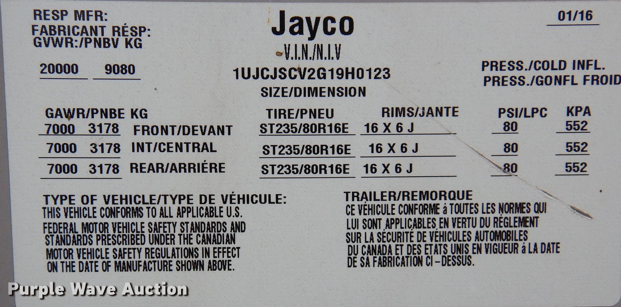 Purple Wave is selling a used RV or Camper in Texas. This item is a 2016 Jayco Seismic toy hauler camper with the following: Camper length: 45' 2", VIN: 1UJCJSCV2G19H0123